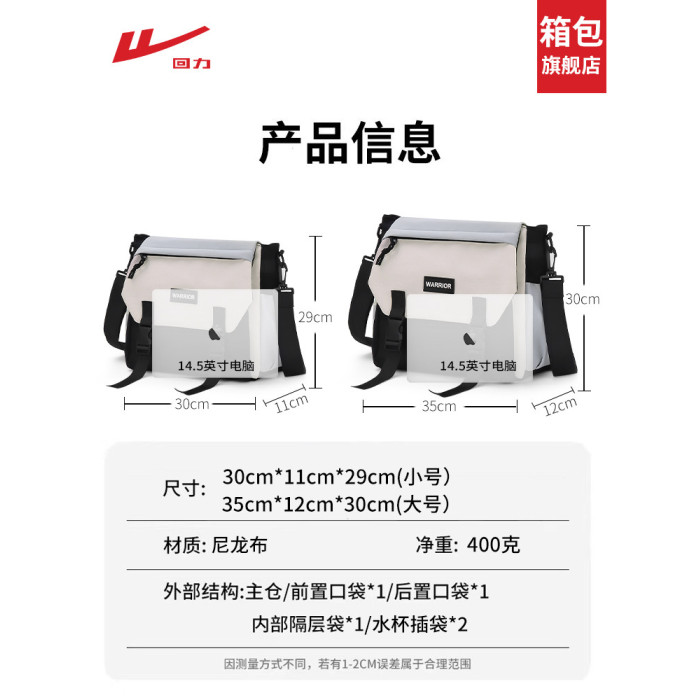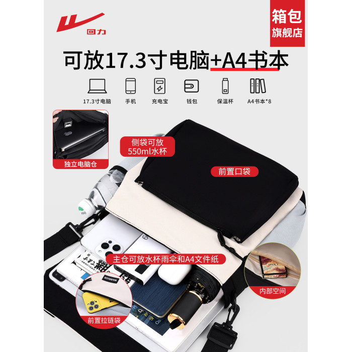 廻力男士斜後後背包男款大容量單肩包新款通勤後後背包學生工裝電腦郵差包