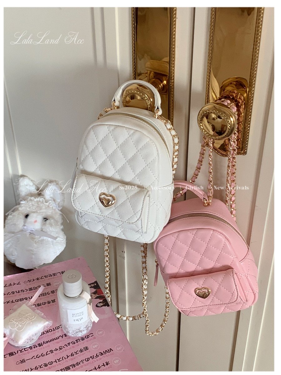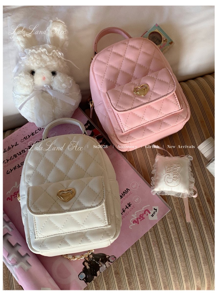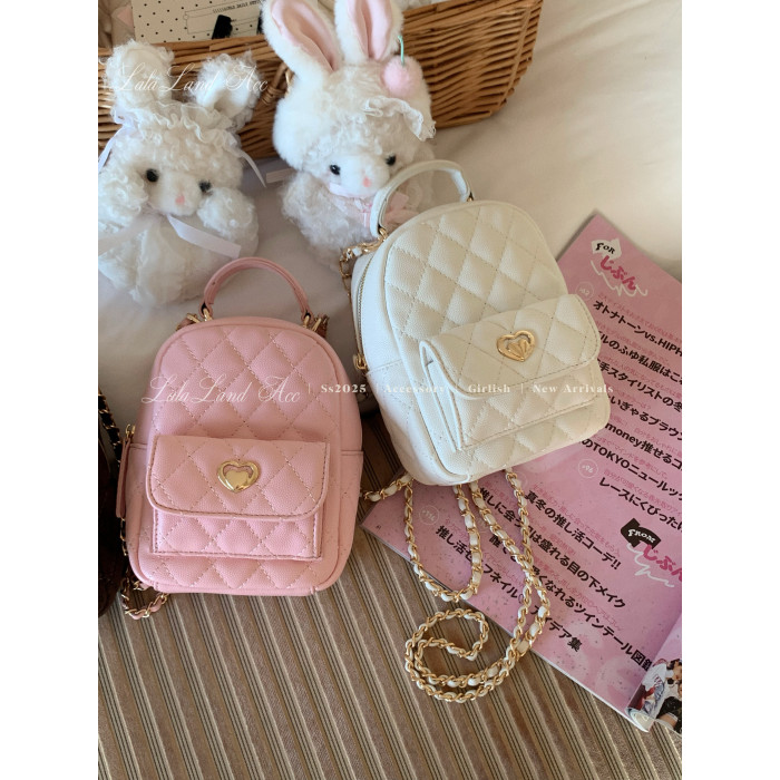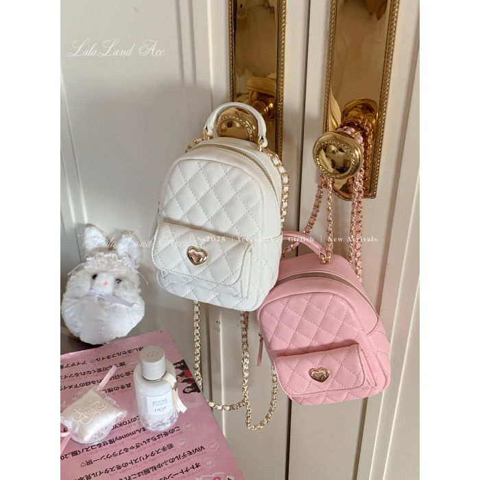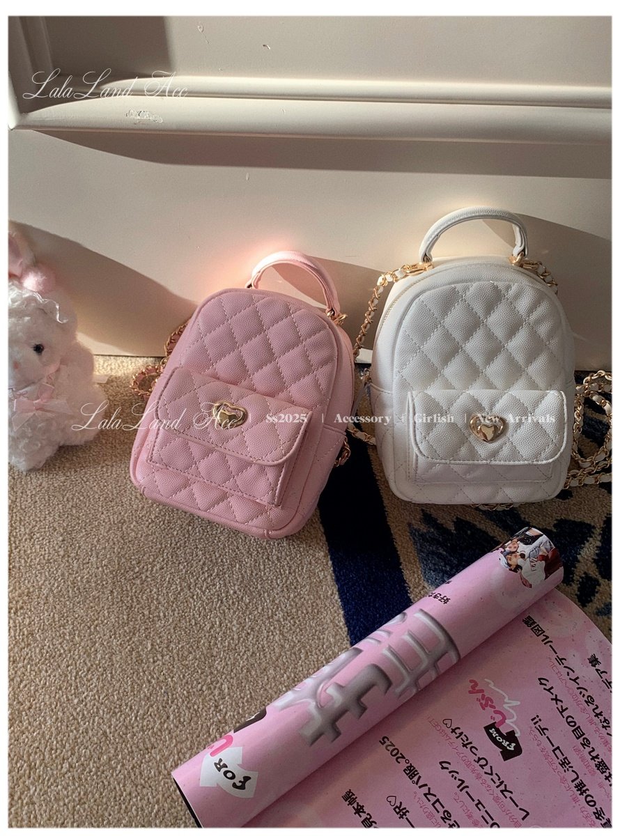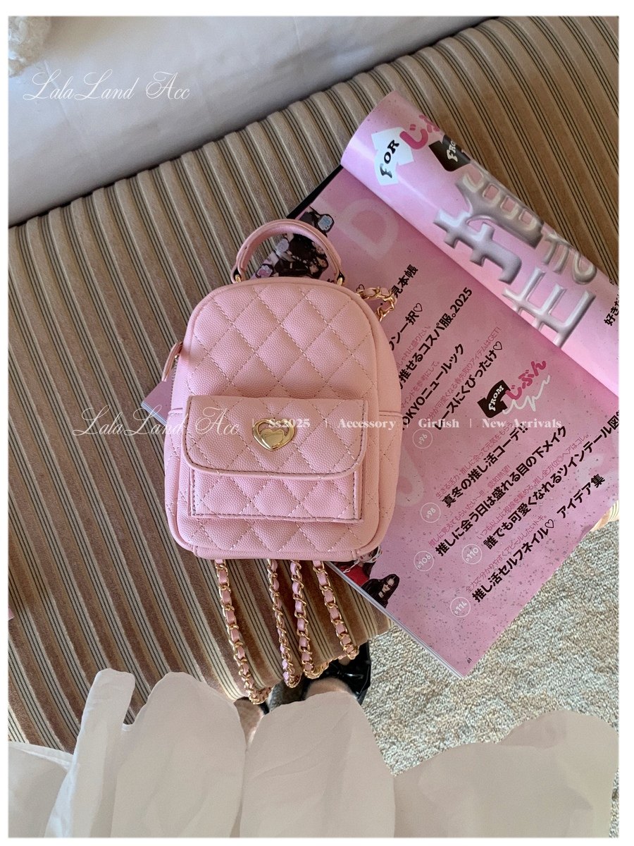 Lala land acc/嬌寵氣質 自製小香風菱格鏈條雙肩包小書包後後背包女