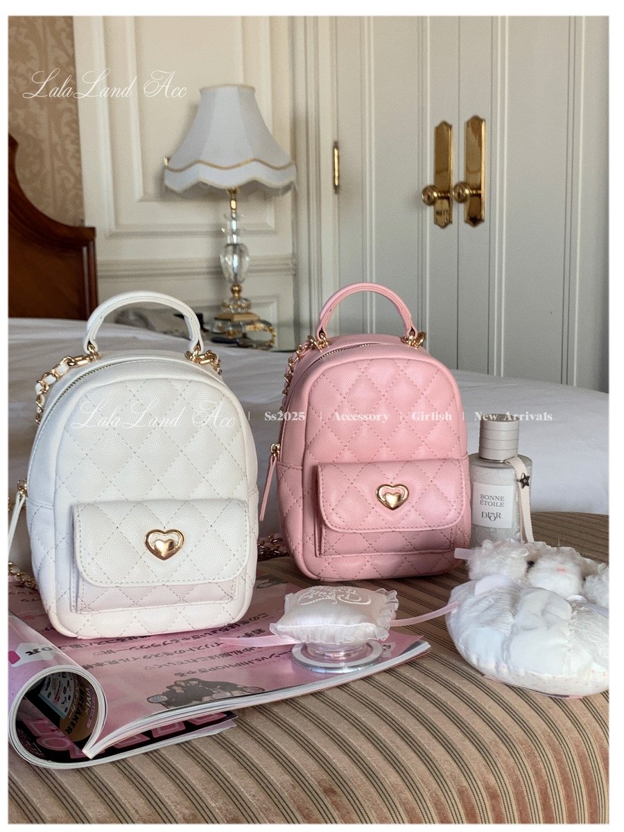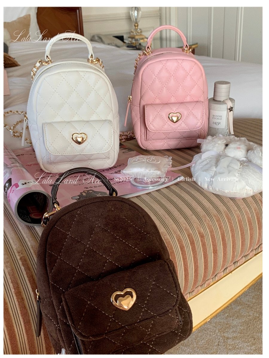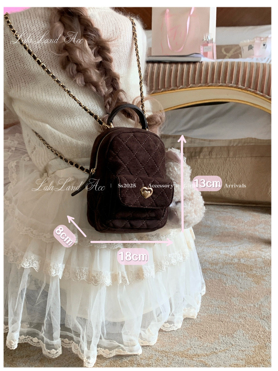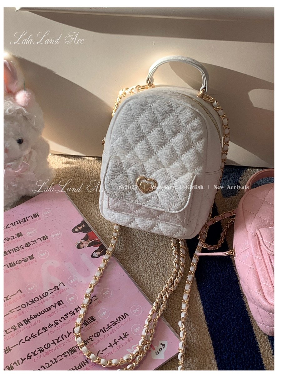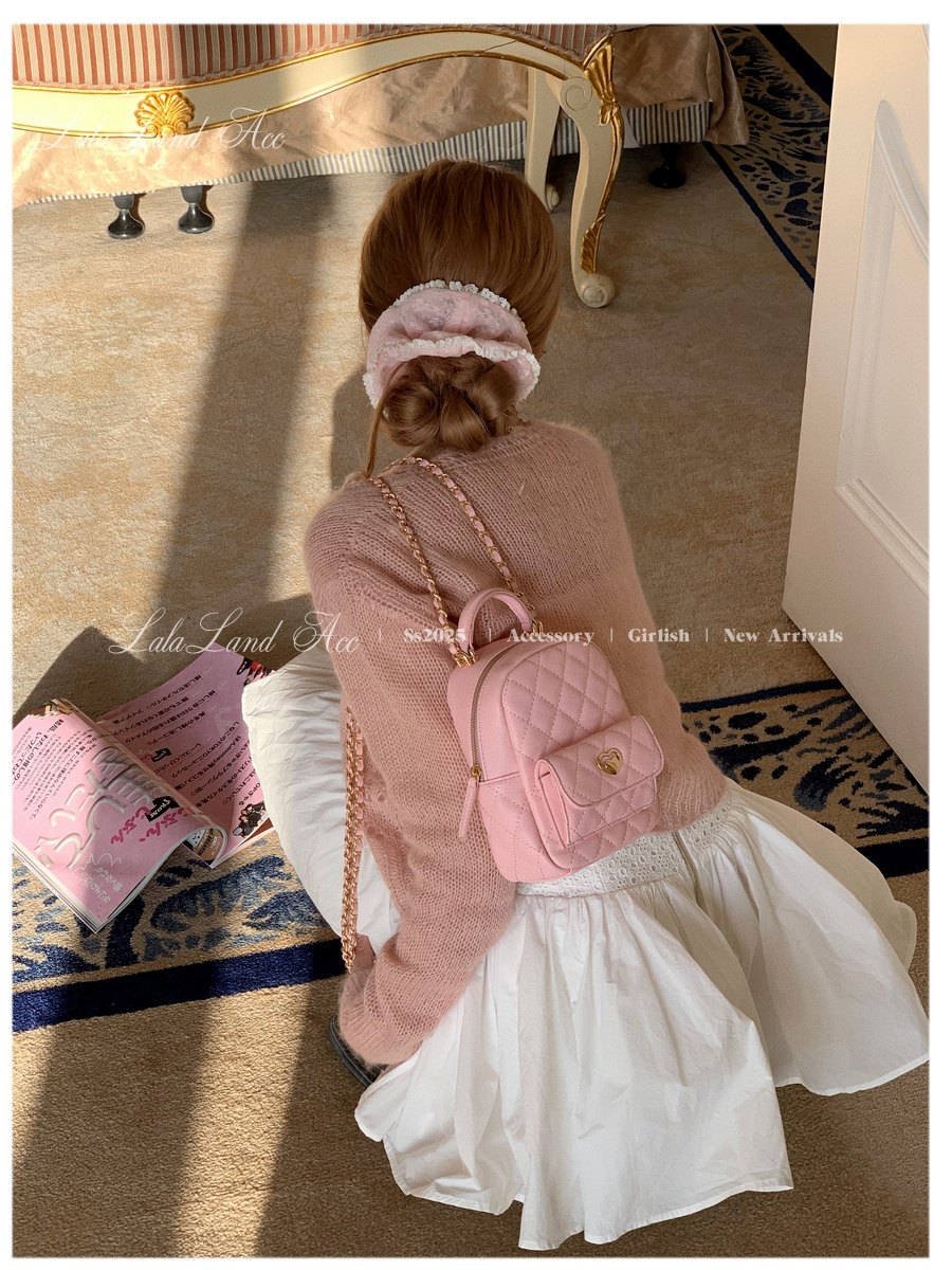 Lala land acc/嬌寵氣質 自製小香風菱格鏈條雙肩包小書包後後背包女