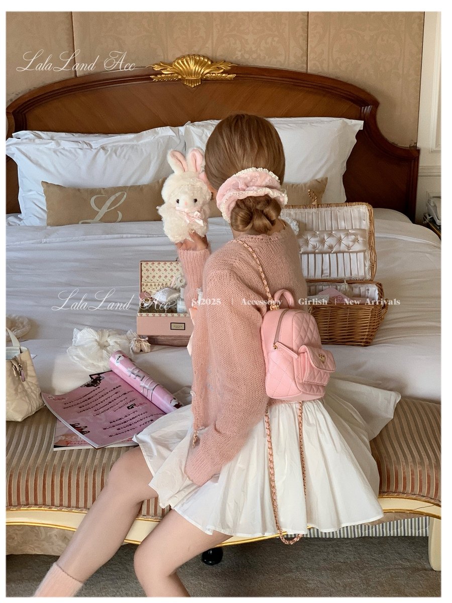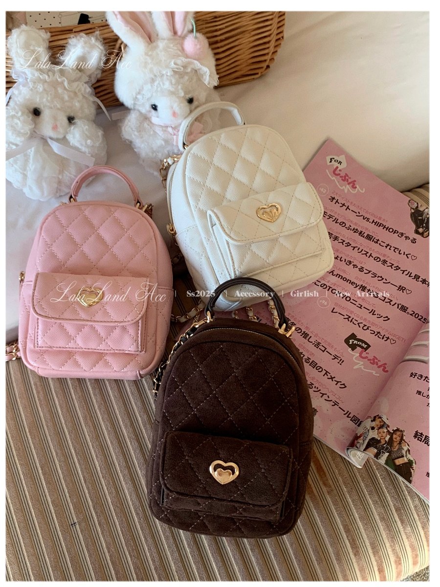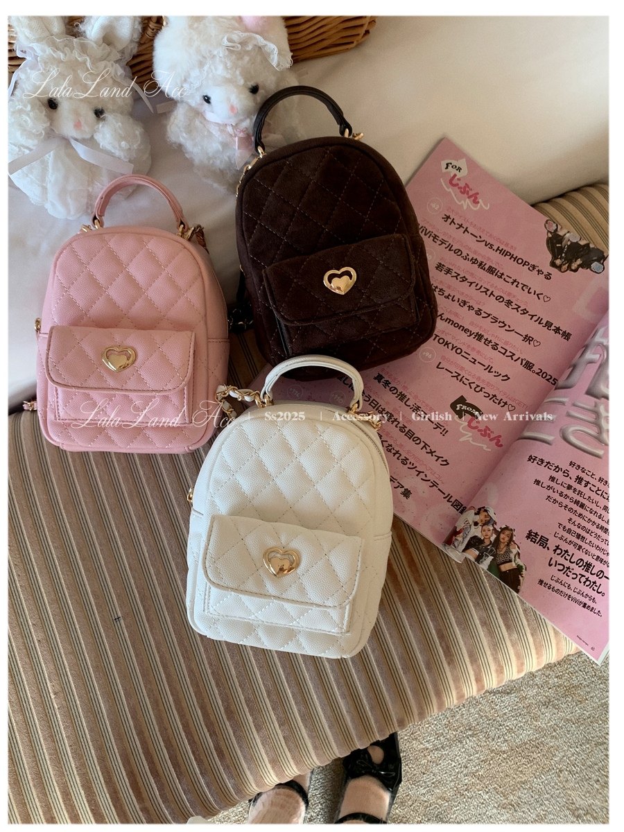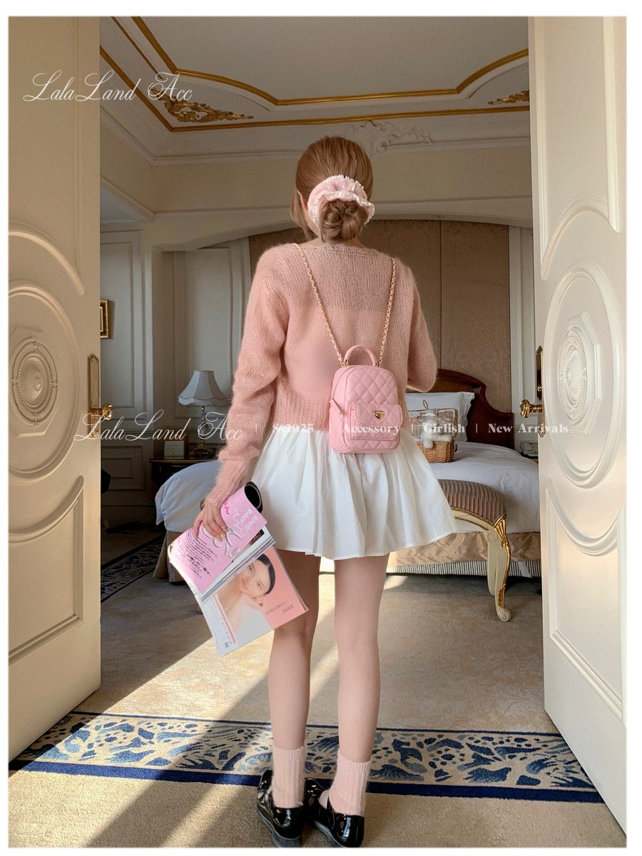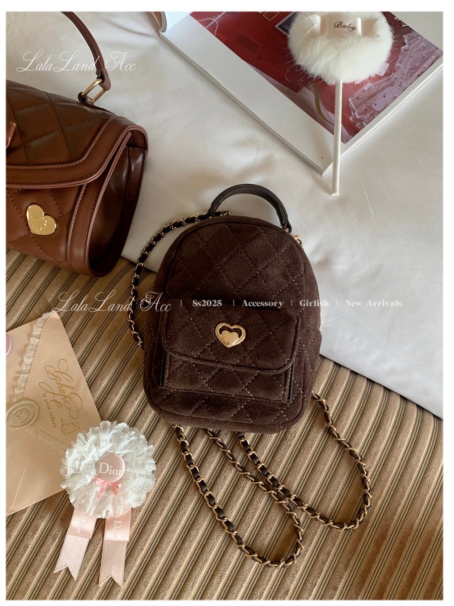 Lala land acc/嬌寵氣質 自製小香風菱格鏈條雙肩包小書包後後背包女