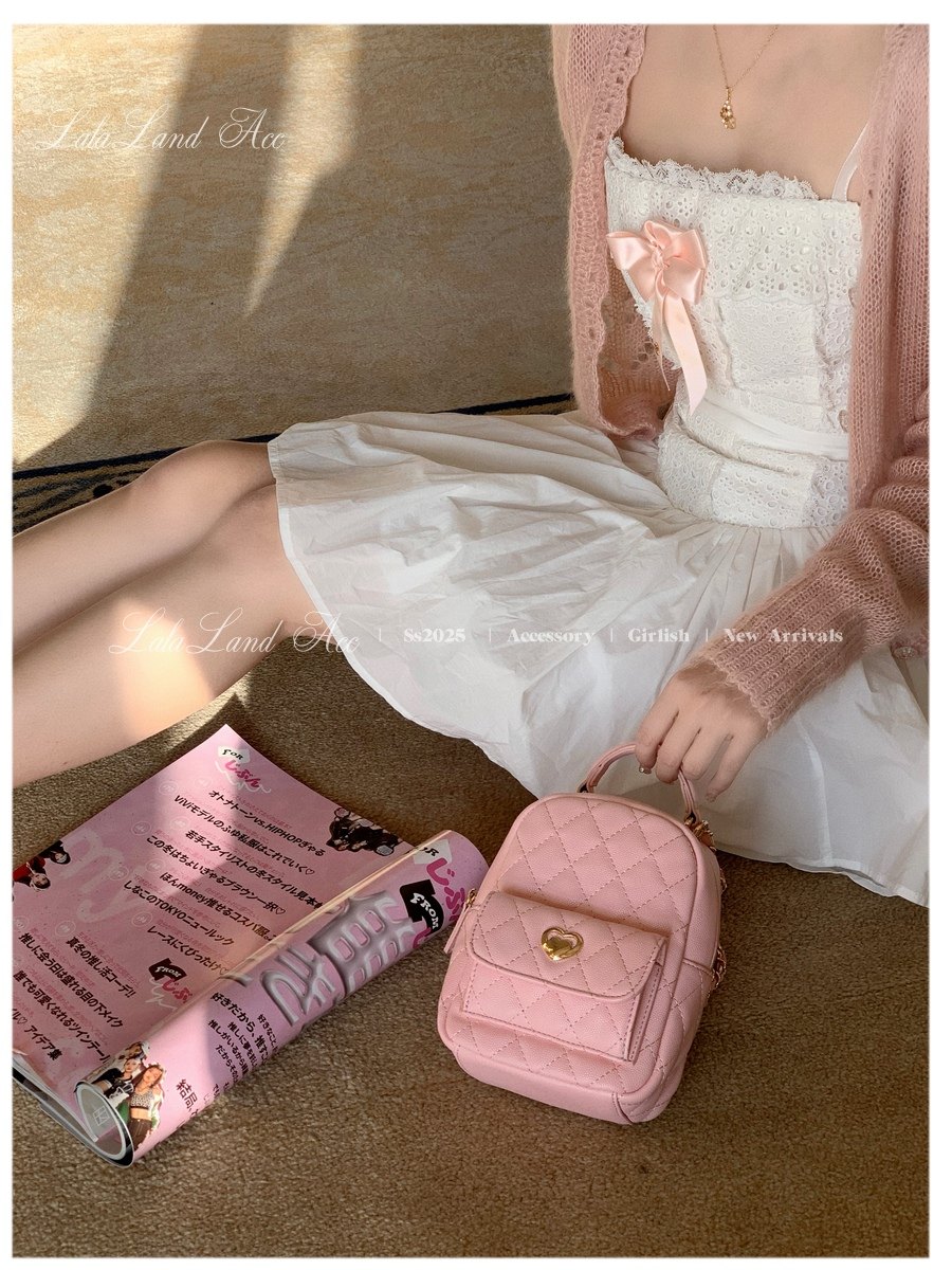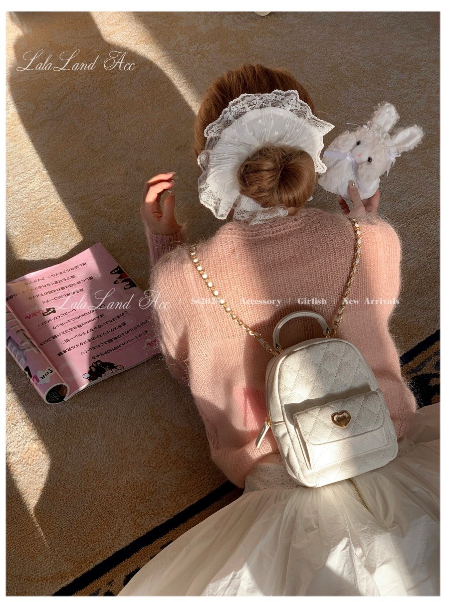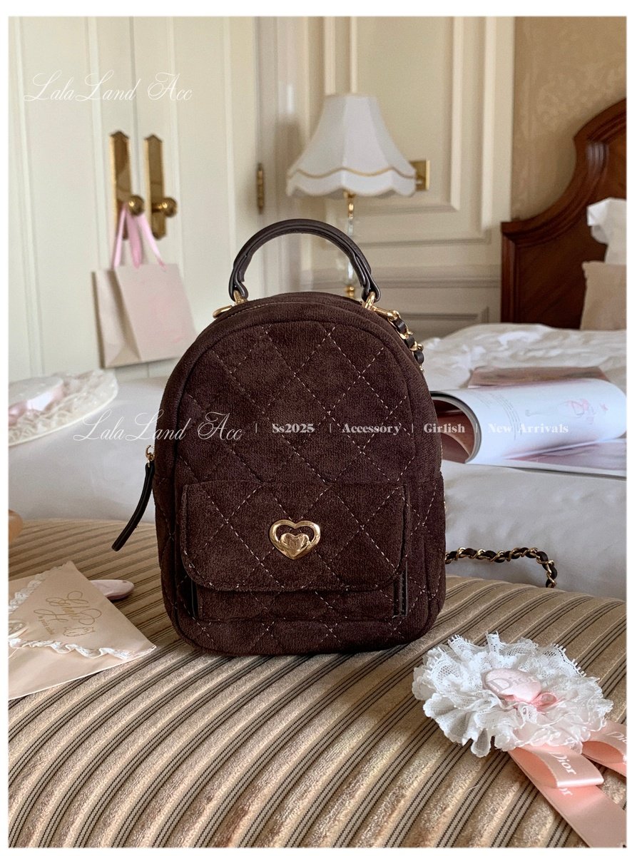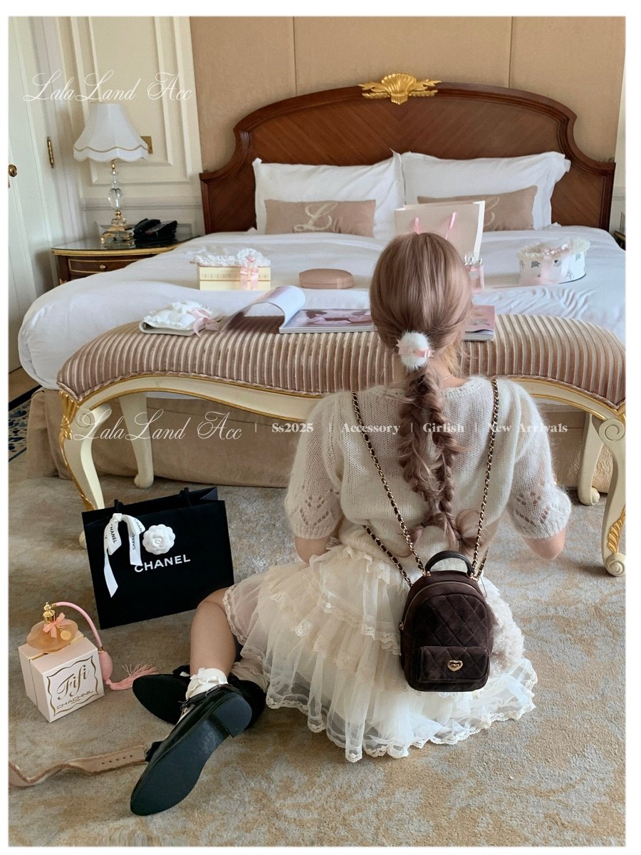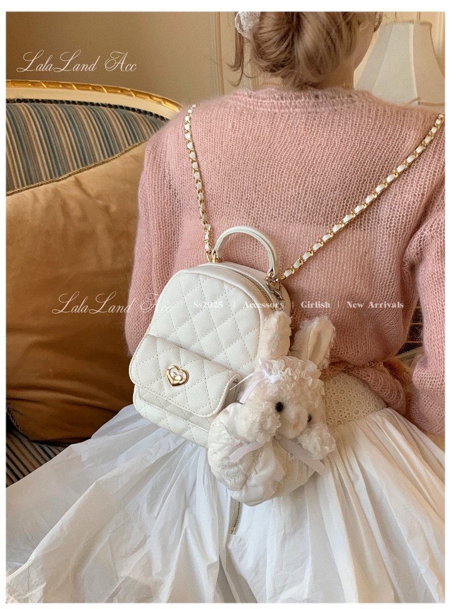 Lala land acc/嬌寵氣質 自製小香風菱格鏈條雙肩包小書包後後背包女