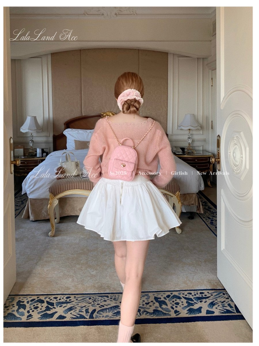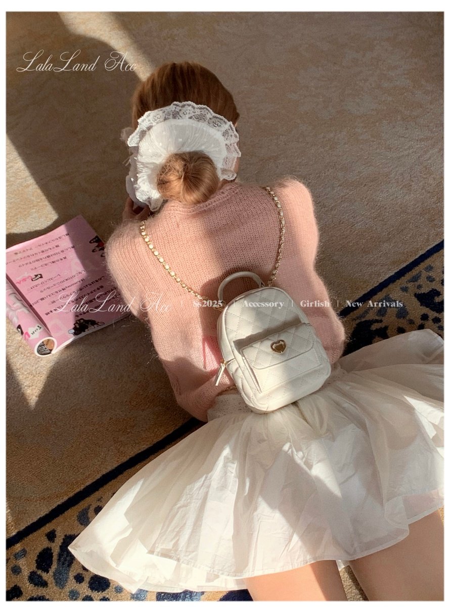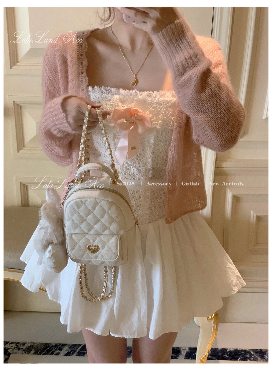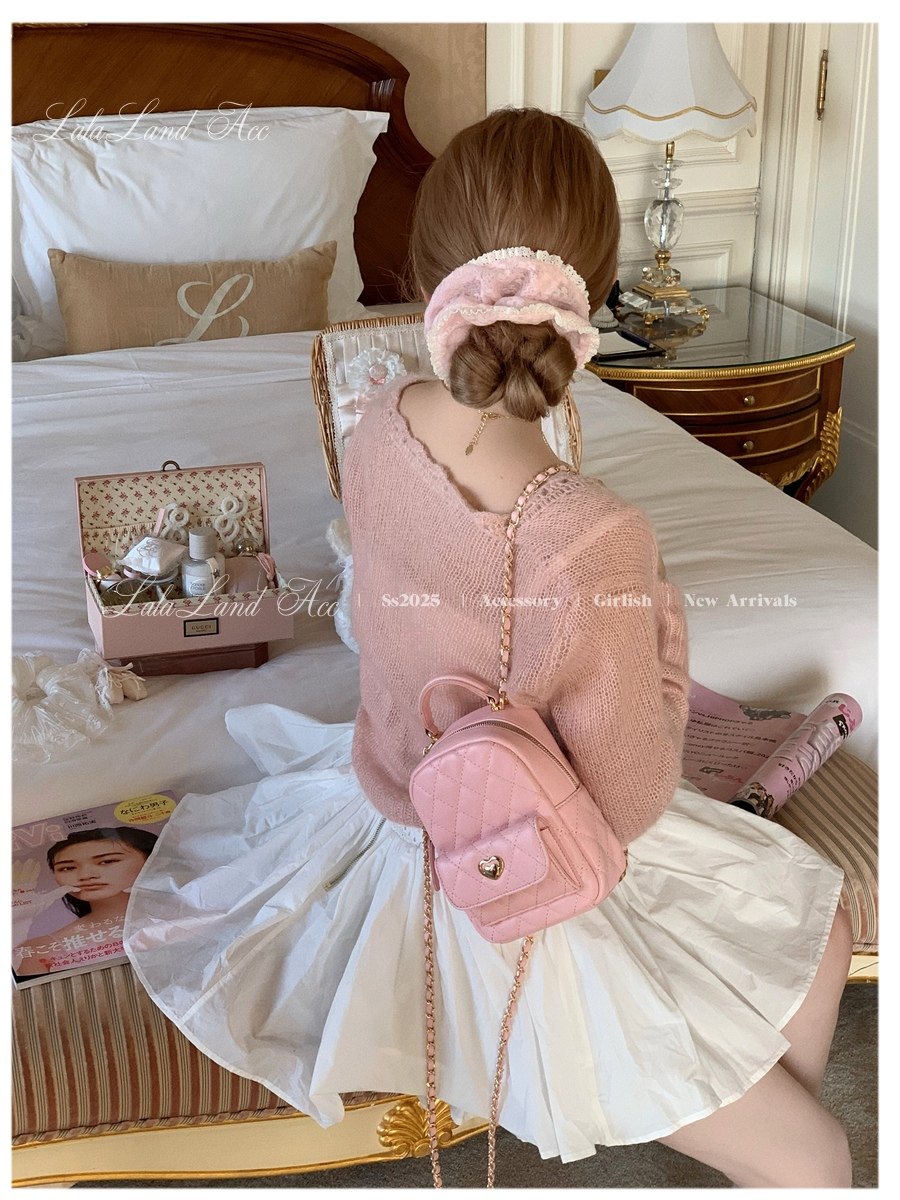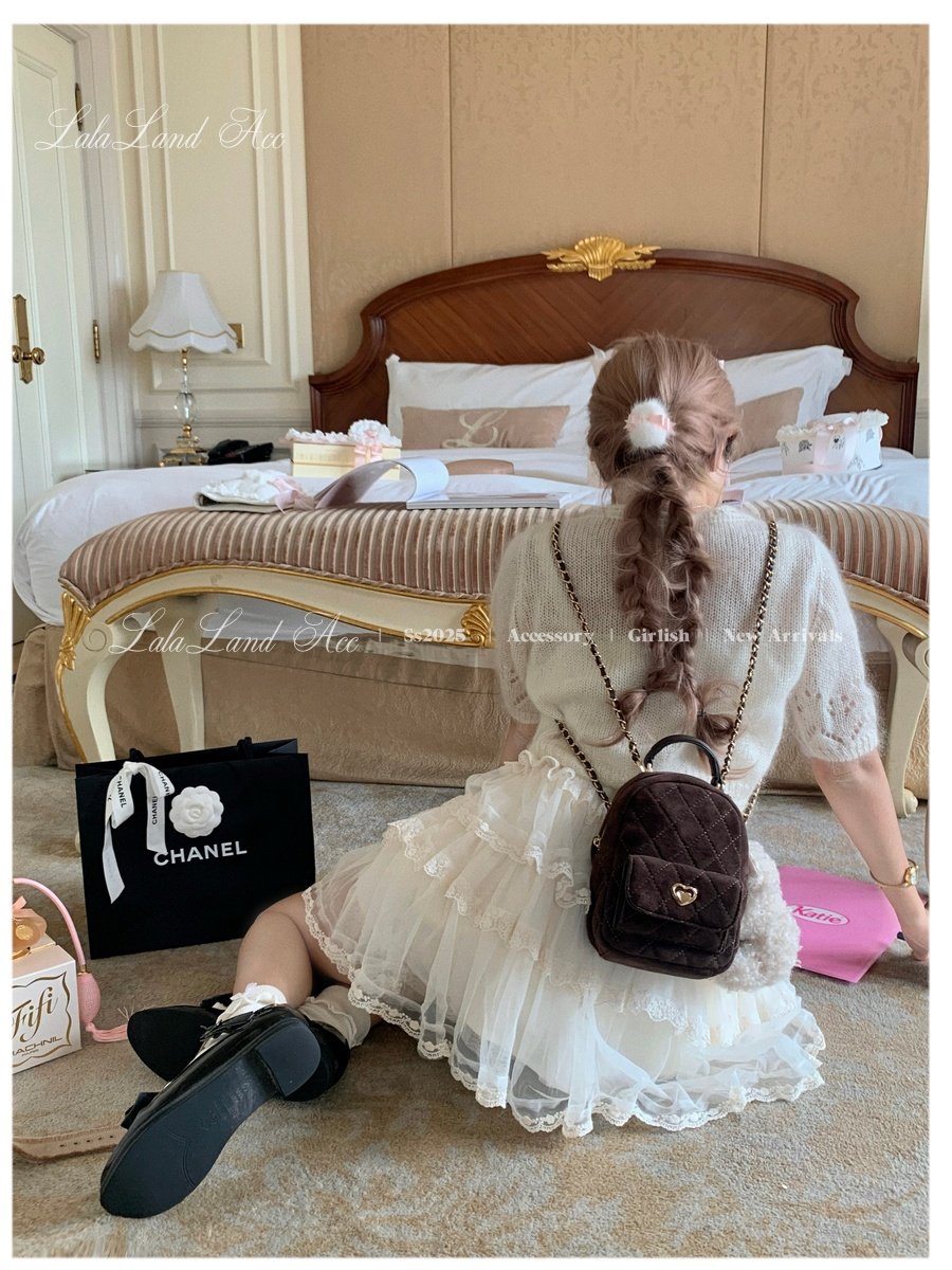 Lala land acc/嬌寵氣質 自製小香風菱格鏈條雙肩包小書包後後背包女