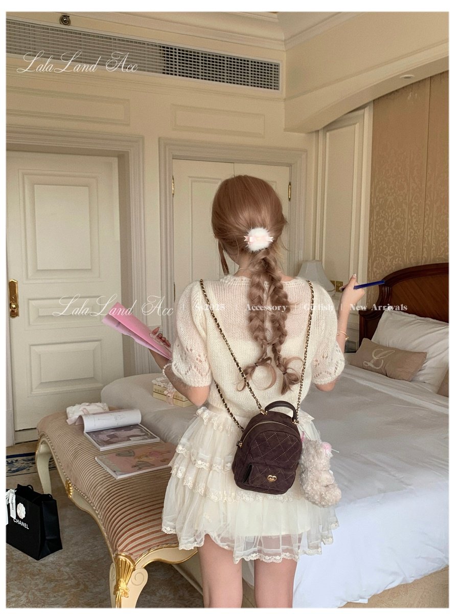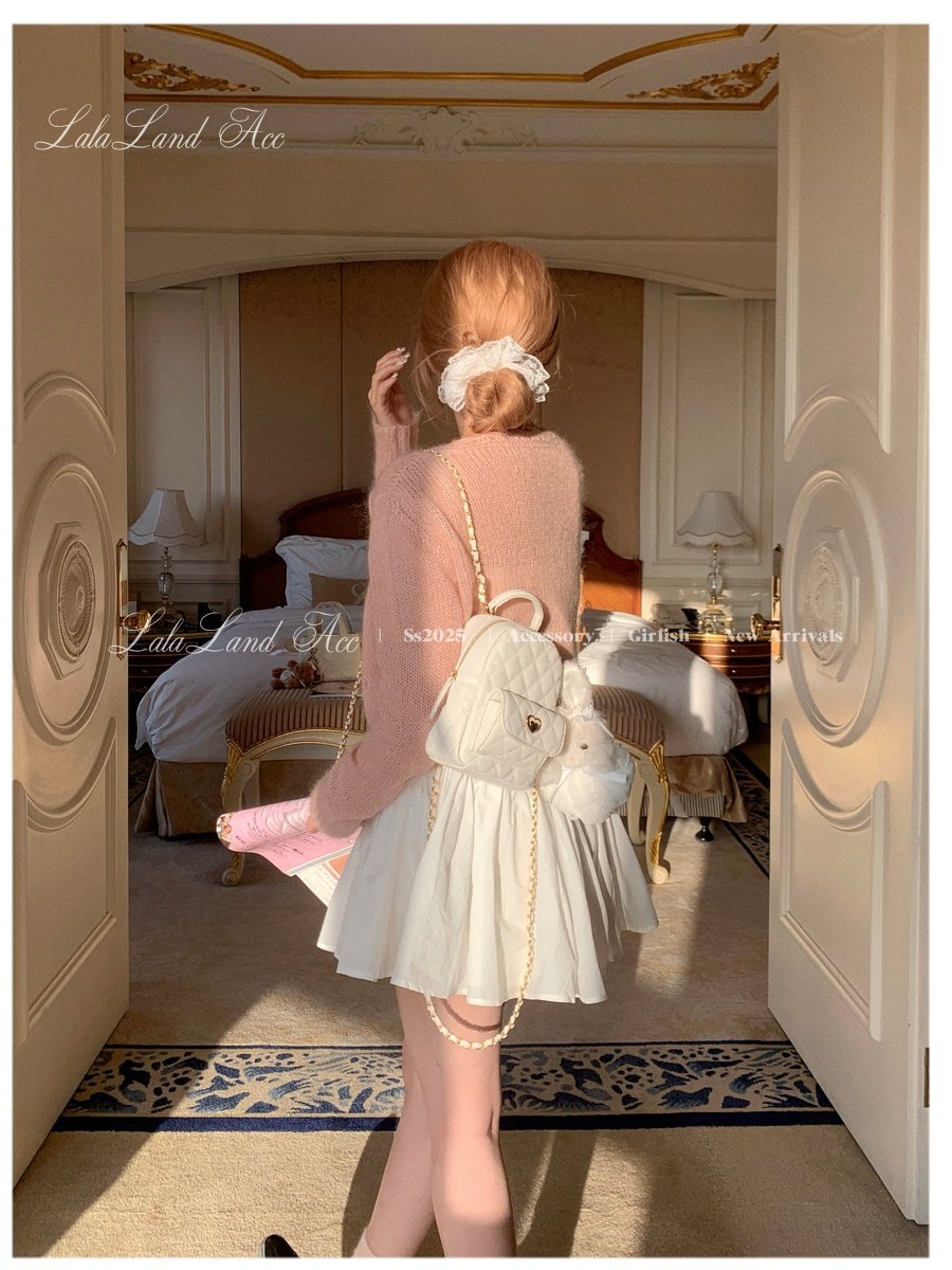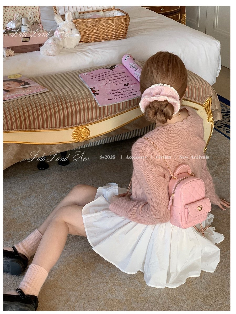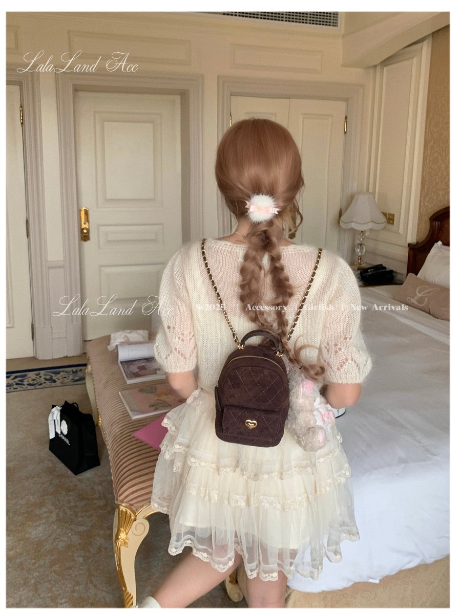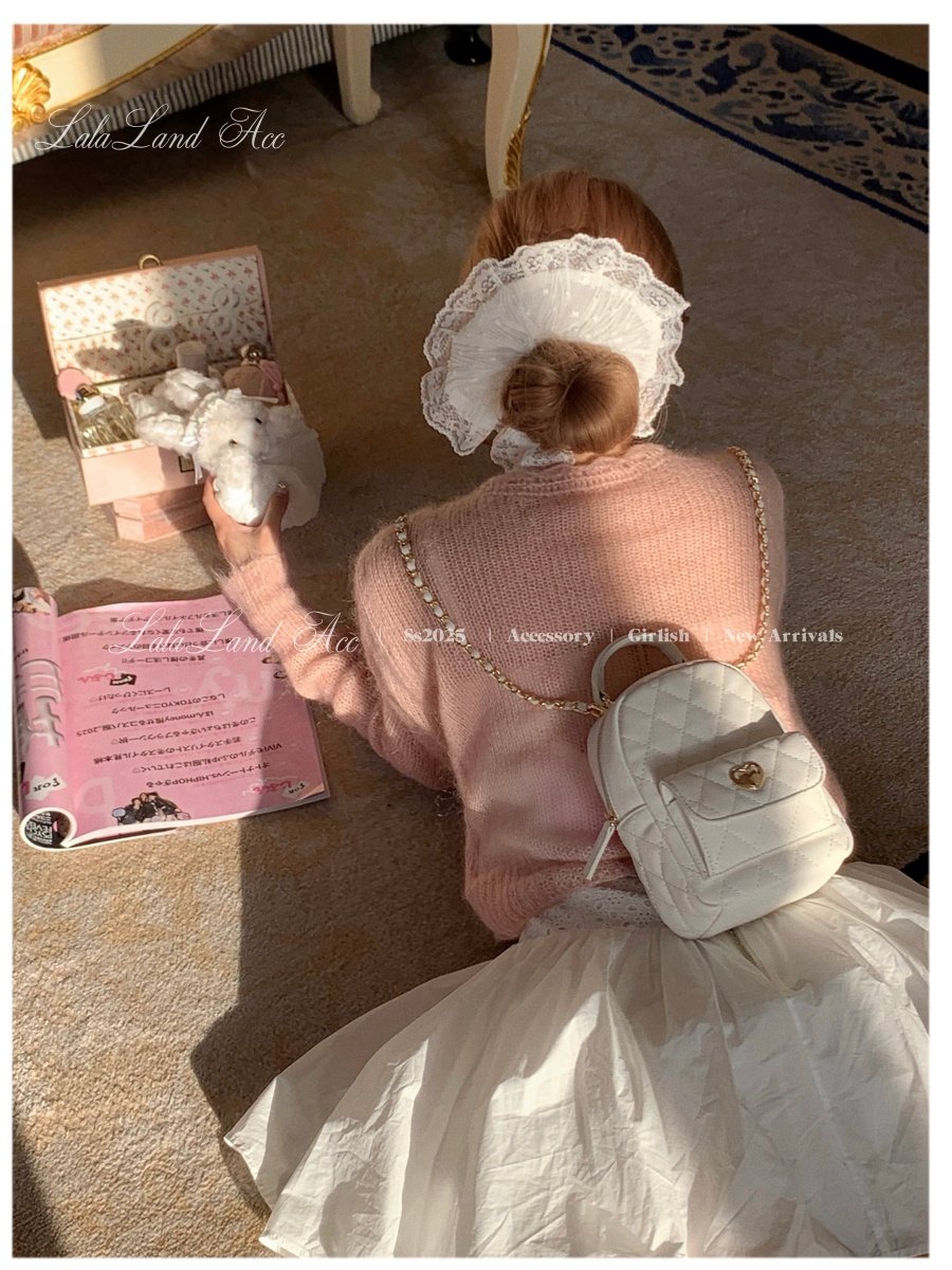 Lala land acc/嬌寵氣質 自製小香風菱格鏈條雙肩包小書包後後背包女