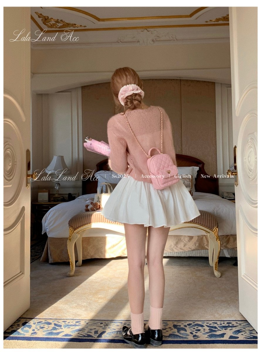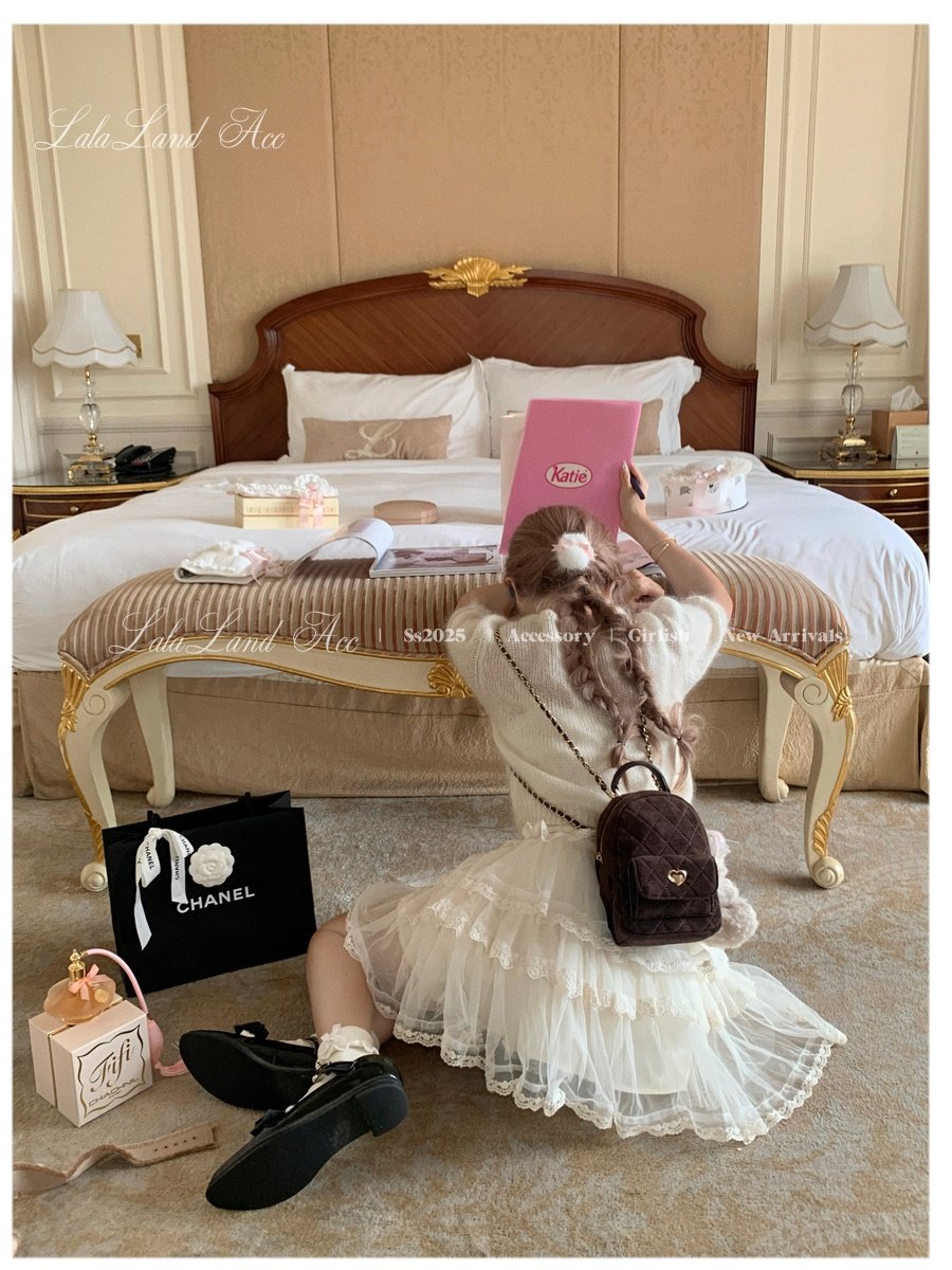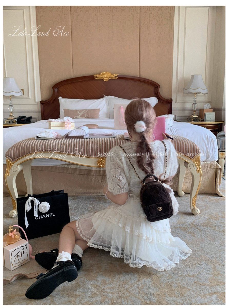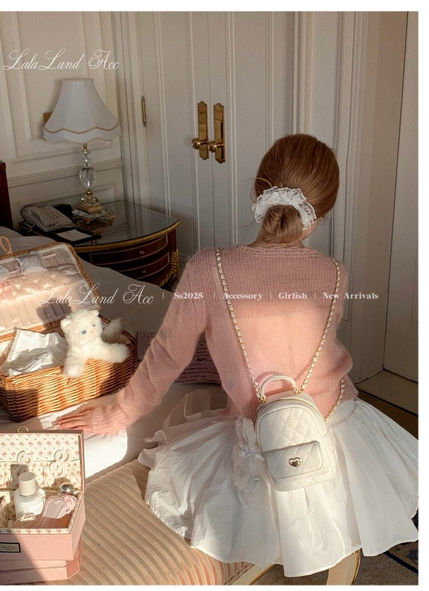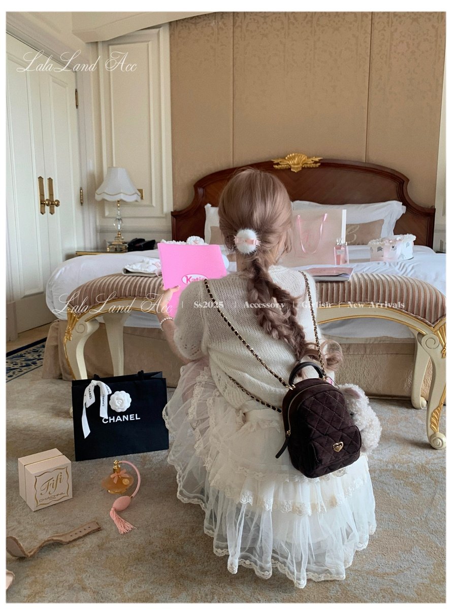 Lala land acc/嬌寵氣質 自製小香風菱格鏈條雙肩包小書包後後背包女