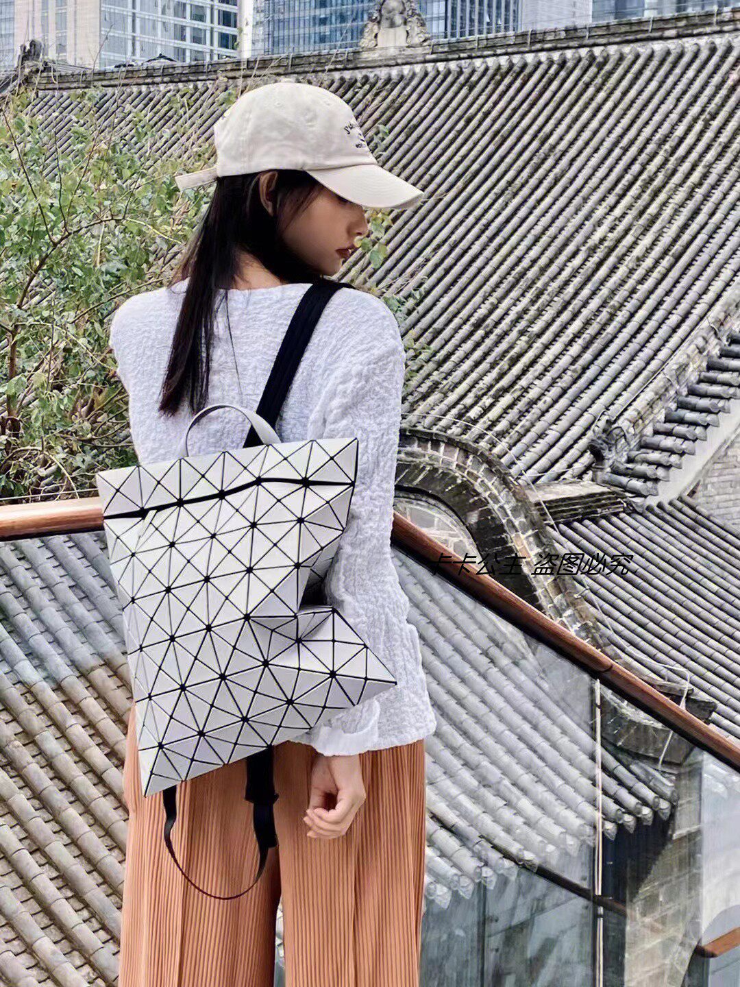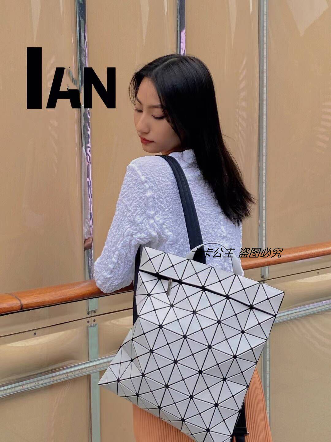 新款學院風雙肩後後背包男女同款幾何菱格輕便休閒書包大學生電腦包