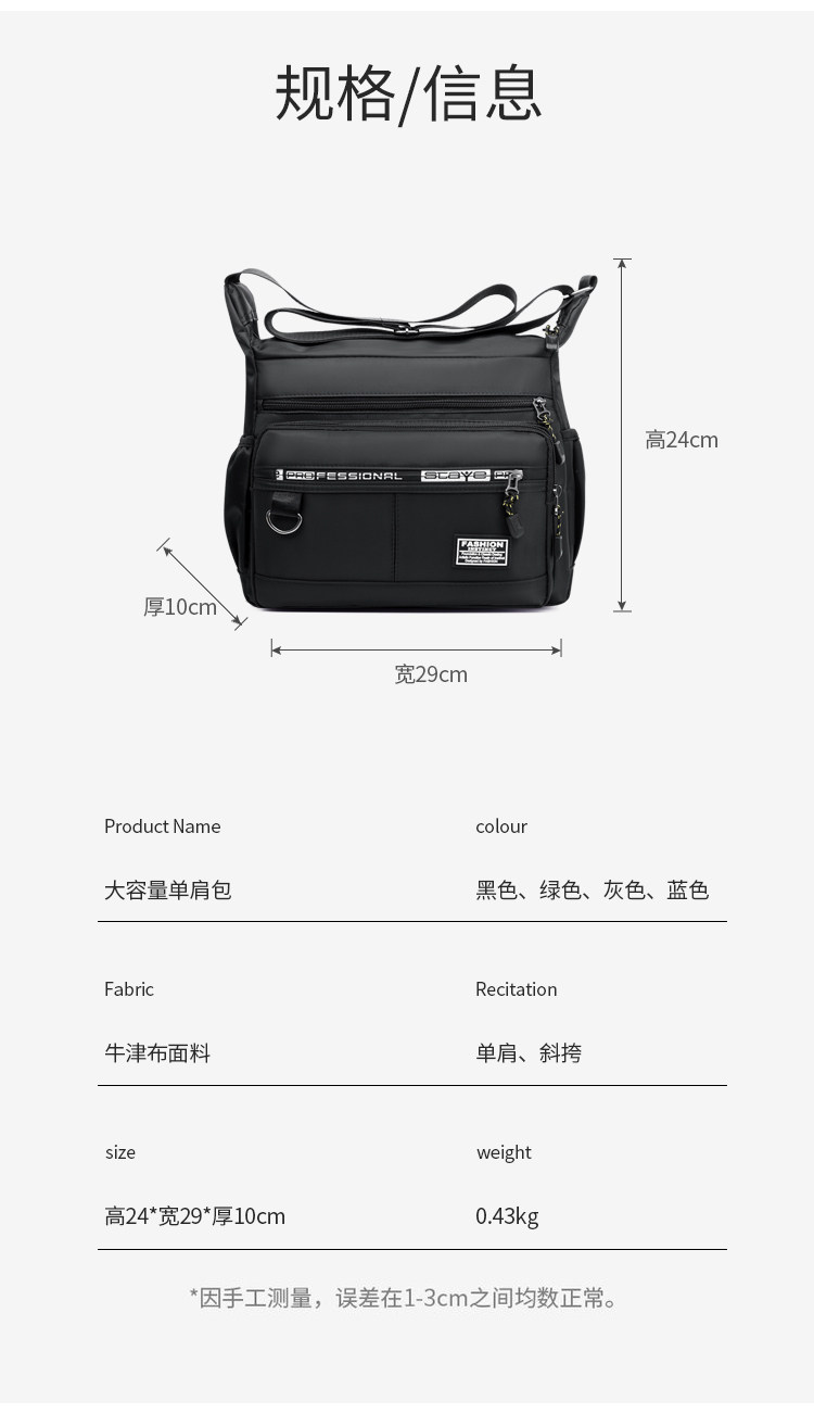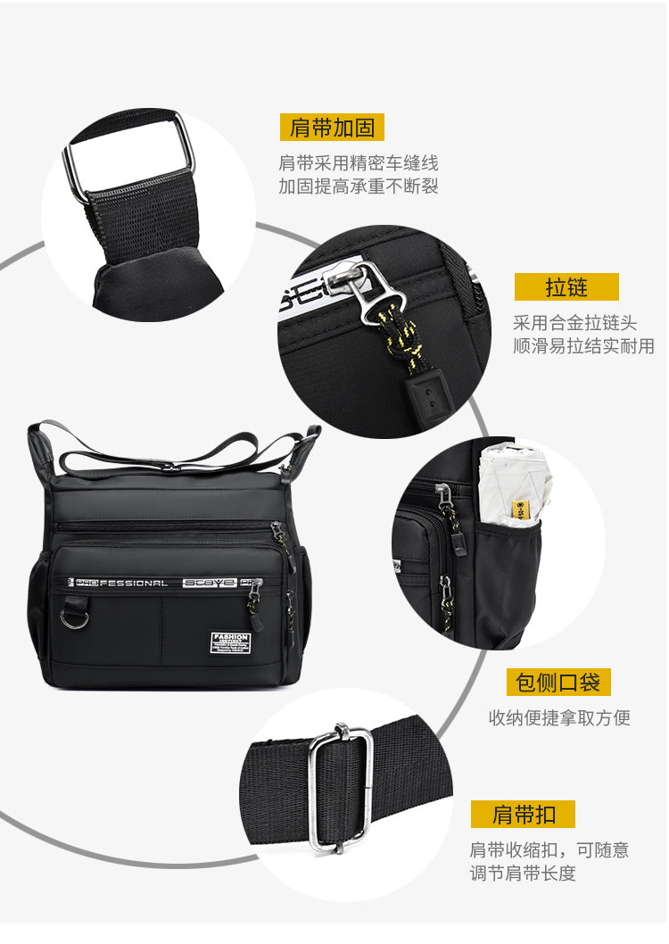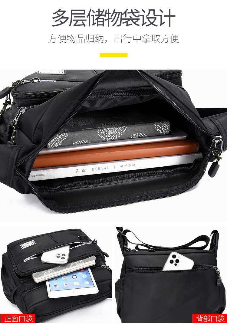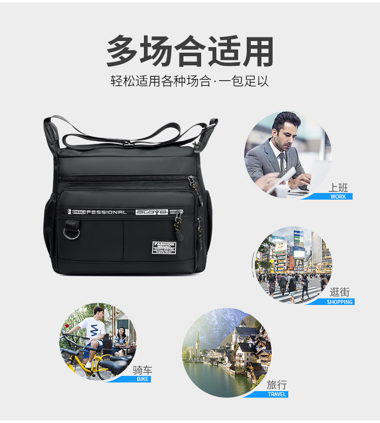 大容量男包單肩包防水耐磨後後背包多口袋做生意包商務休閒男士斜後後背包