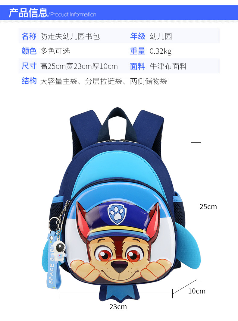 新款汪汪隊後後背包男寶入園護脊雙肩包女孩卡通小狗帶胸釦幼兒園書包