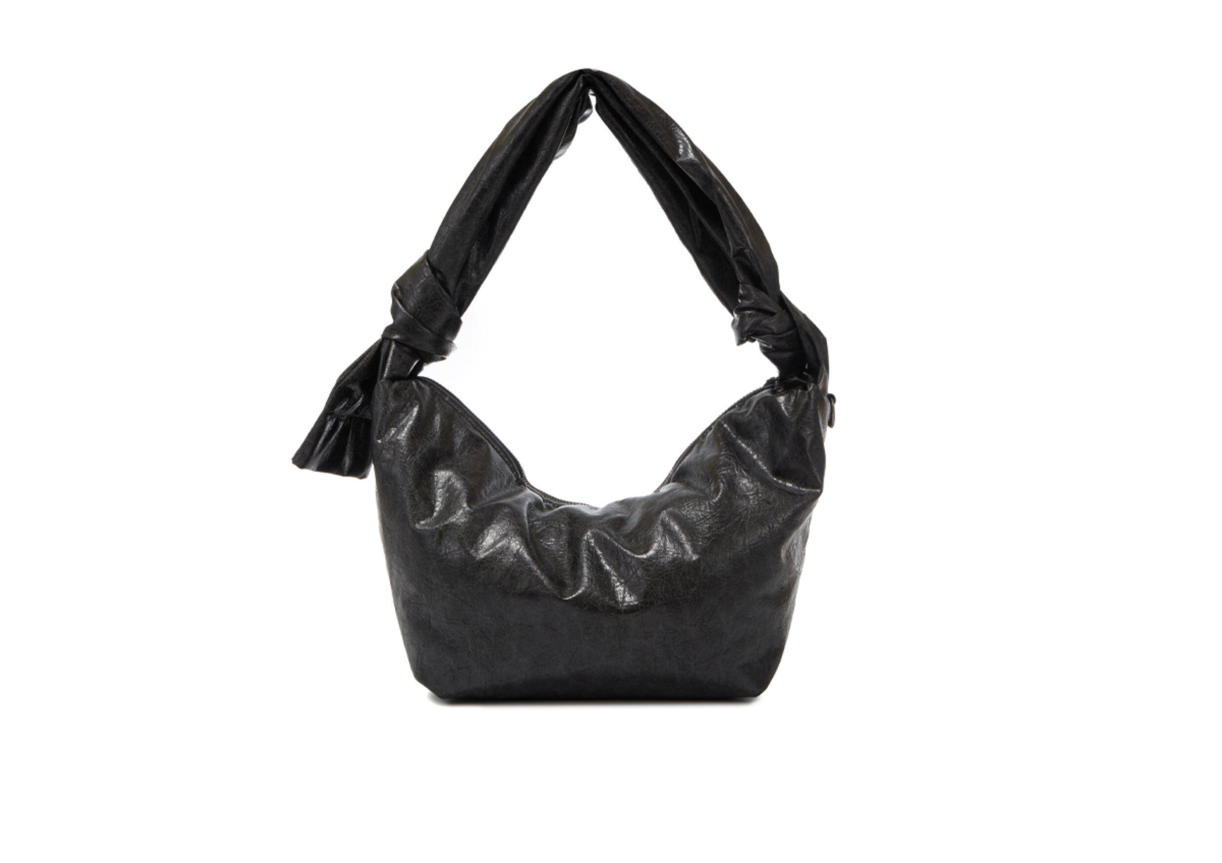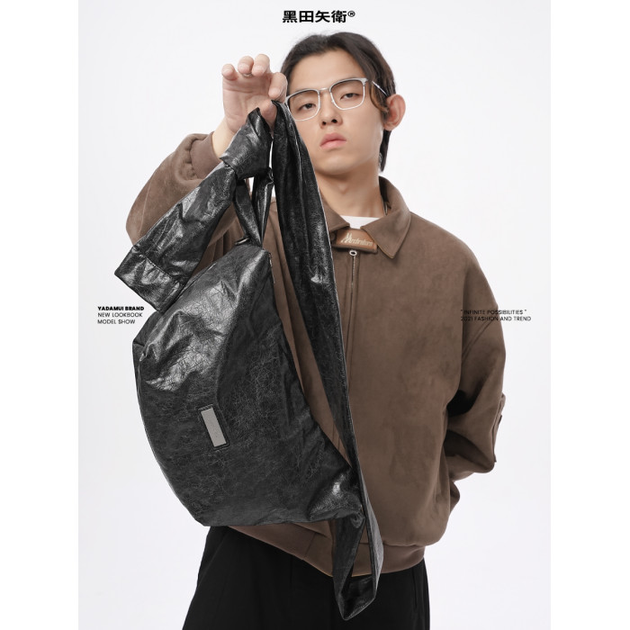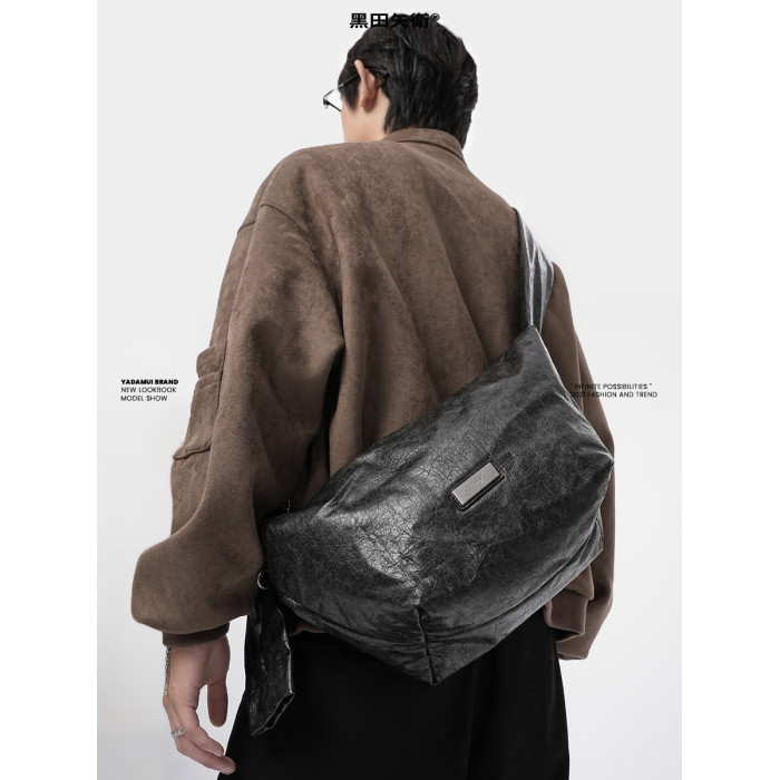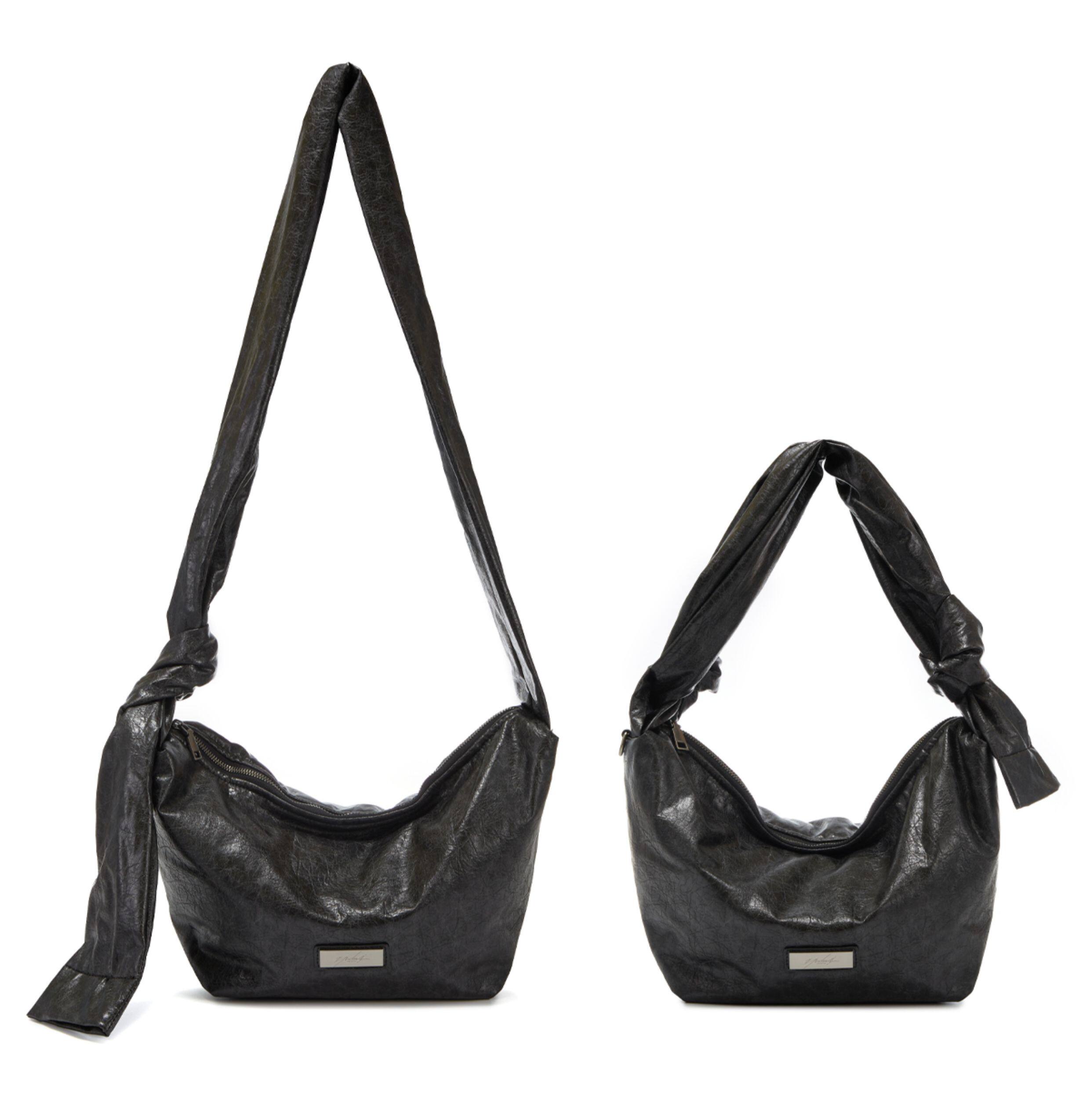 綁結式肩帶爆裂紋2025年新款復古小斜背褶皺餃子包小衆男女款軟包
