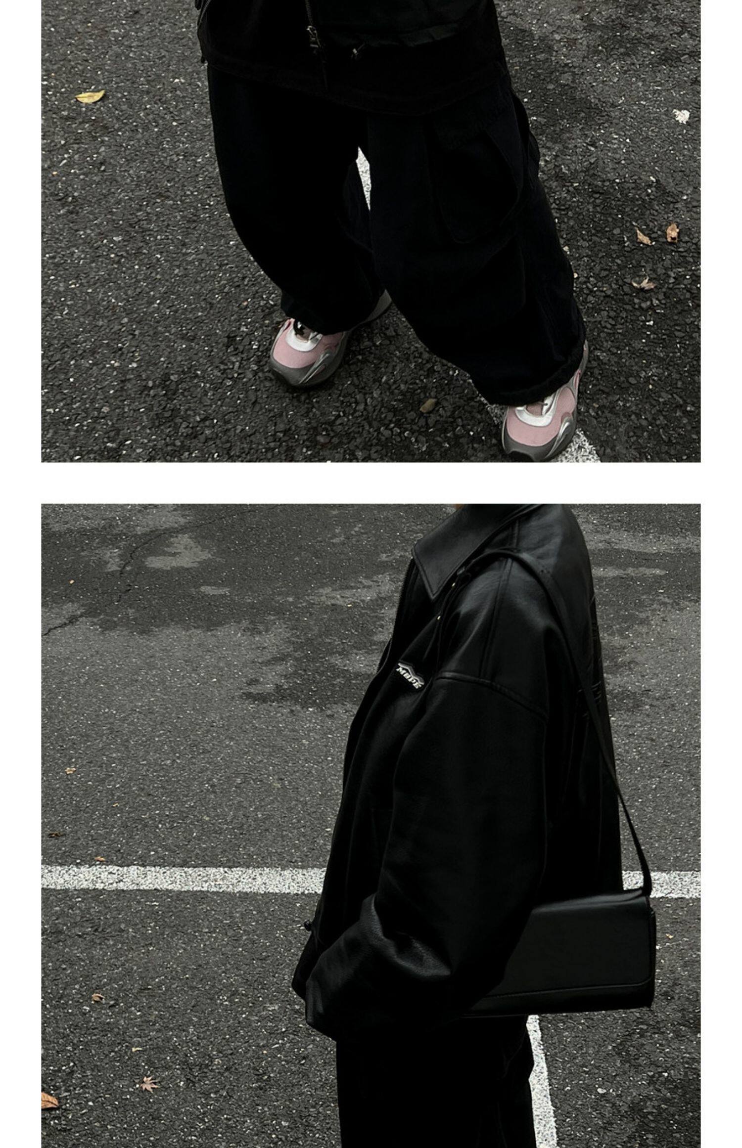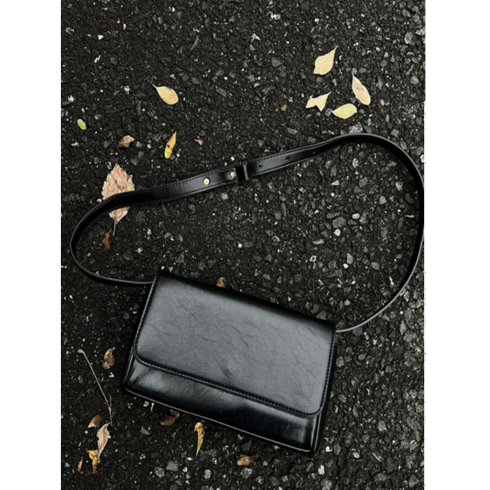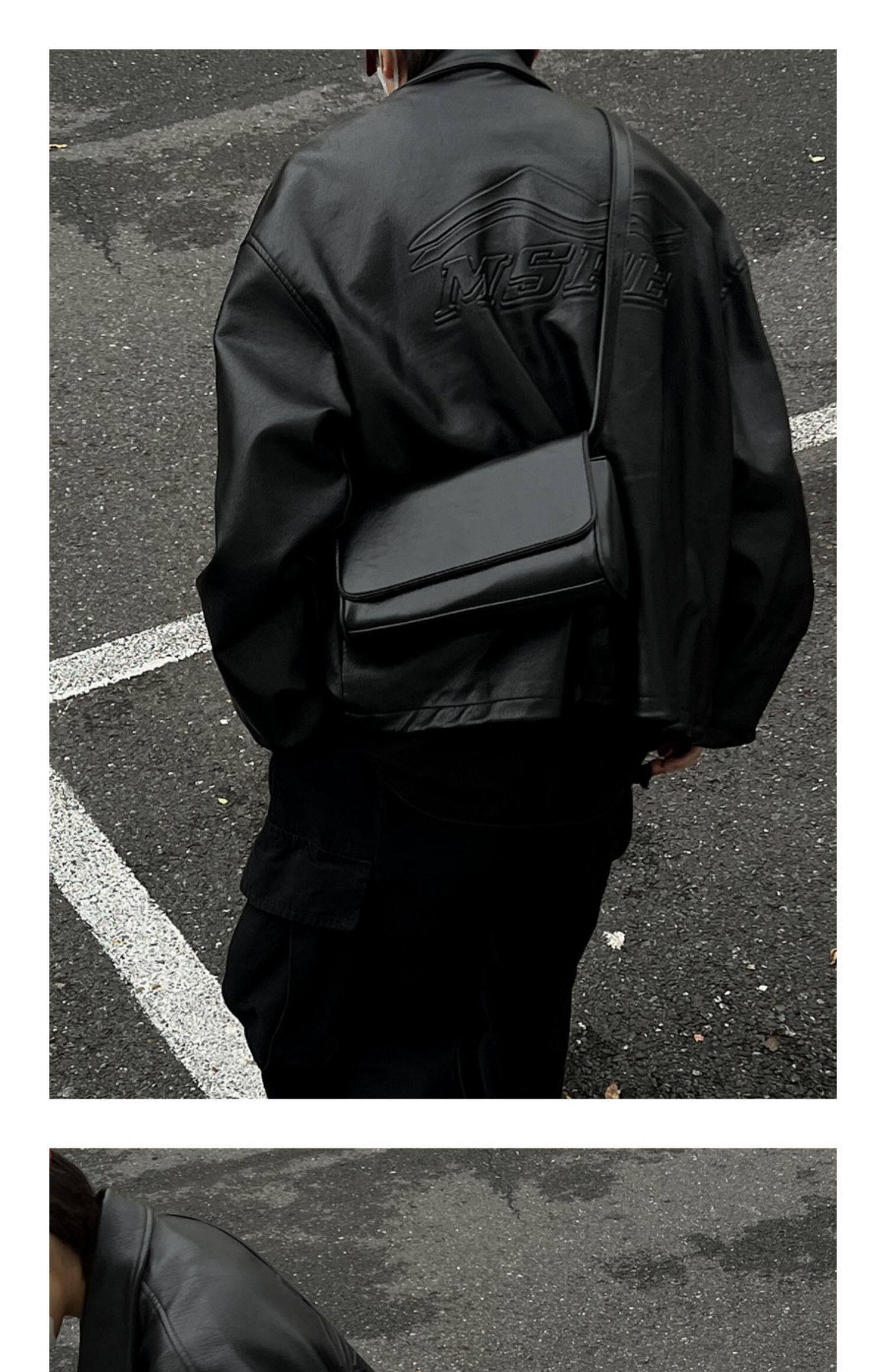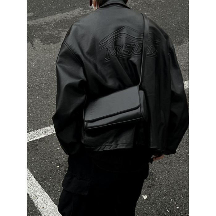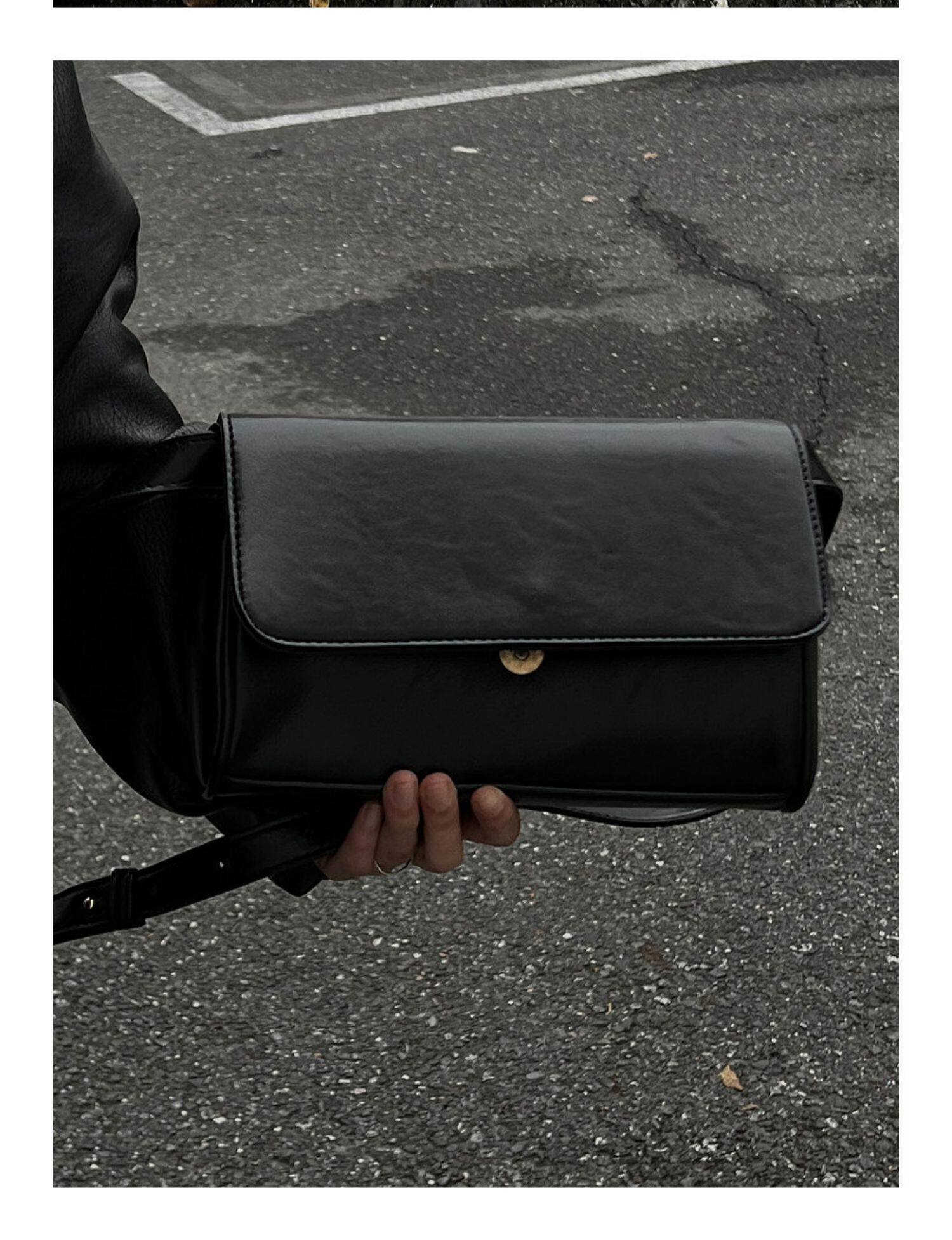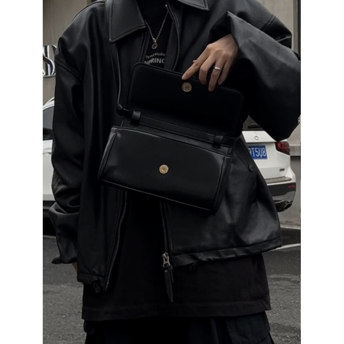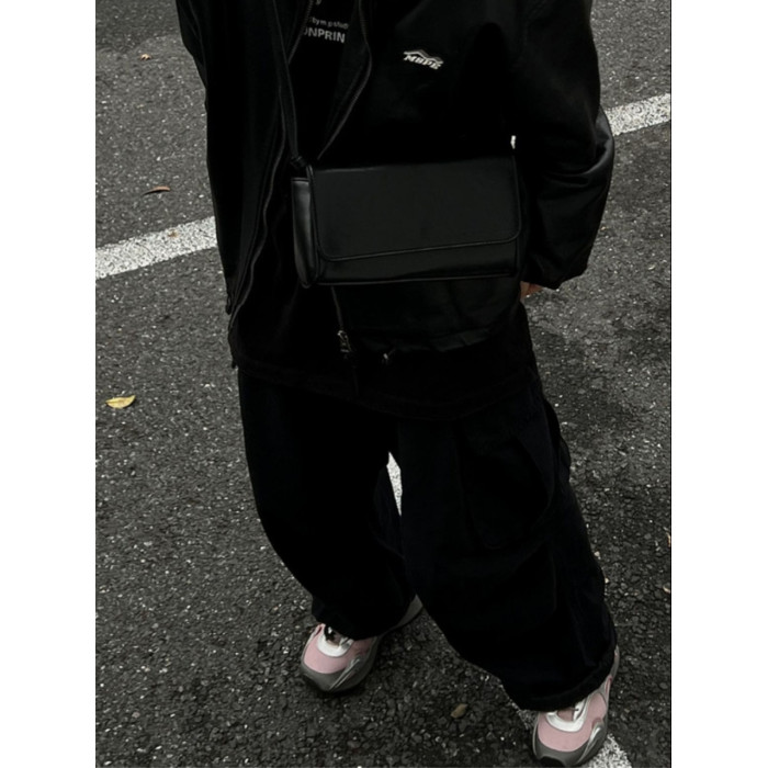 ins極簡中性風繙蓋小方包潮流男生休閒斜後後背包皮質腋下小單肩胸包