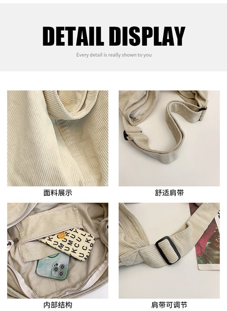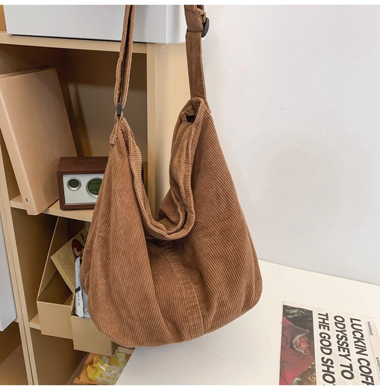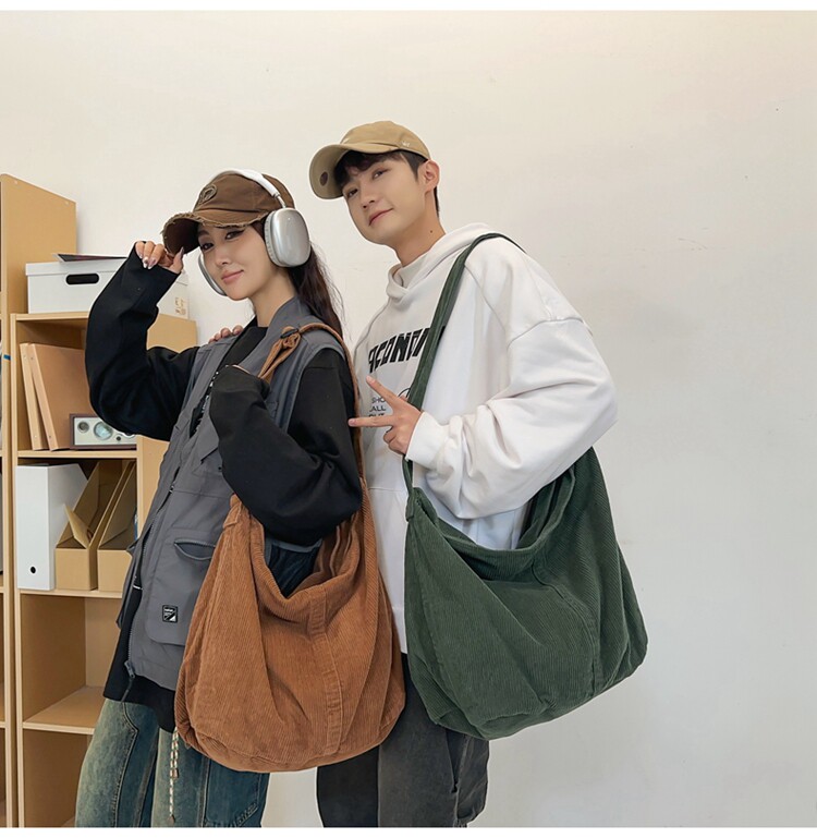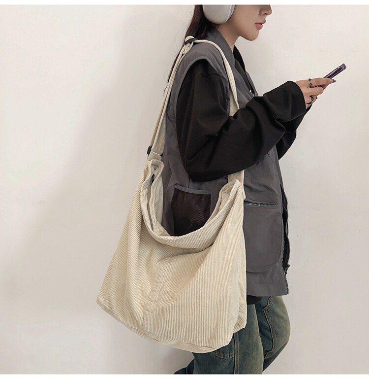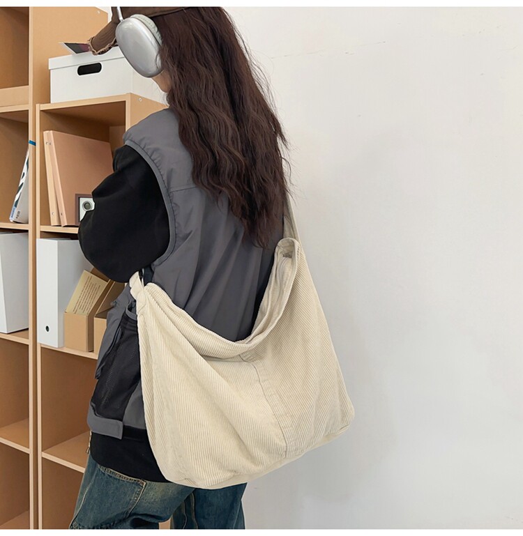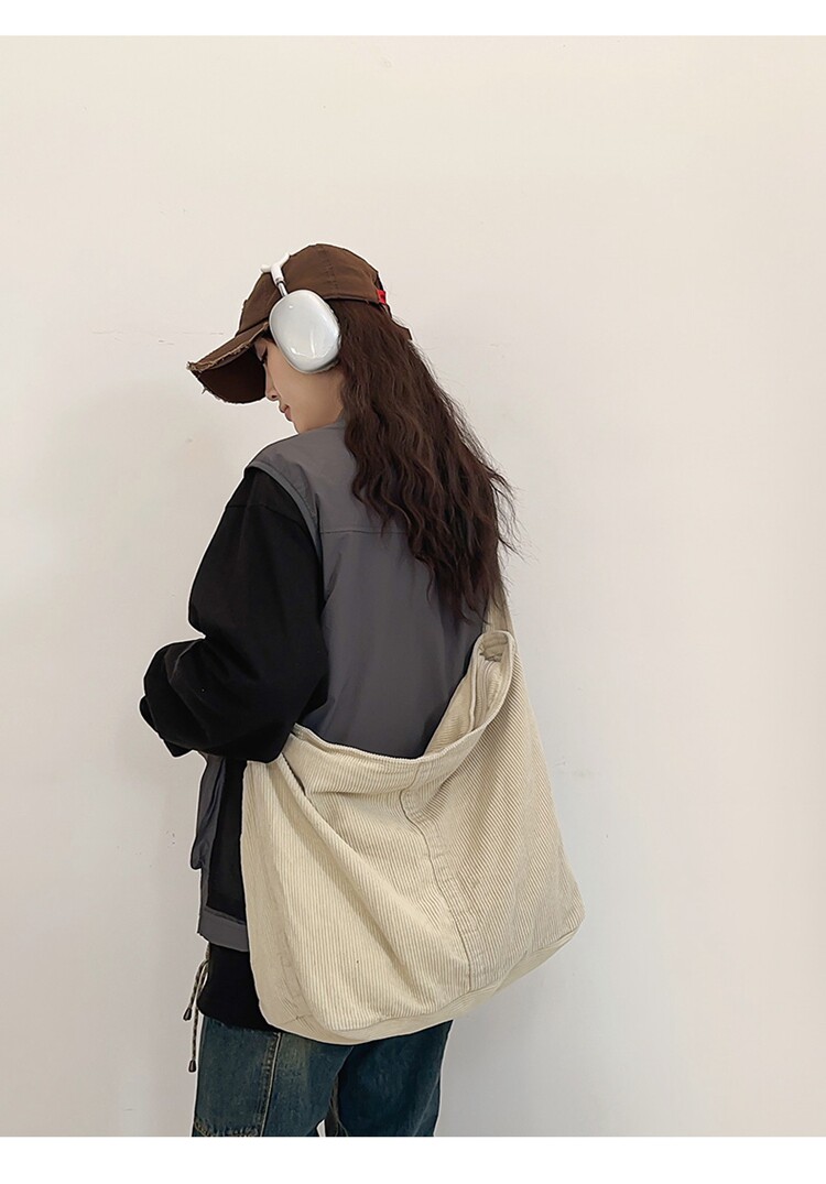 韓版文藝森系燈芯絨包慵懶風斜後後背包大容量百搭簡約休閒復古單肩包