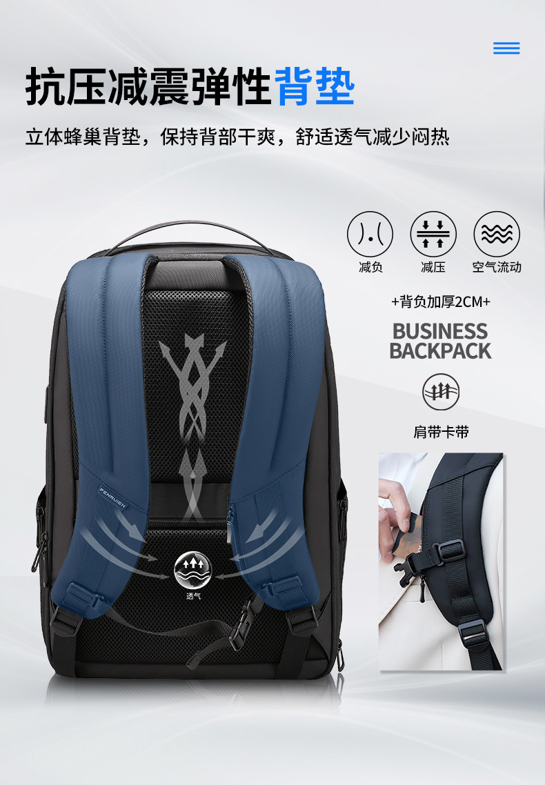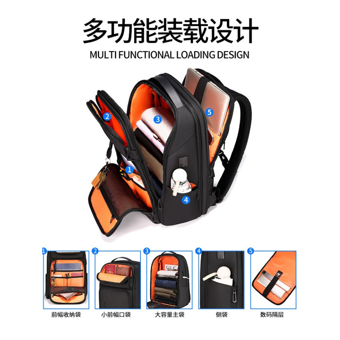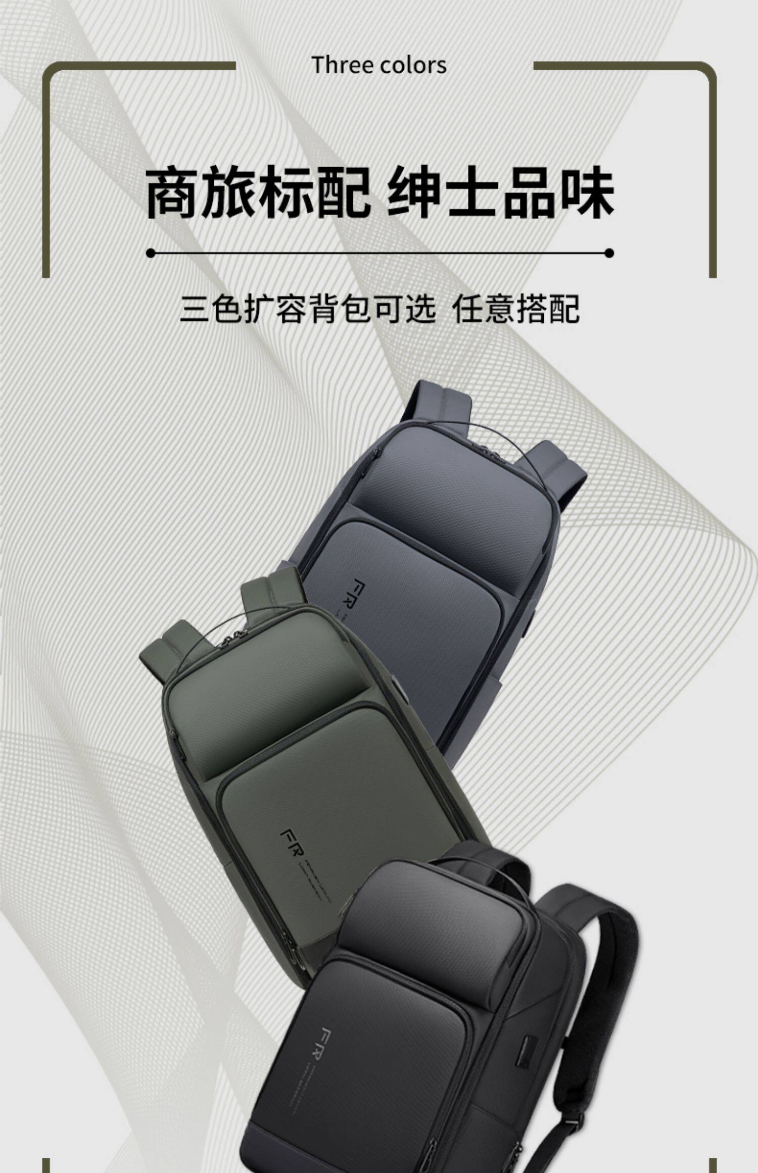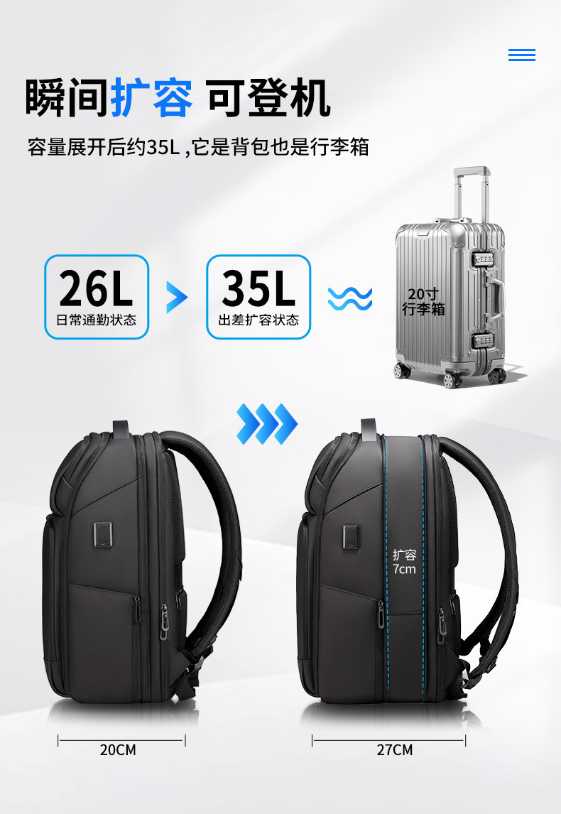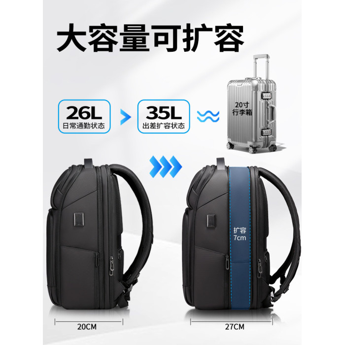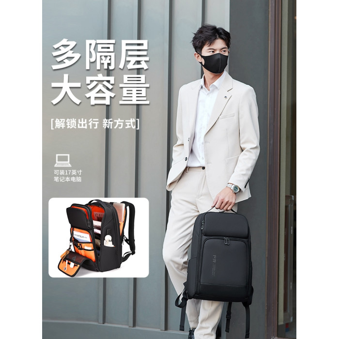 雙肩後後背包男士學生17.3寸電腦書包商務出差旅行大容量擴容休閒時尚