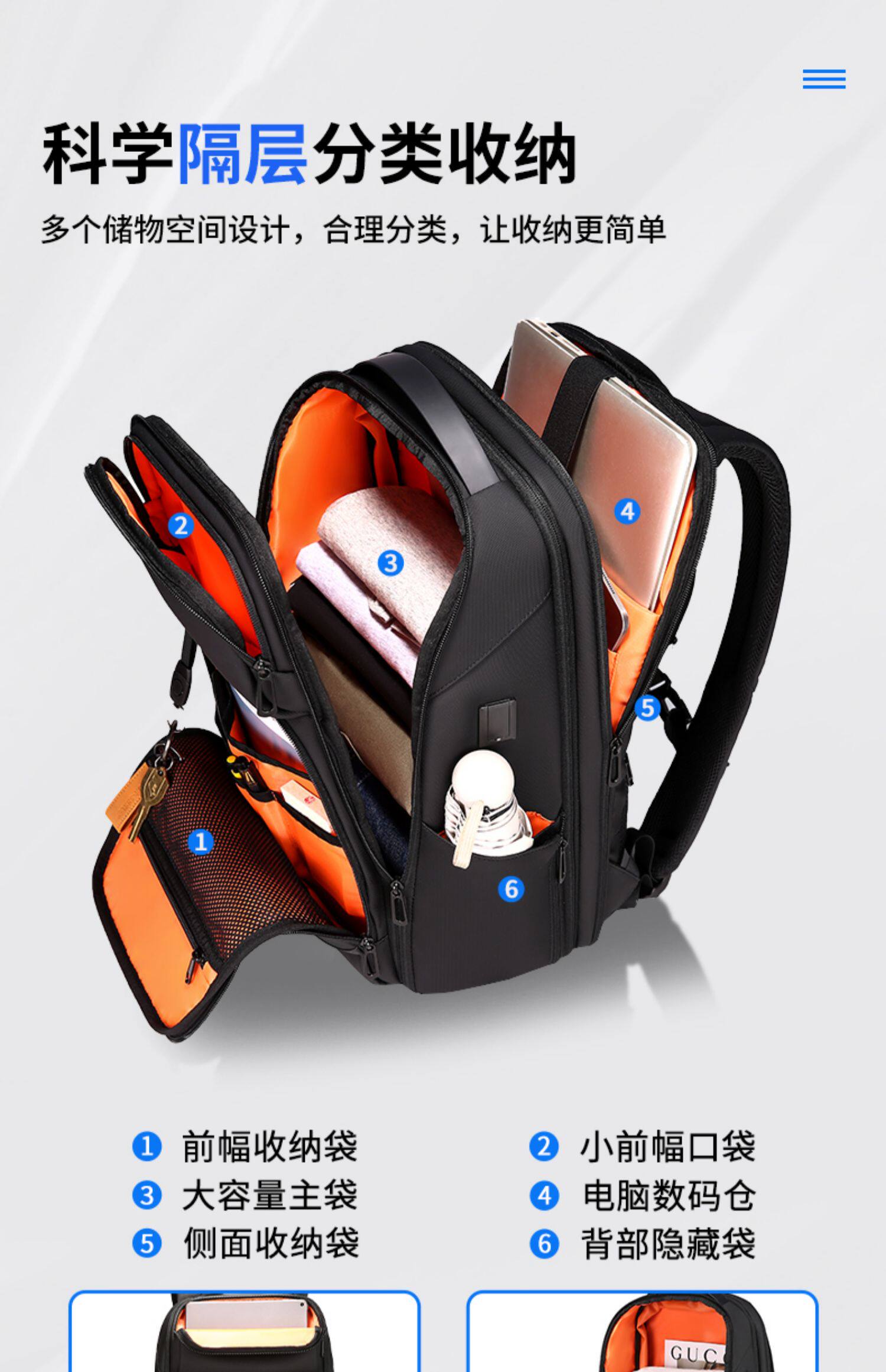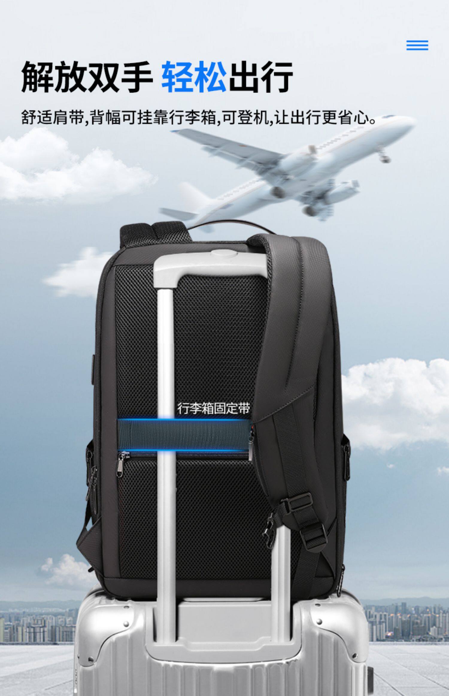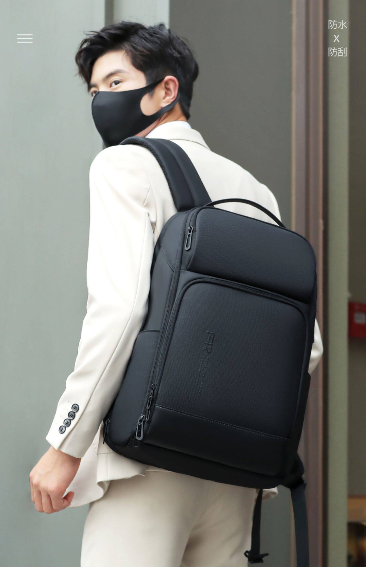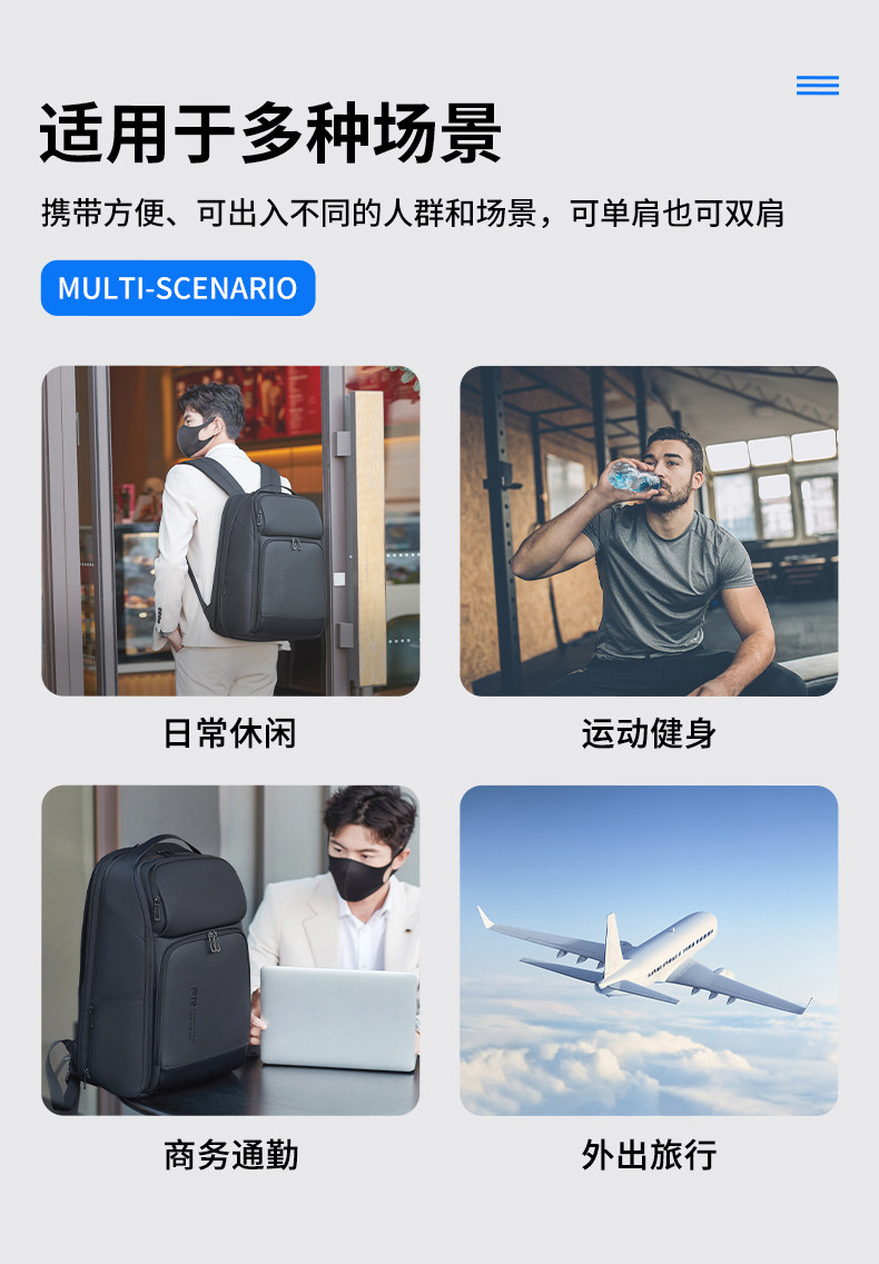 雙肩後後背包男士學生17.3寸電腦書包商務出差旅行大容量擴容休閒時尚