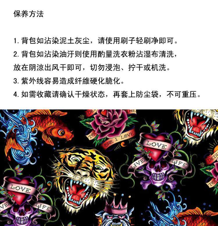 美國潮牌老虎頭休閒雙肩包 嘻哈美人魚印花中後後背包 迷彩小學生書包