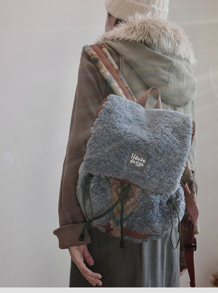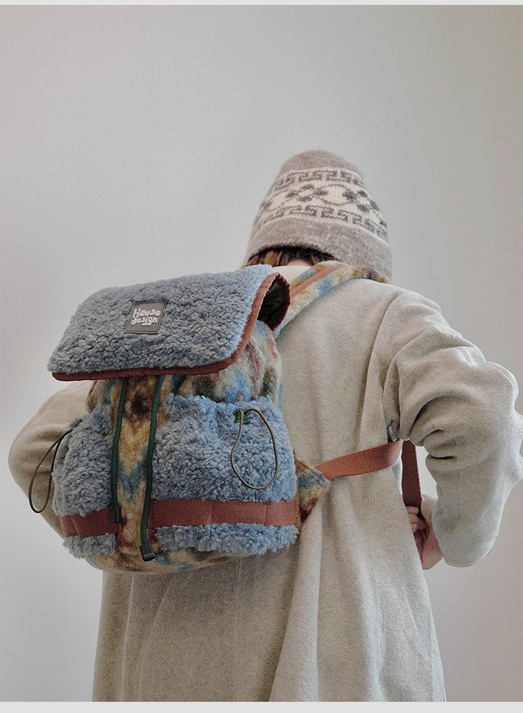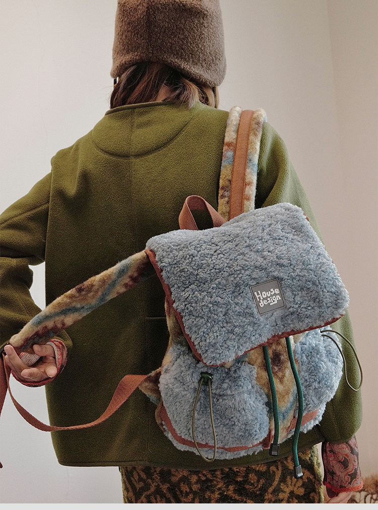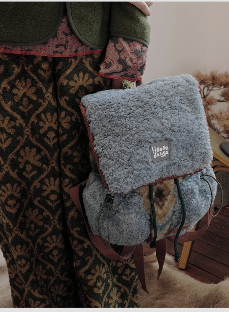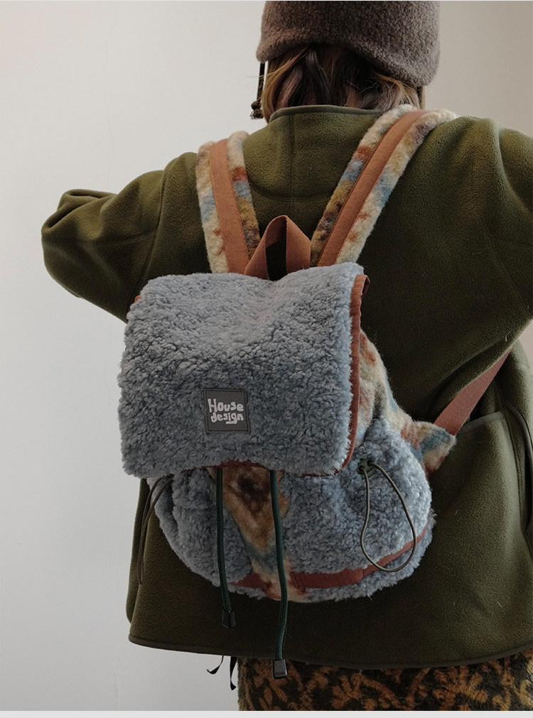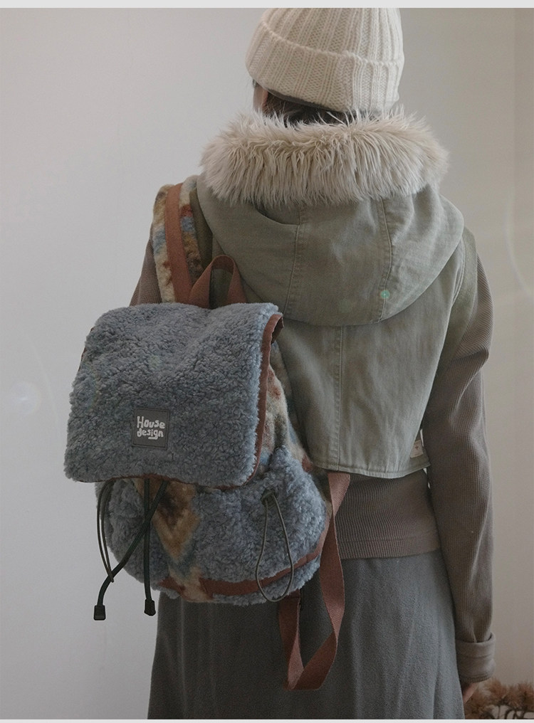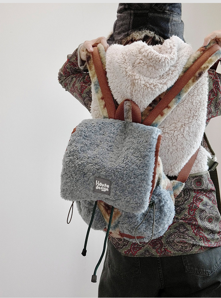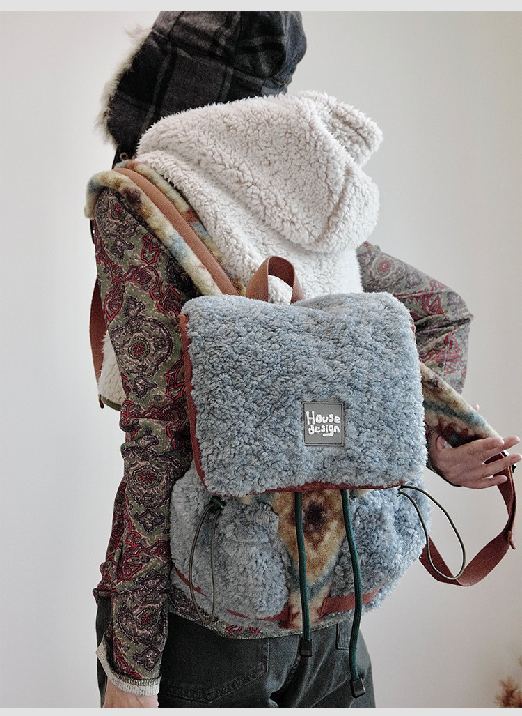 housedesign原創2025冬季毛絨復古大容量後後背包小衆通勤時尚雙肩包