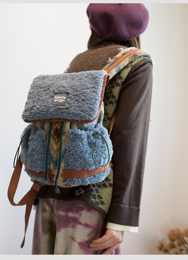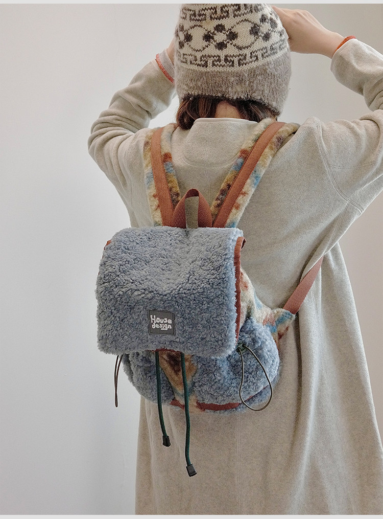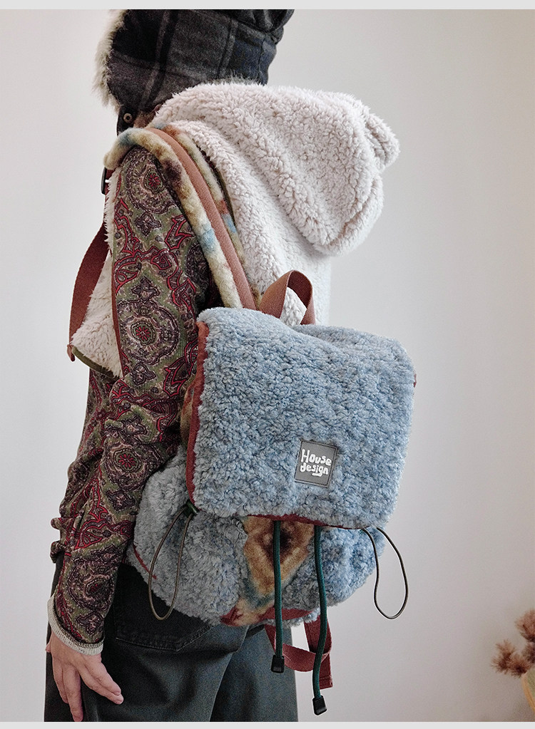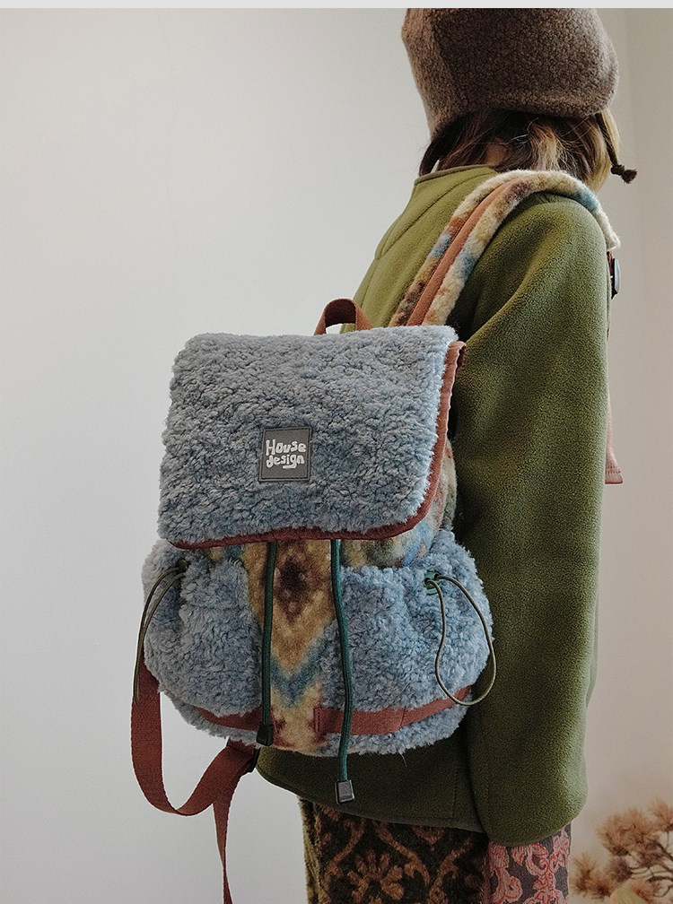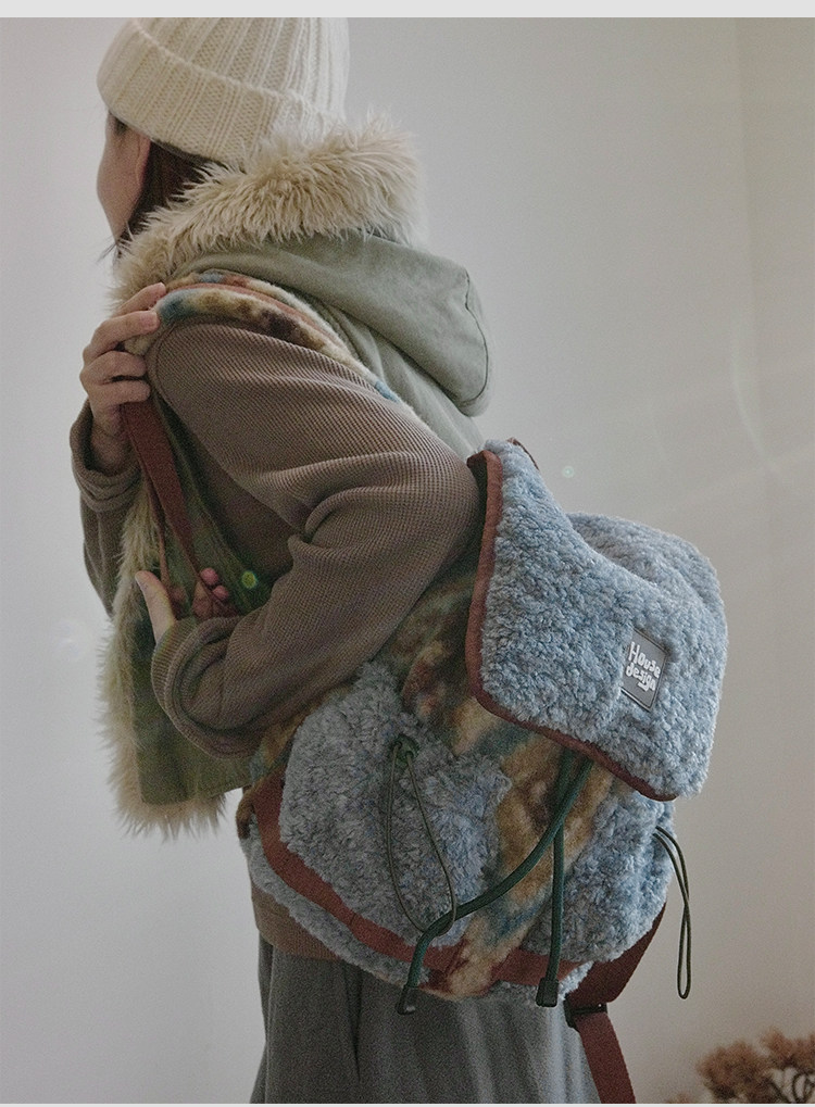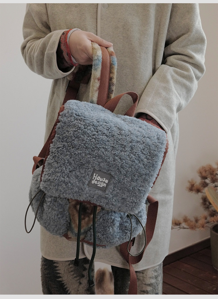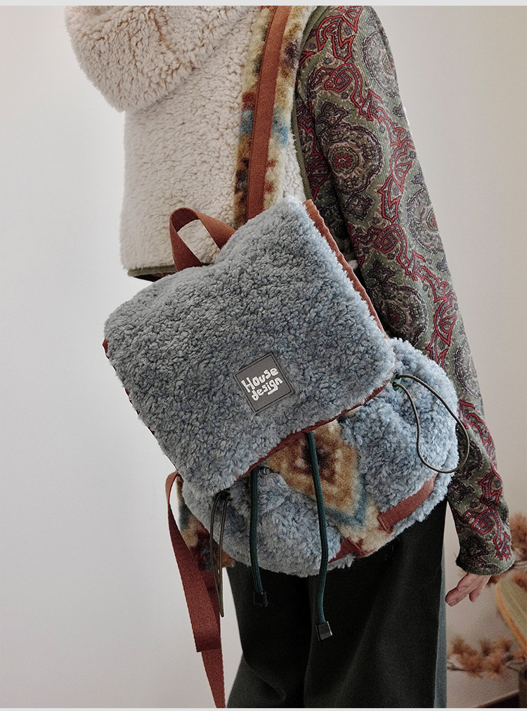 housedesign原創2025冬季毛絨復古大容量後後背包小衆通勤時尚雙肩包