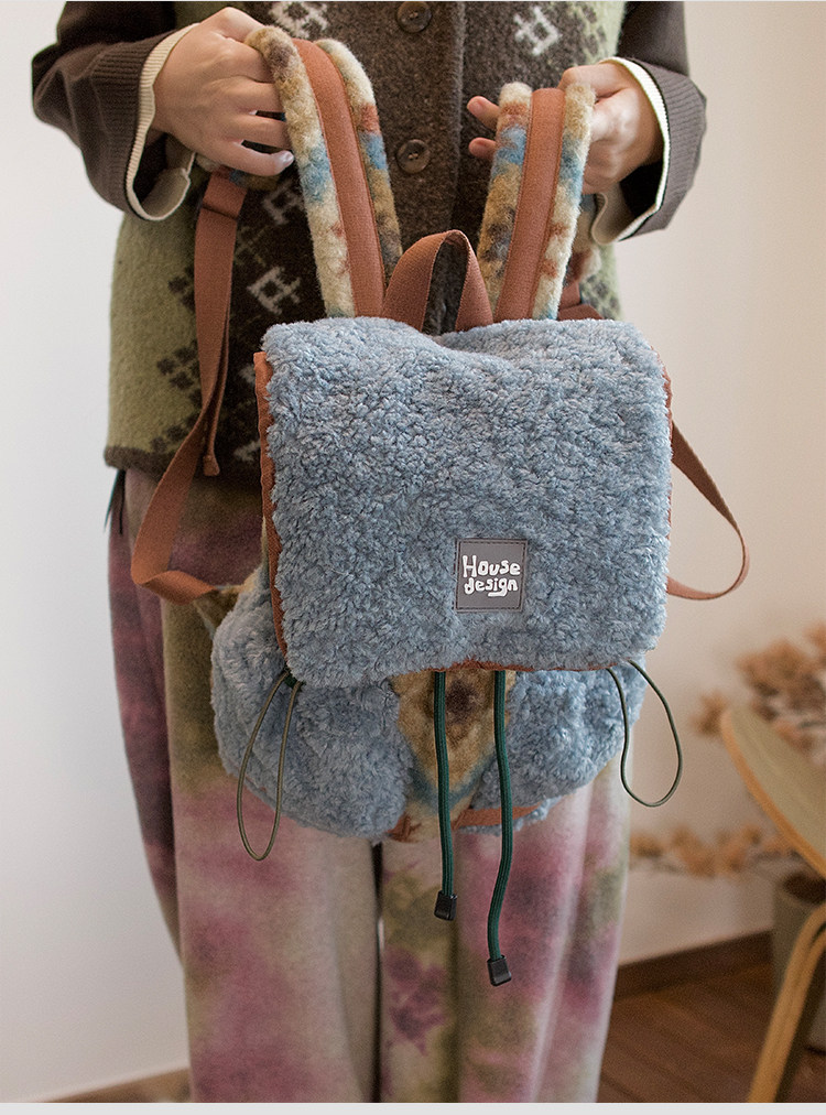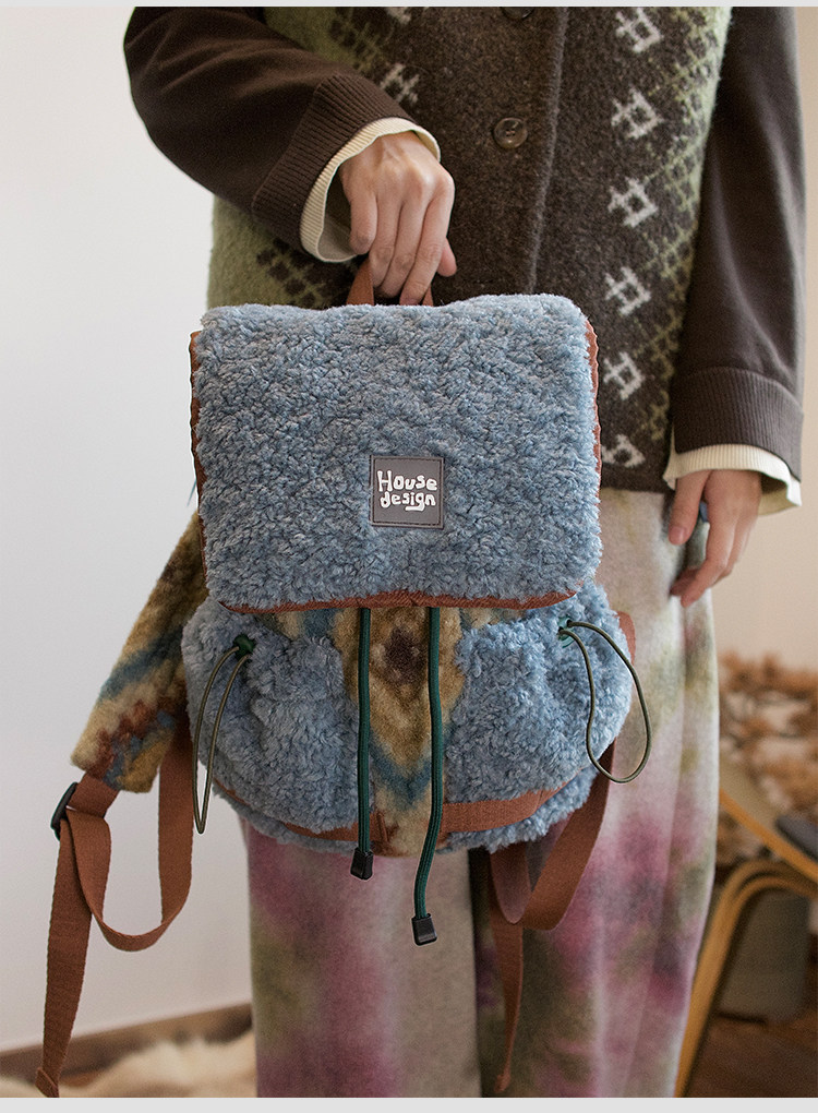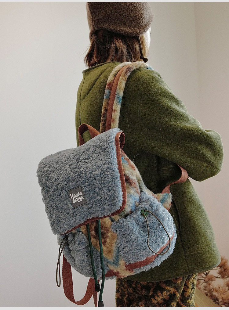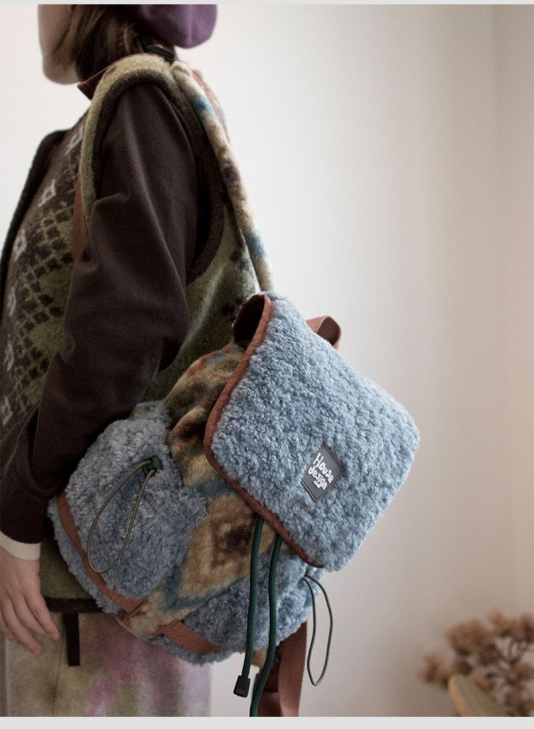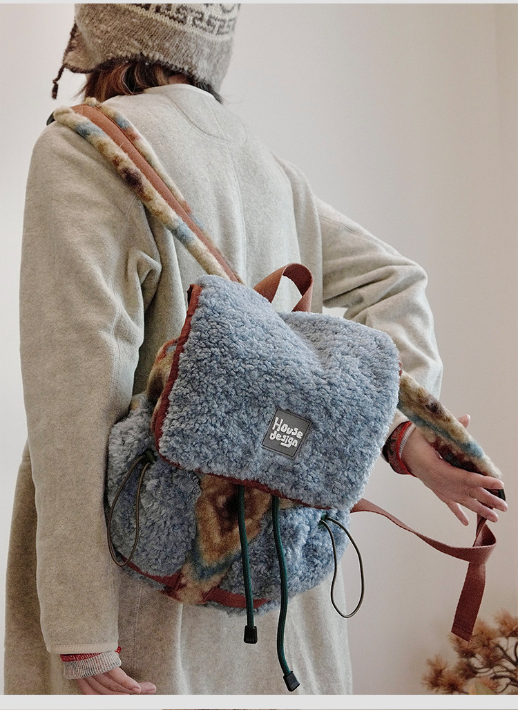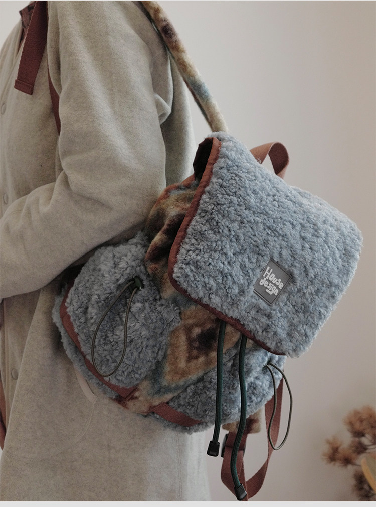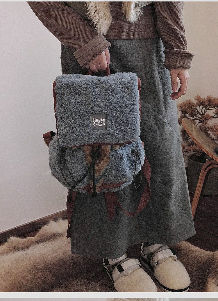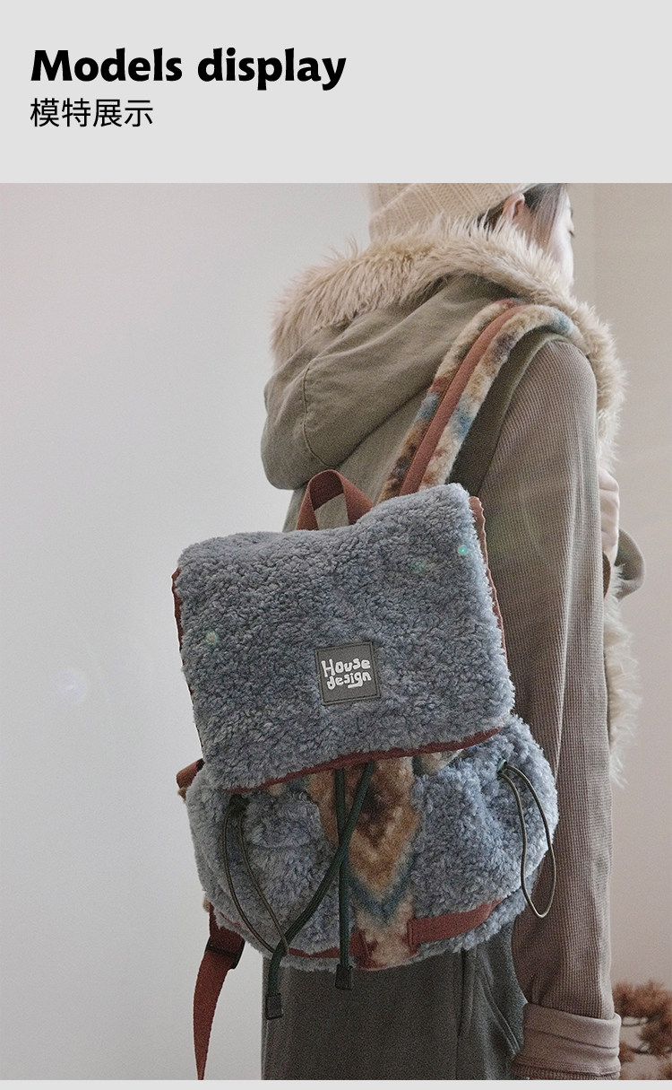 housedesign原創2025冬季毛絨復古大容量後後背包小衆通勤時尚雙肩包