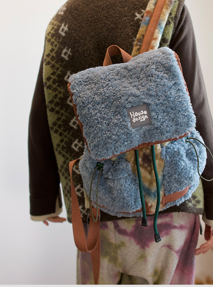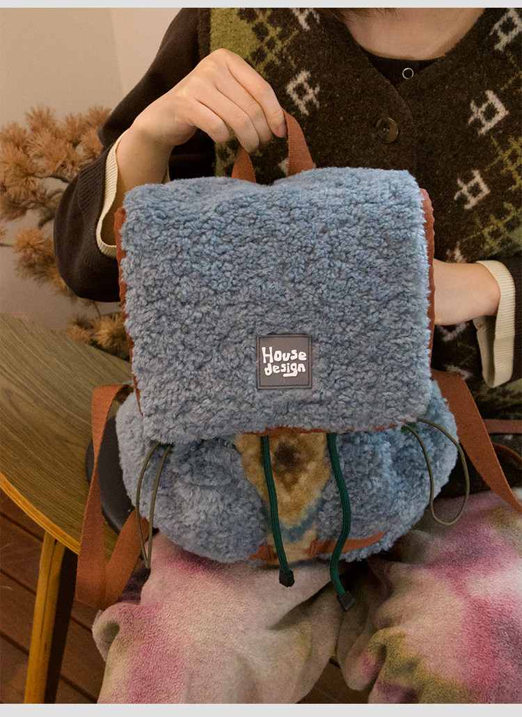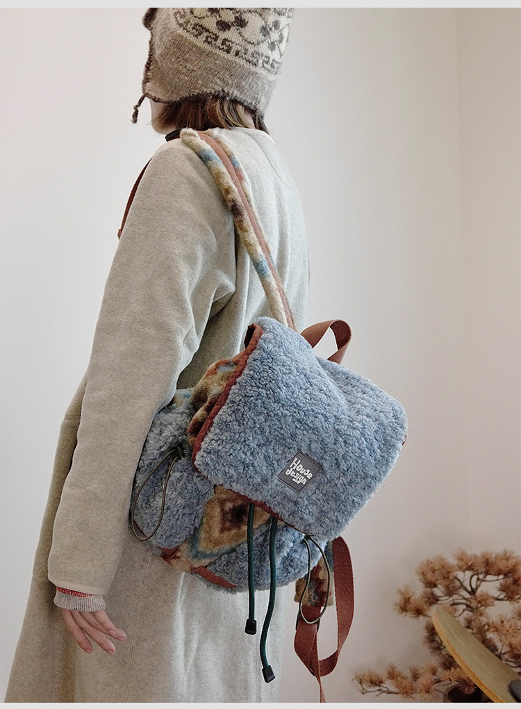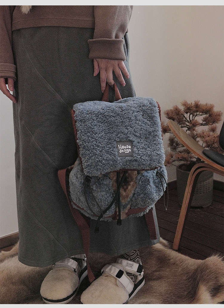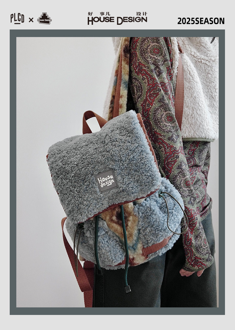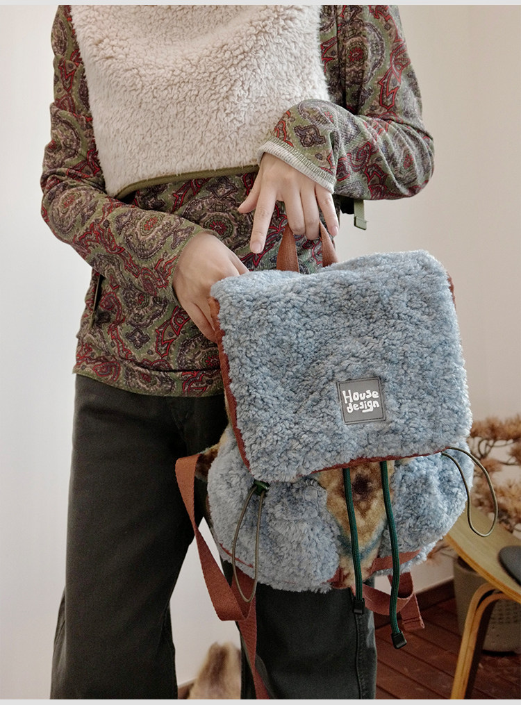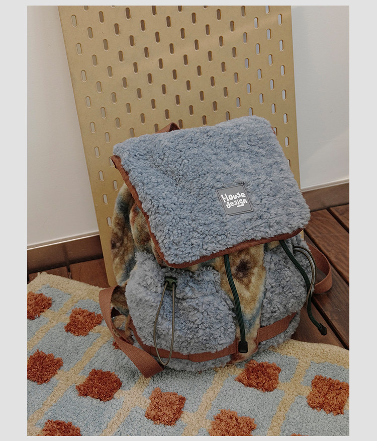housedesign原創2025冬季毛絨復古大容量後後背包小衆通勤時尚雙肩包