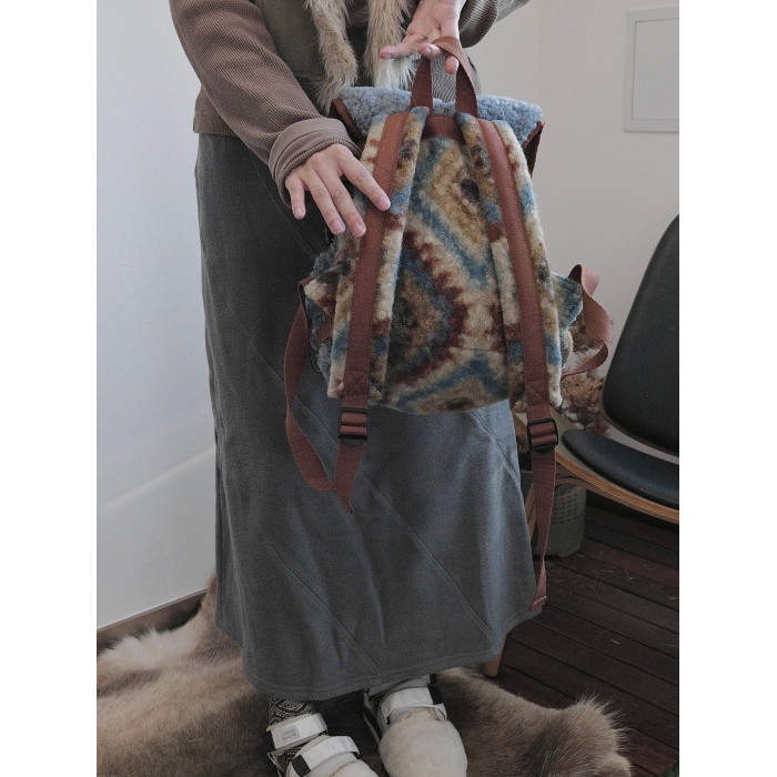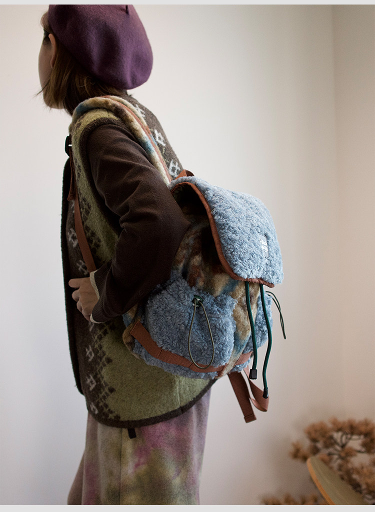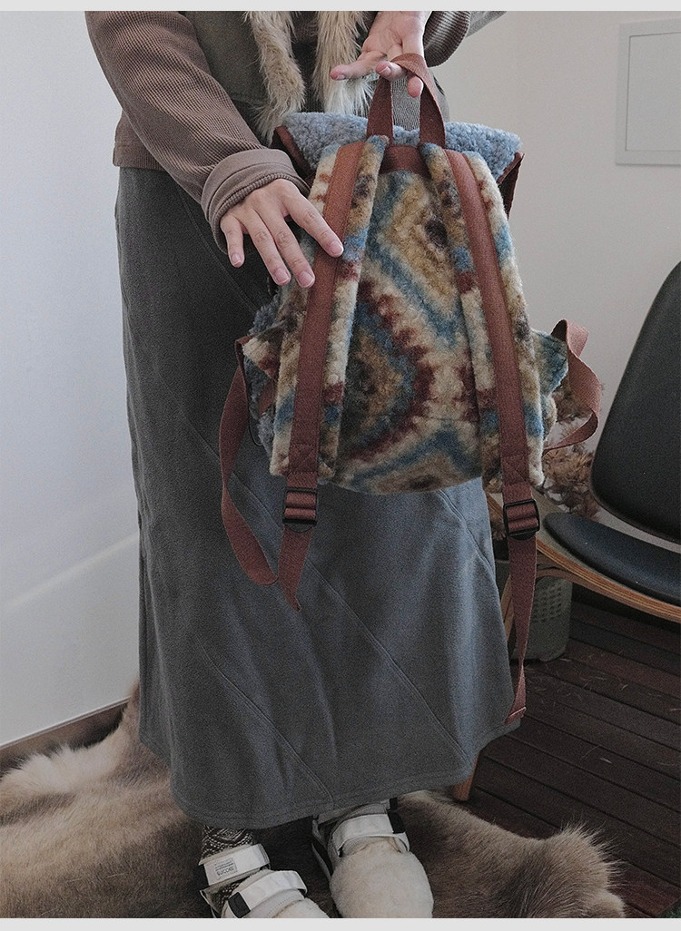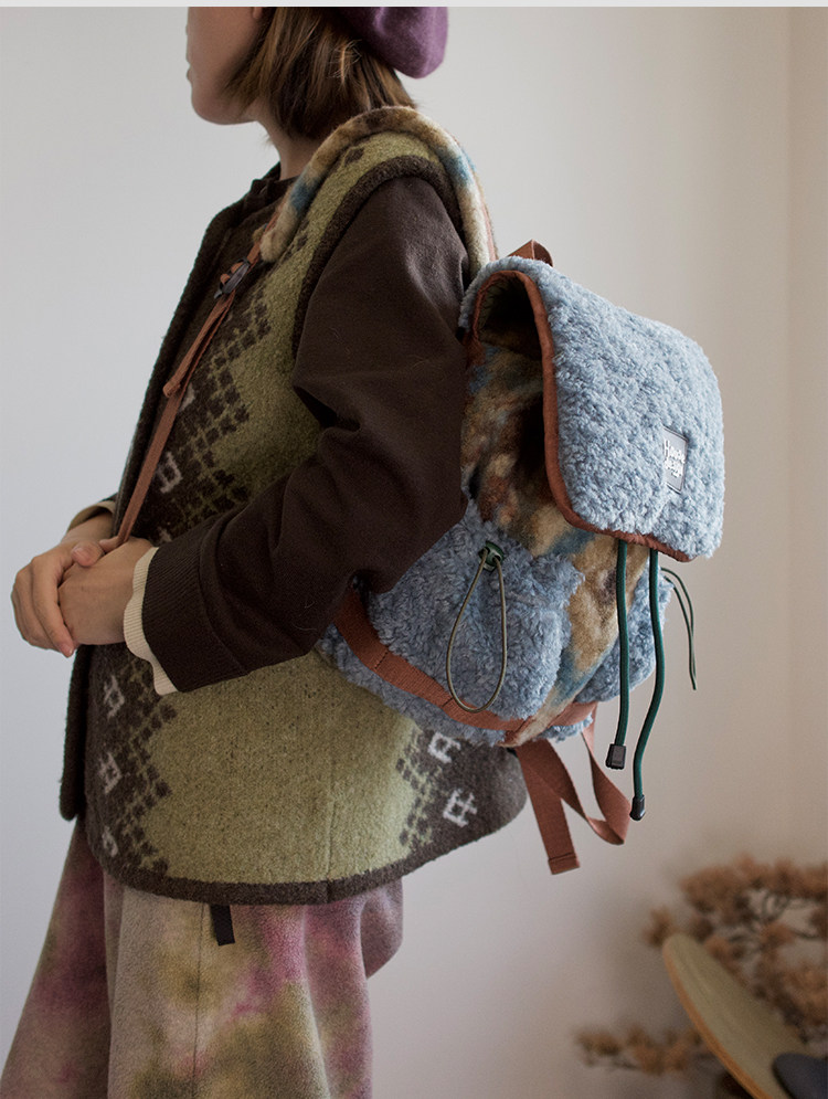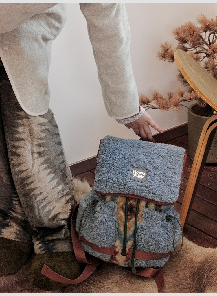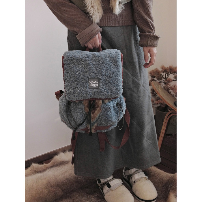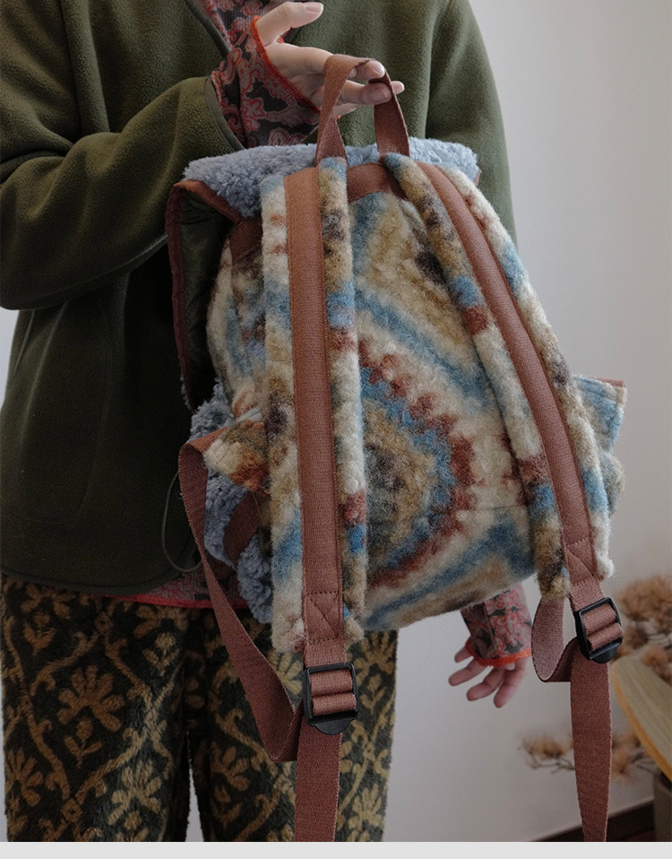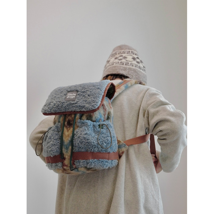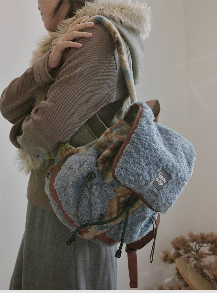housedesign原創2025冬季毛絨復古大容量後後背包小衆通勤時尚雙肩包