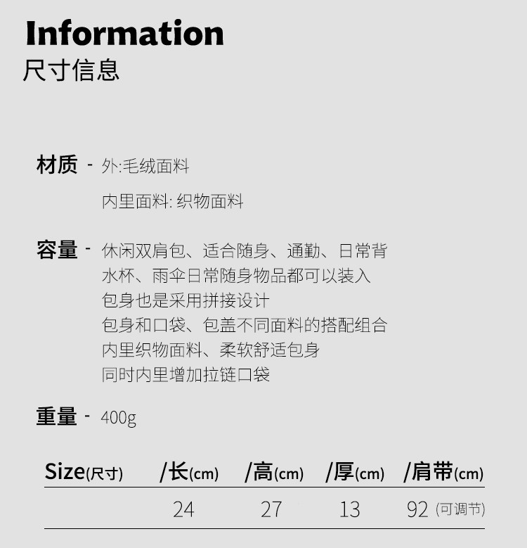 | 箱包硬度 | 軟 |