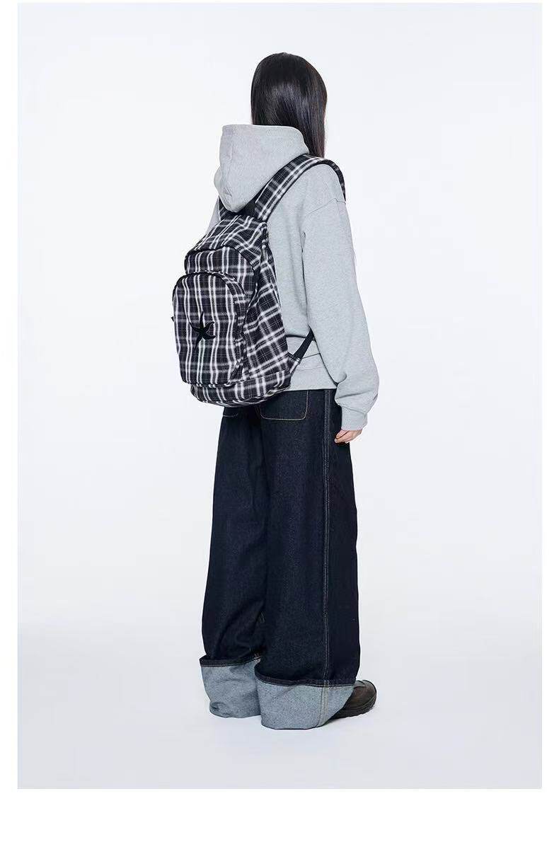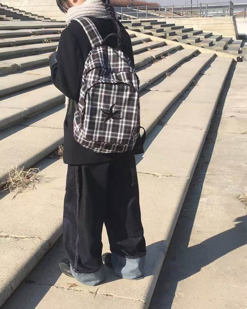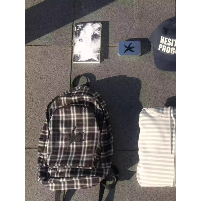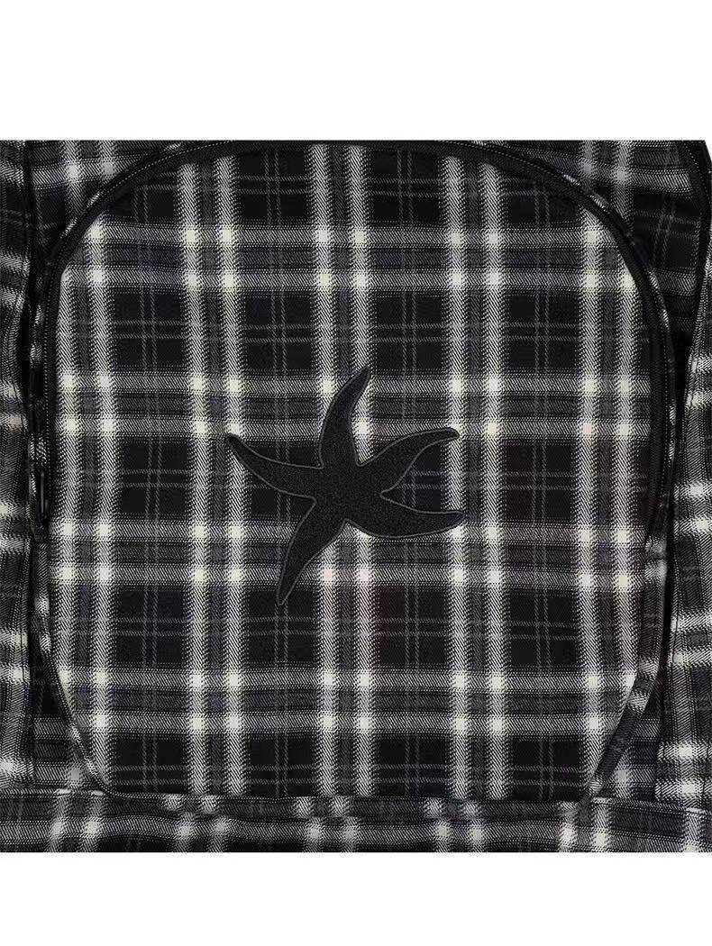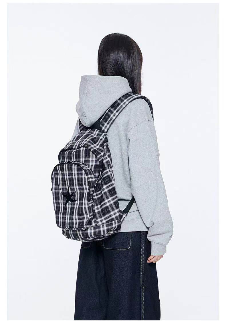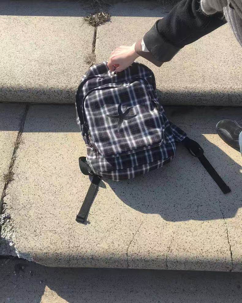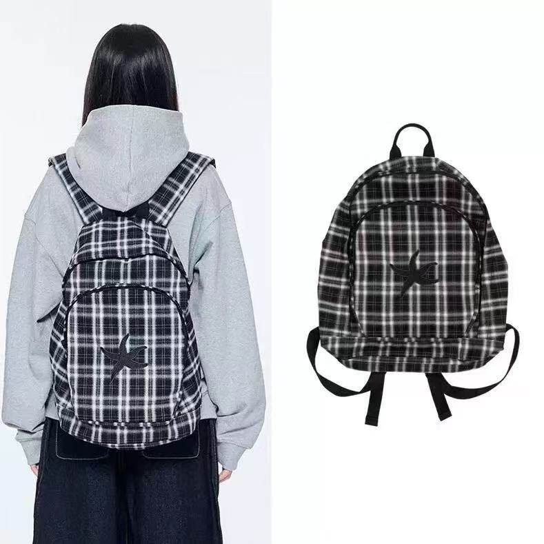 韓國25春夏海星格子雙肩包明宰鉉同款後後背包復古星星學生書包大容量
