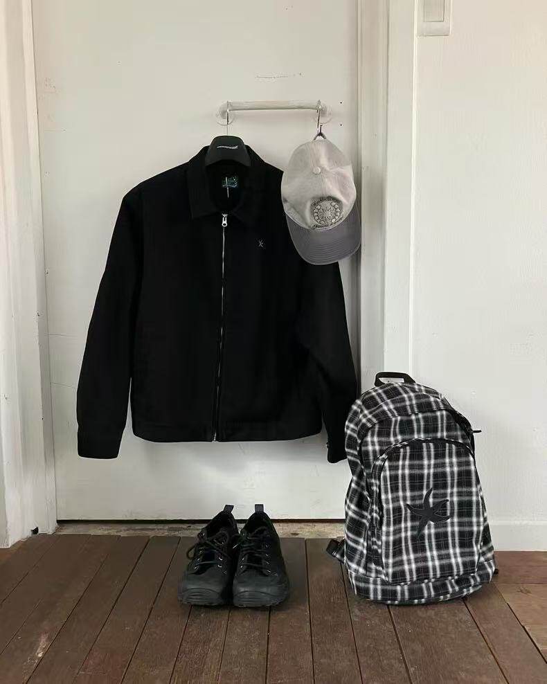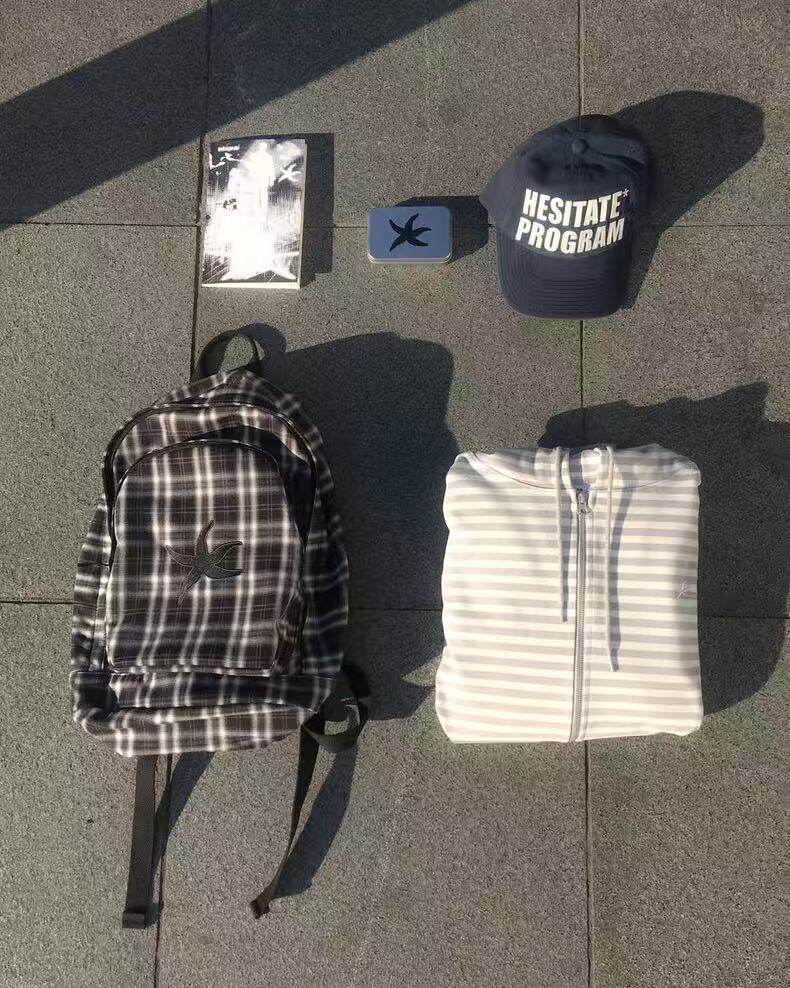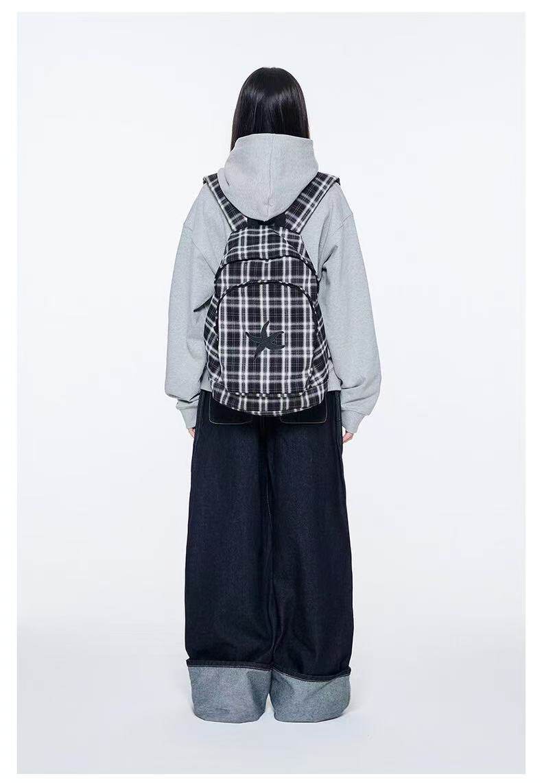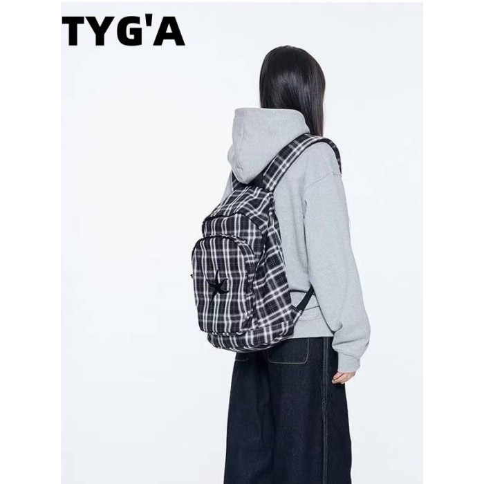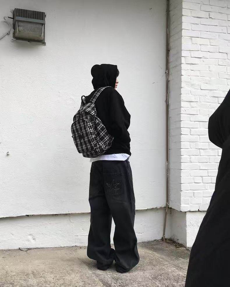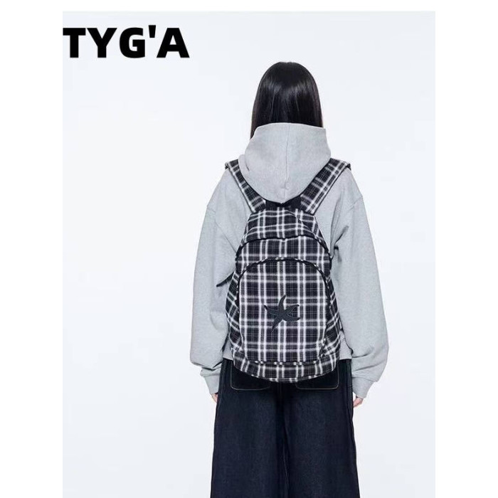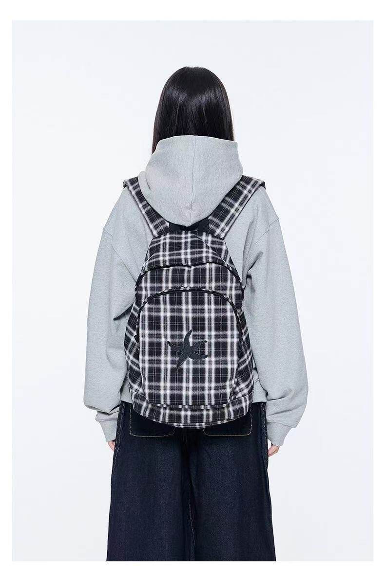 韓國25春夏海星格子雙肩包明宰鉉同款後後背包復古星星學生書包大容量
