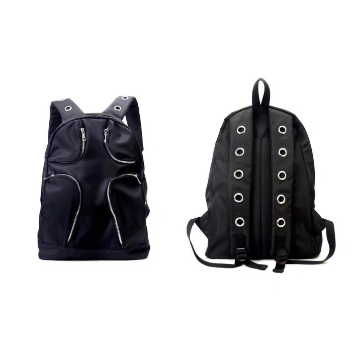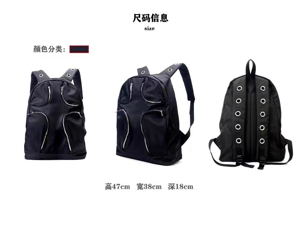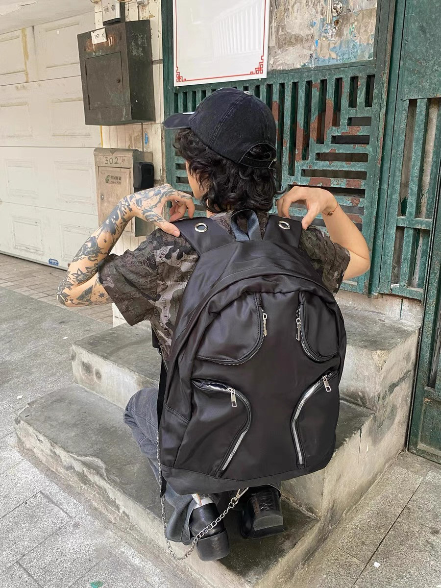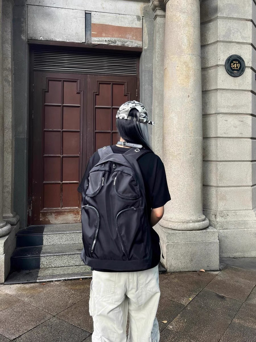 尼龍多口袋戰術大容量雙肩包Y2K千禧黑色異型後後背包女龐克大容量