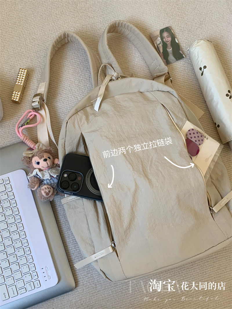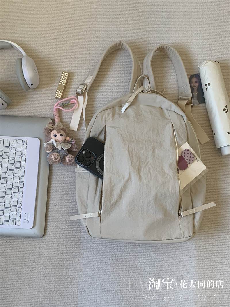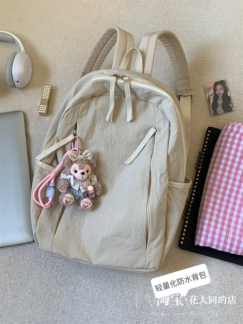 韓版新款文藝簡約輕量化防水雙肩包女大學生百搭書包休閒旅行後後背包