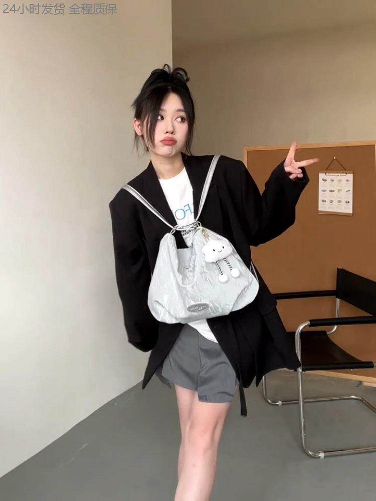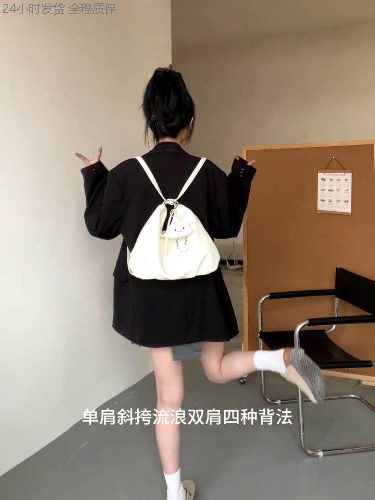 女款2025新款後後背包簡約森系通勤托特包質感學生課雙肩單肩斜背手提