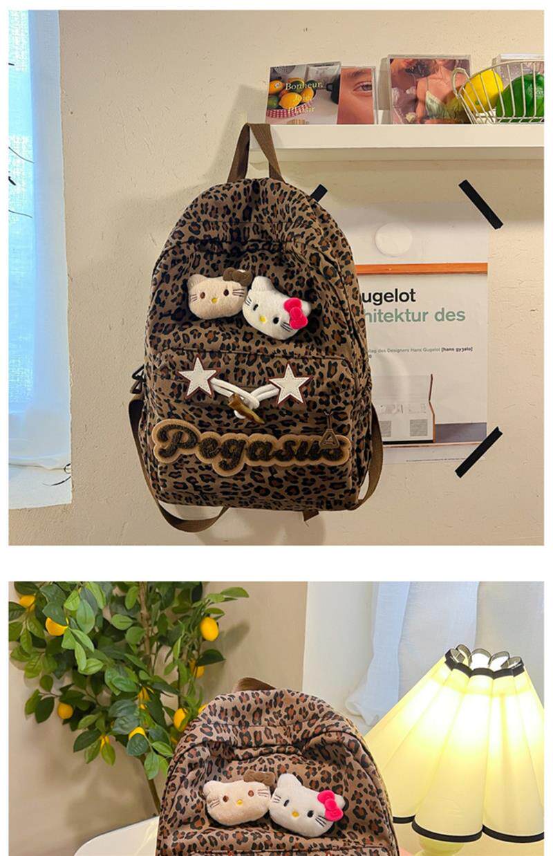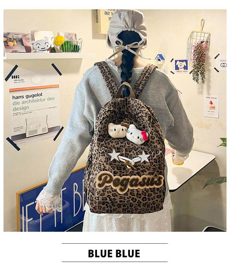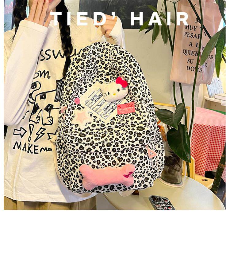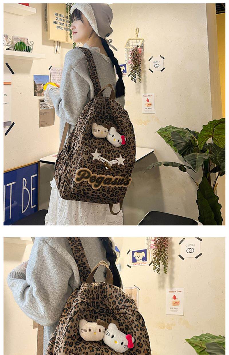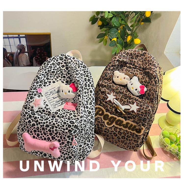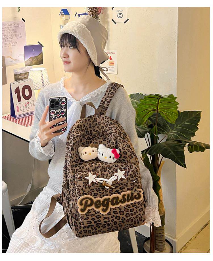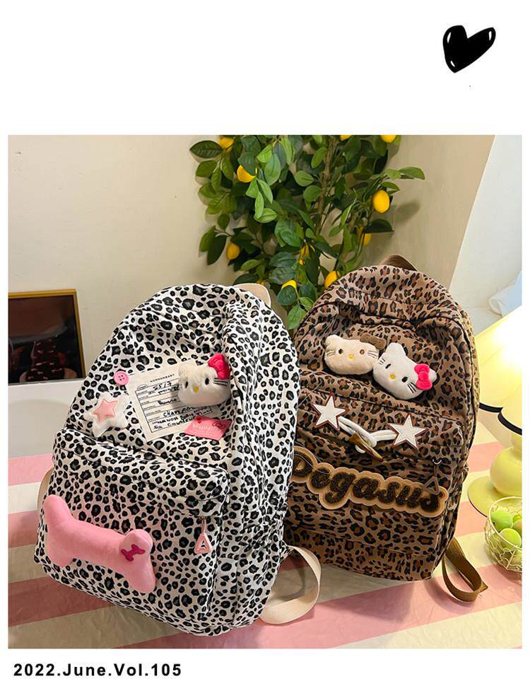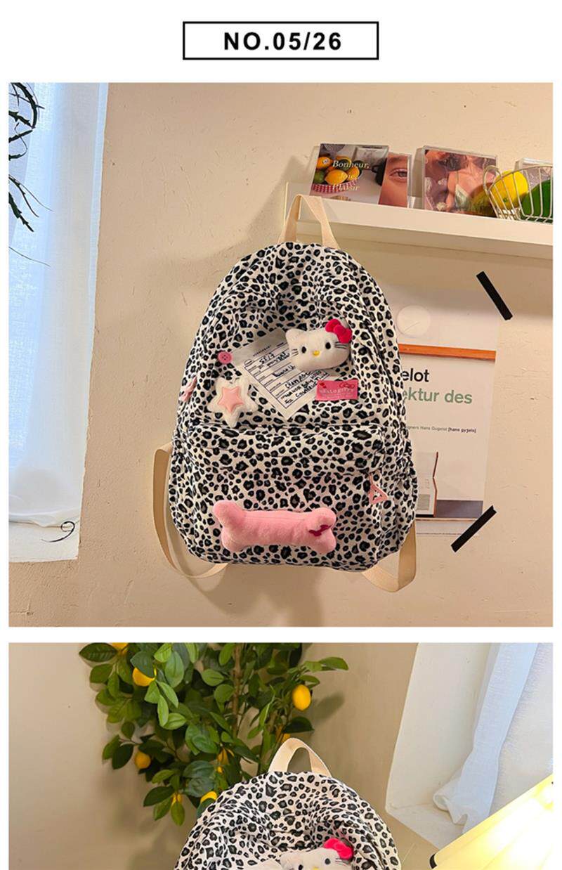 日本原創小衆書包復古秋冬KT雙肩可愛豹紋Y2K大容量後後背包毛絨後後背包