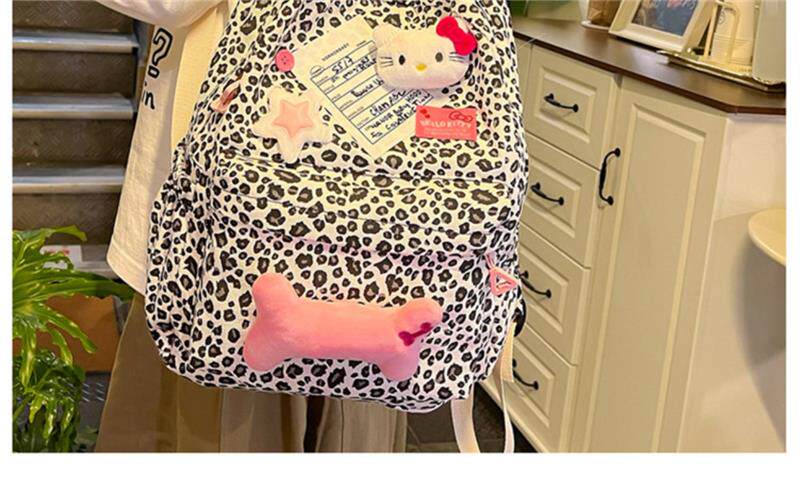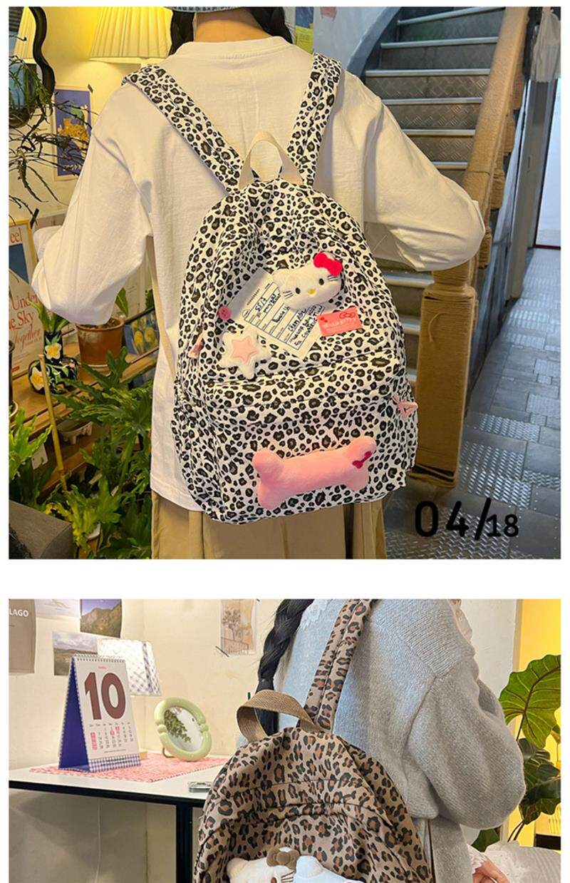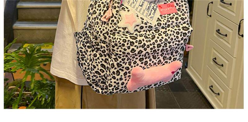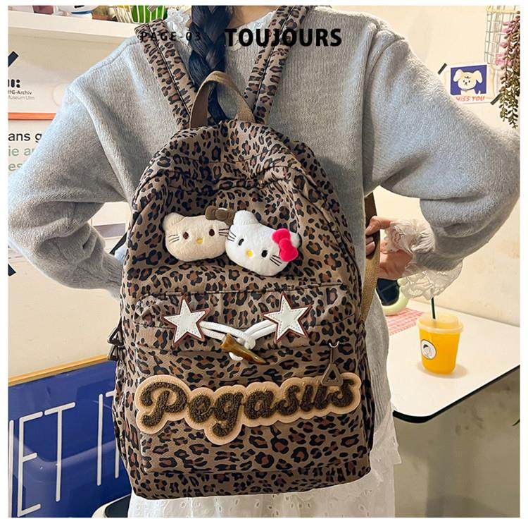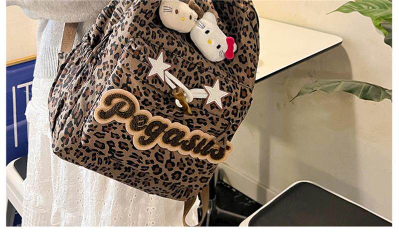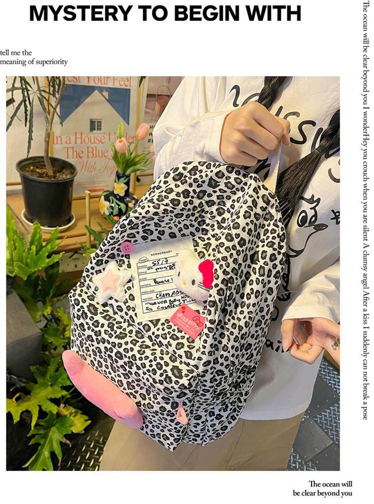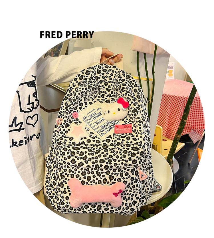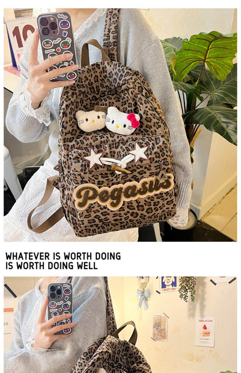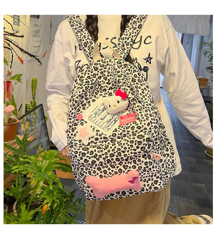 日本原創小衆書包復古秋冬KT雙肩可愛豹紋Y2K大容量後後背包毛絨後後背包