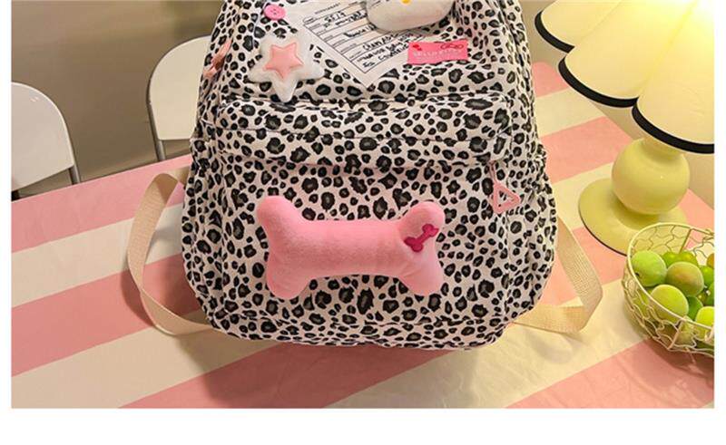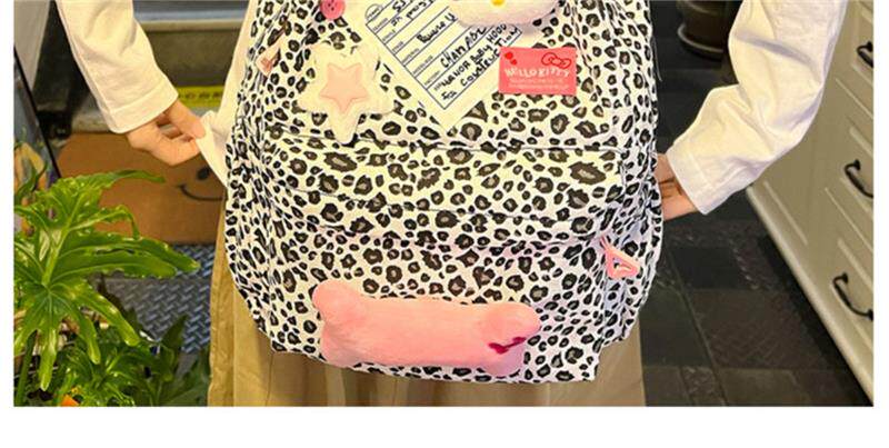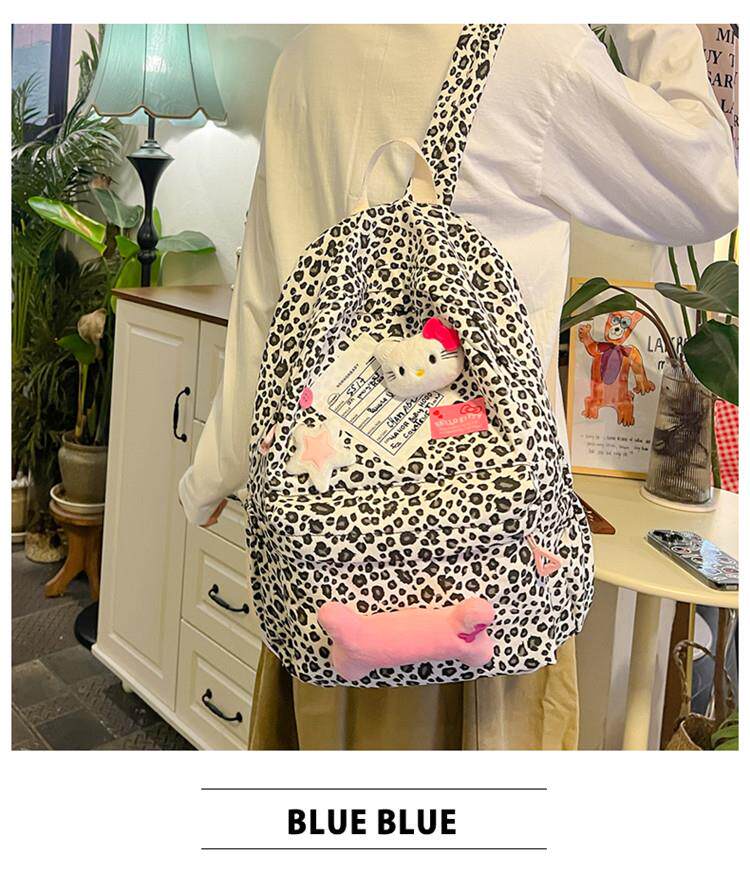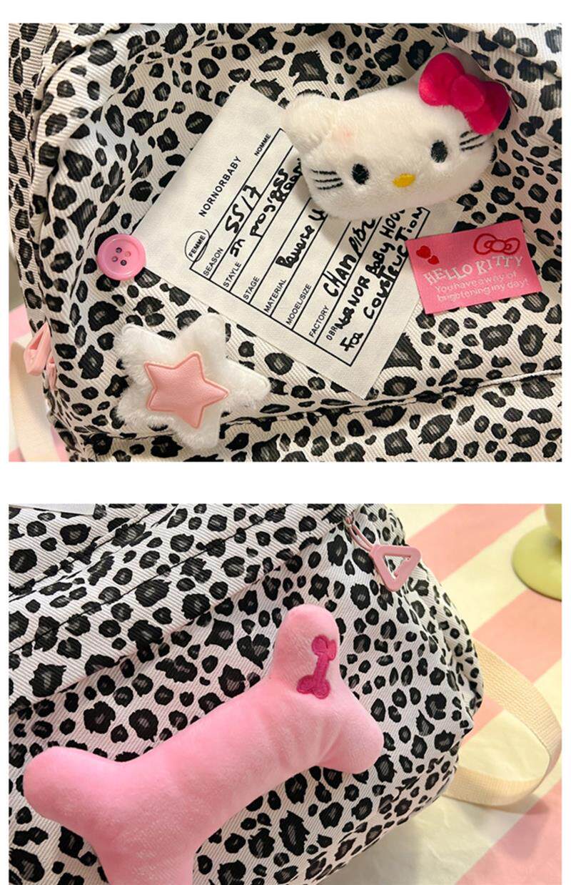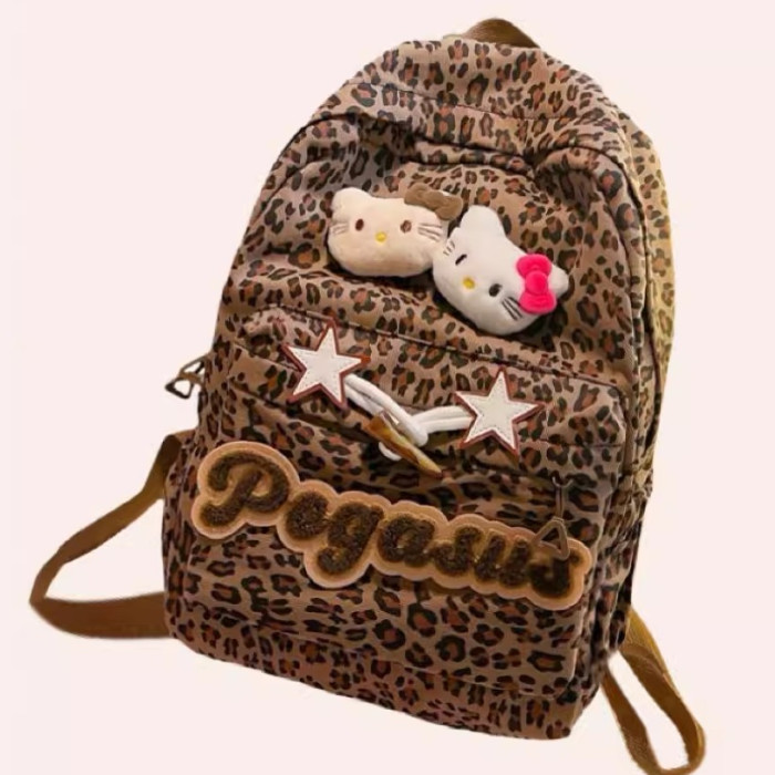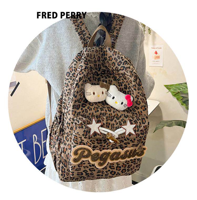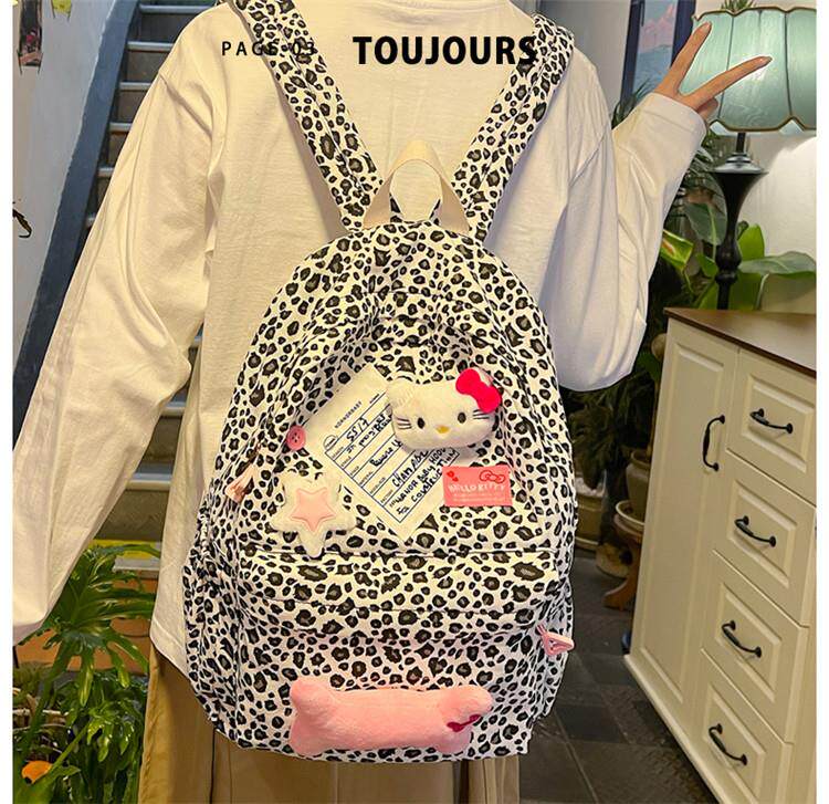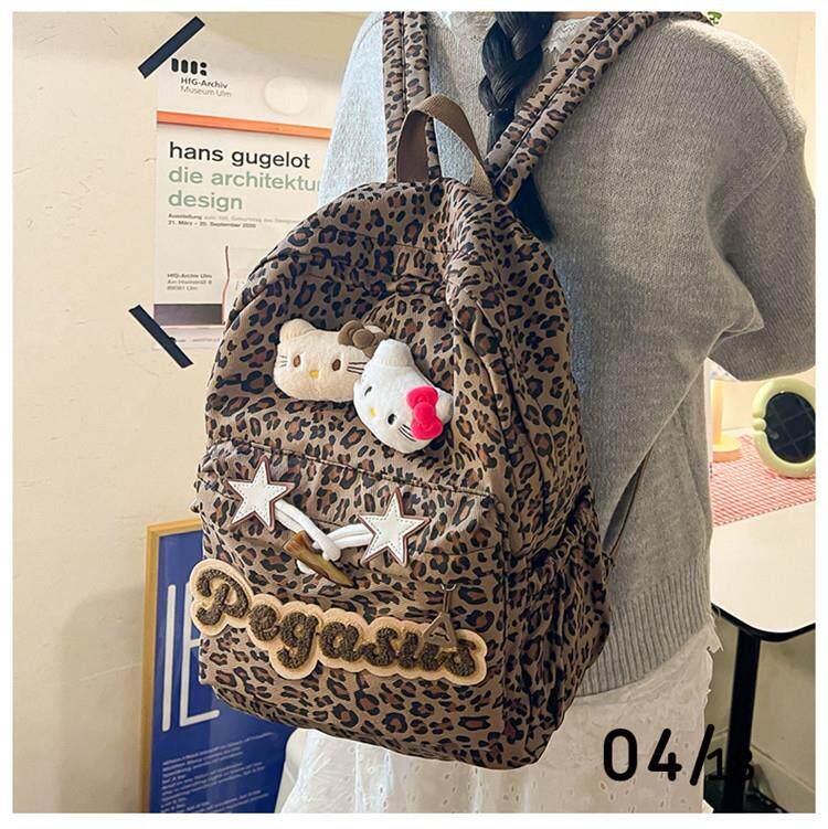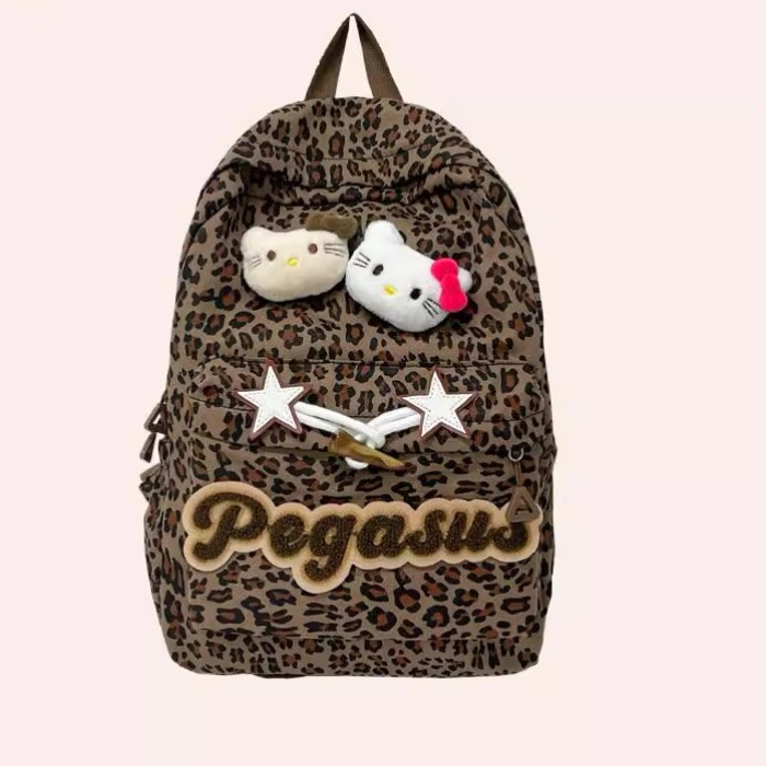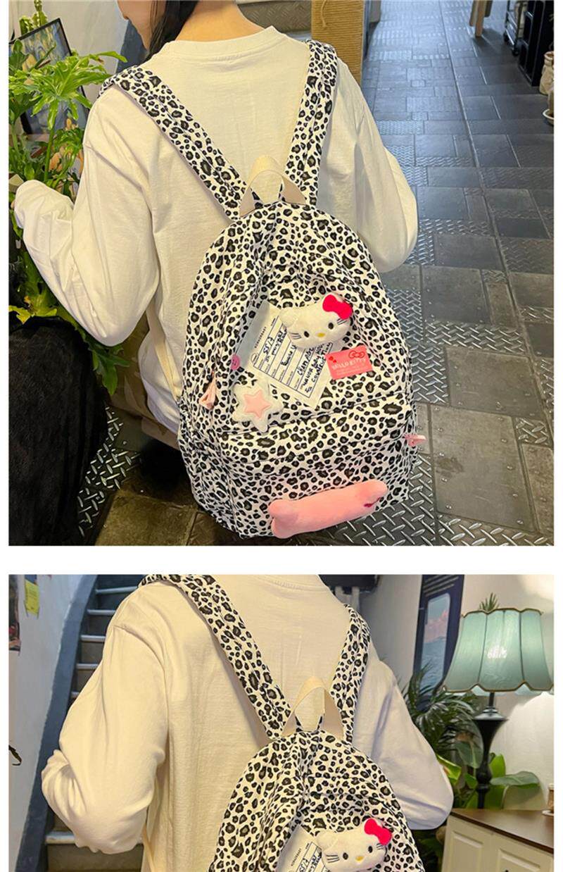 日本原創小衆書包復古秋冬KT雙肩可愛豹紋Y2K大容量後後背包毛絨後後背包