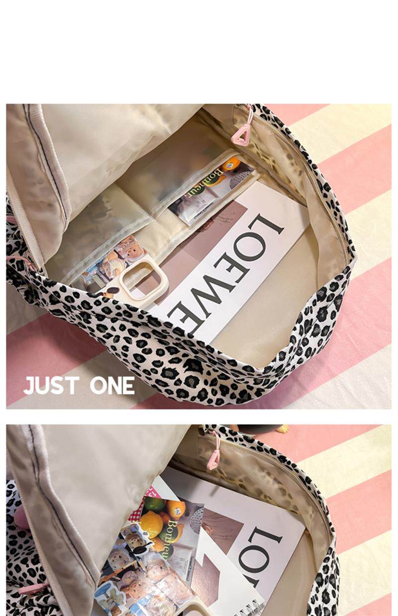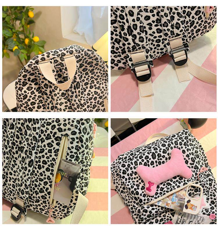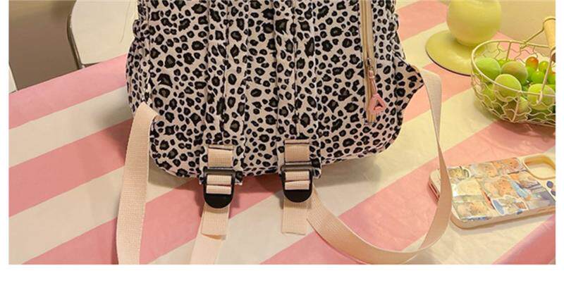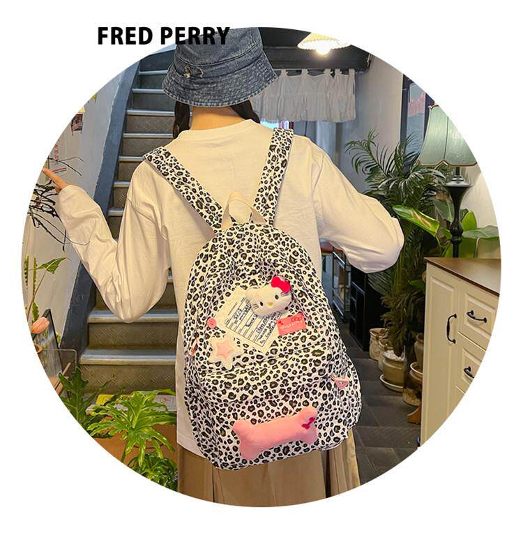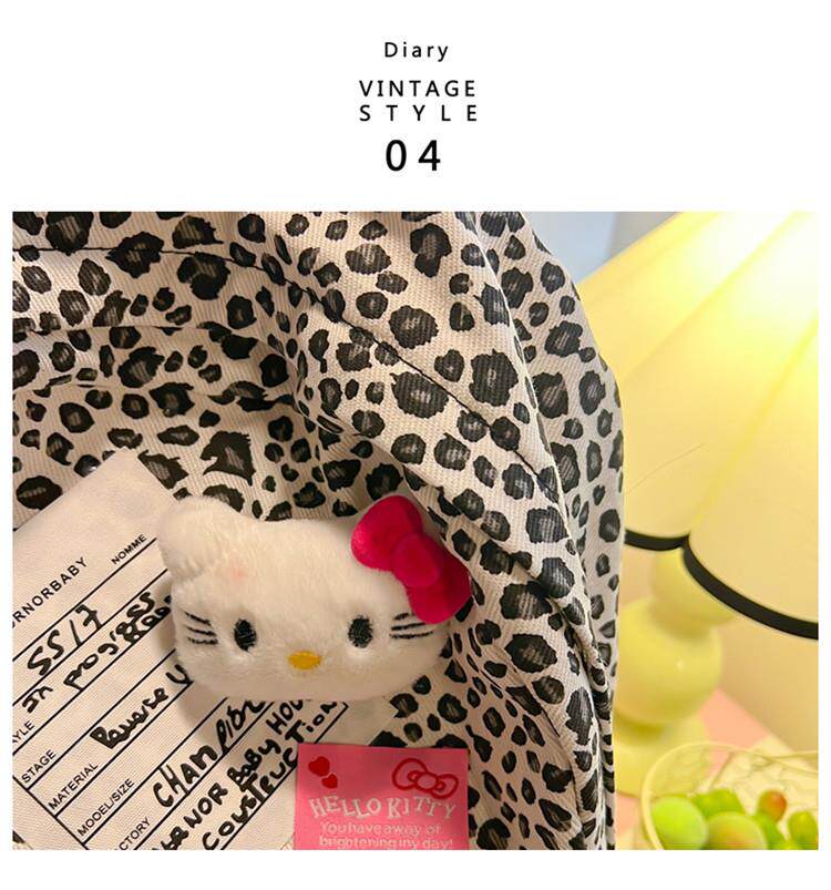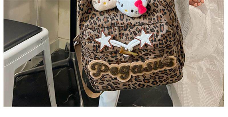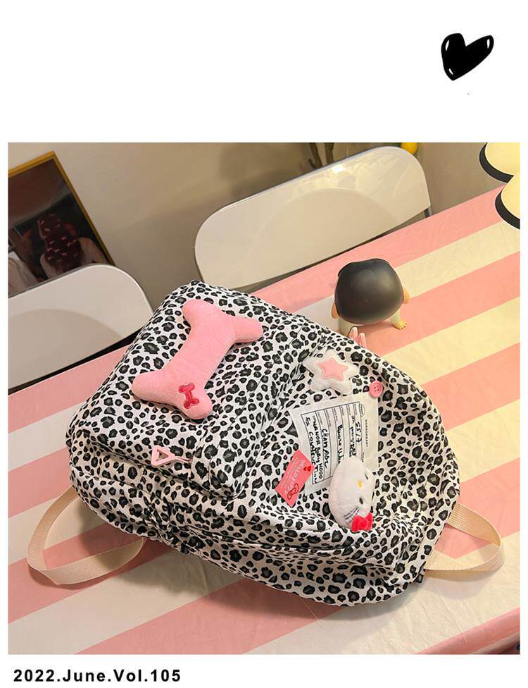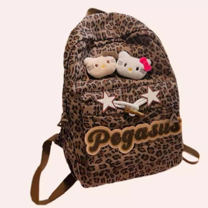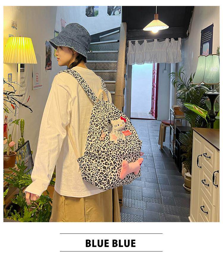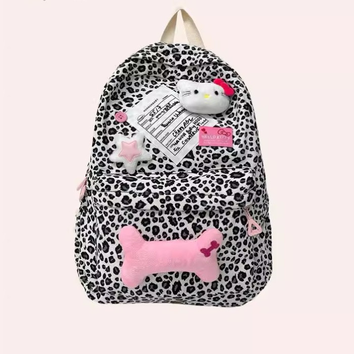 日本原創小衆書包復古秋冬KT雙肩可愛豹紋Y2K大容量後後背包毛絨後後背包