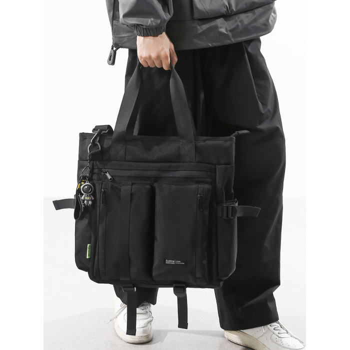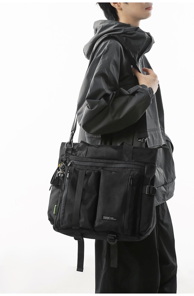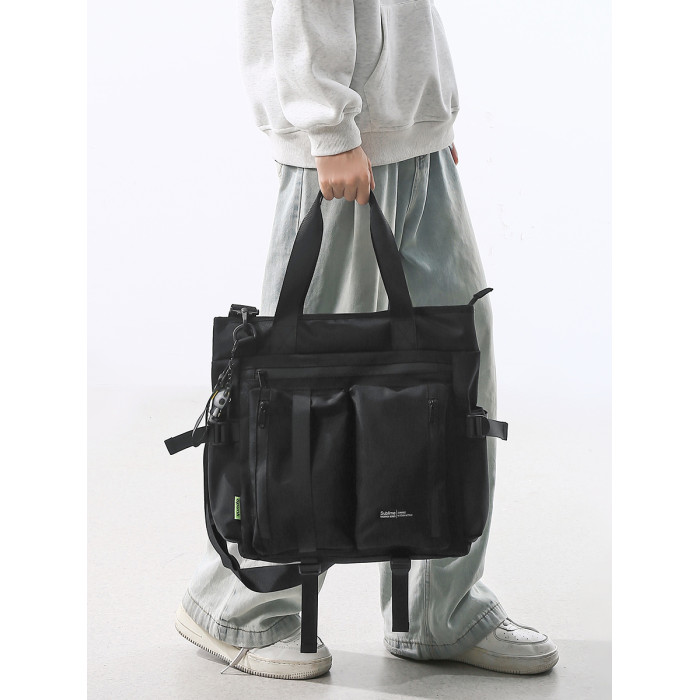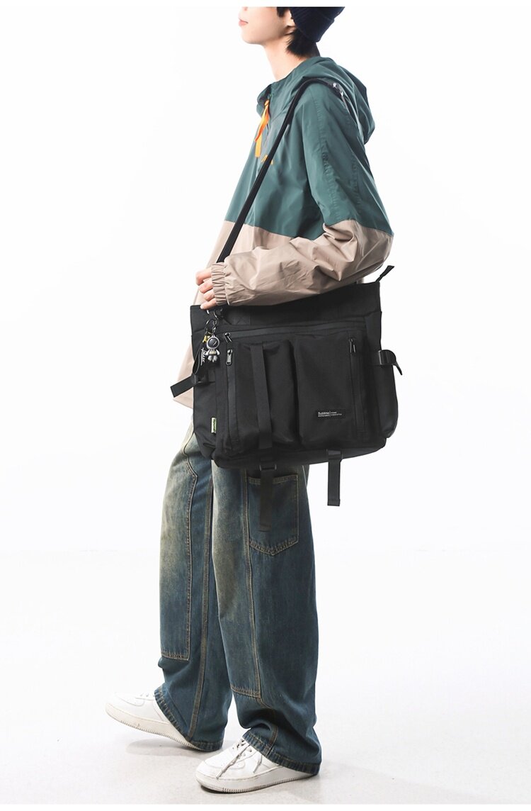 斜後後背包男生初中高中補課包手提手拎補習上課包工裝潮牌單肩後後背包男