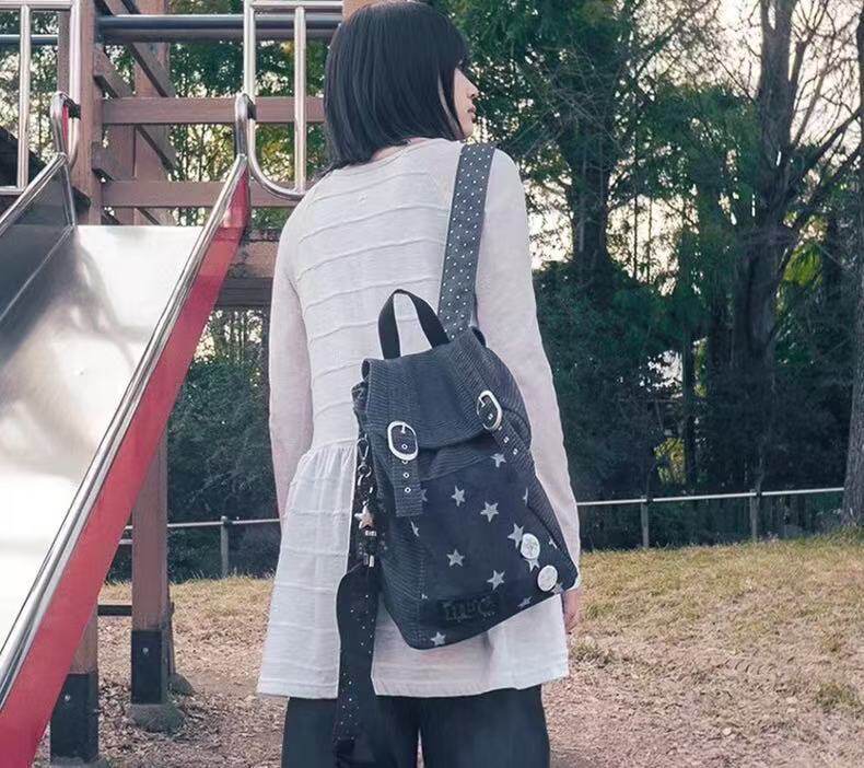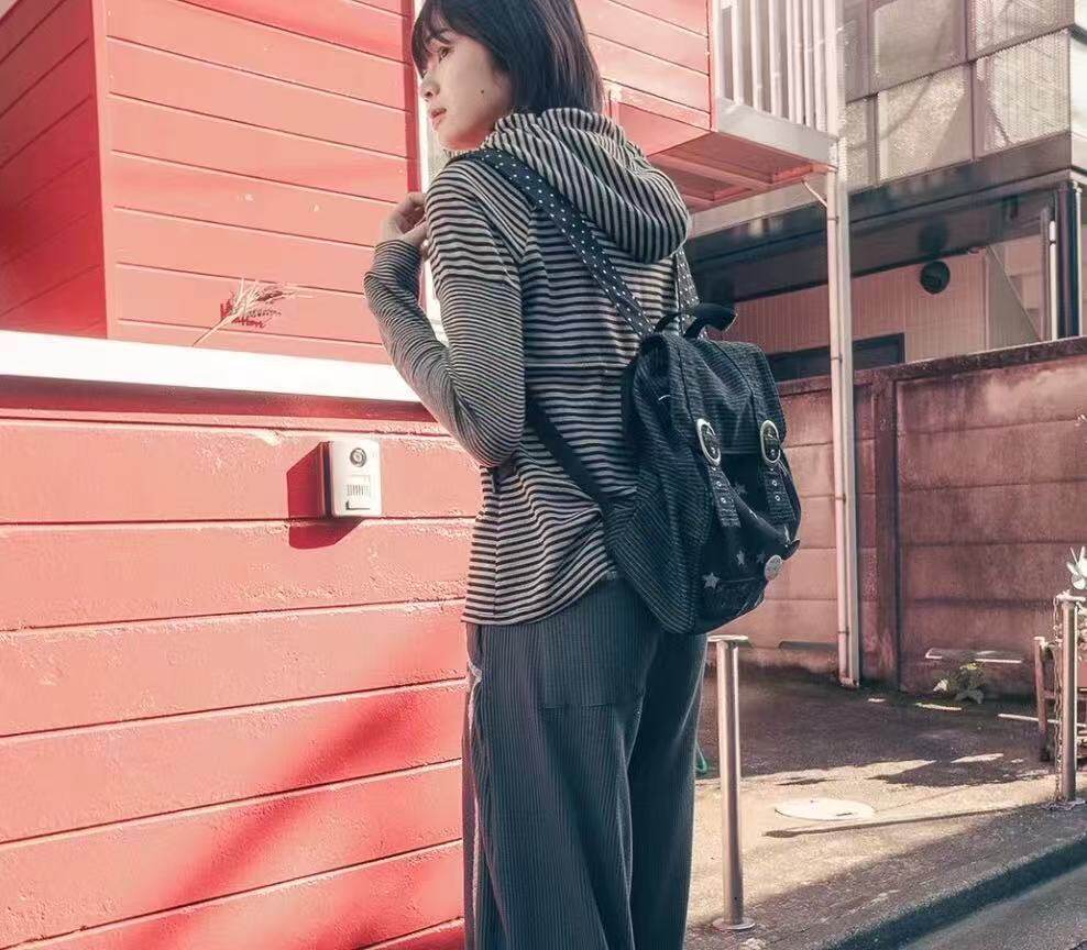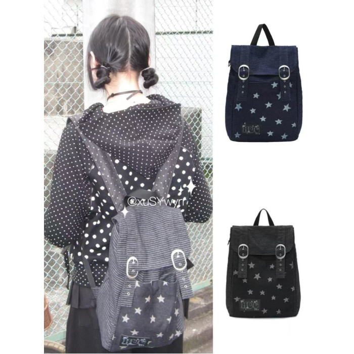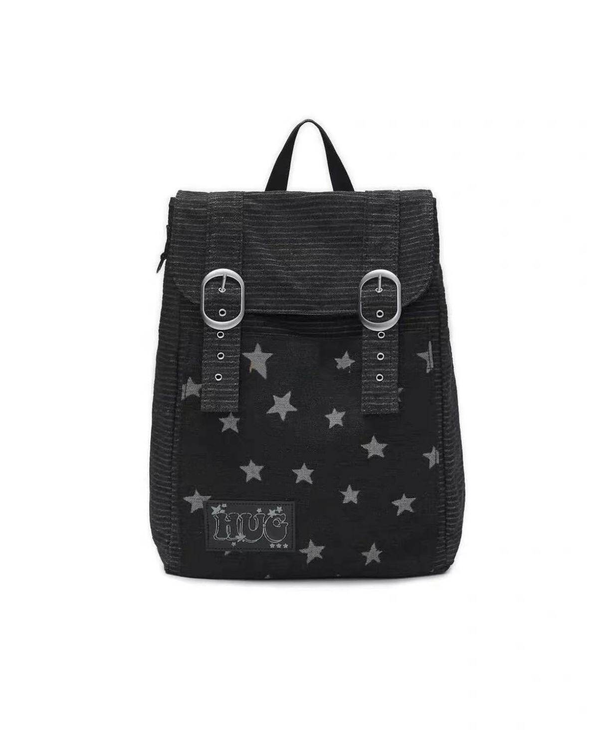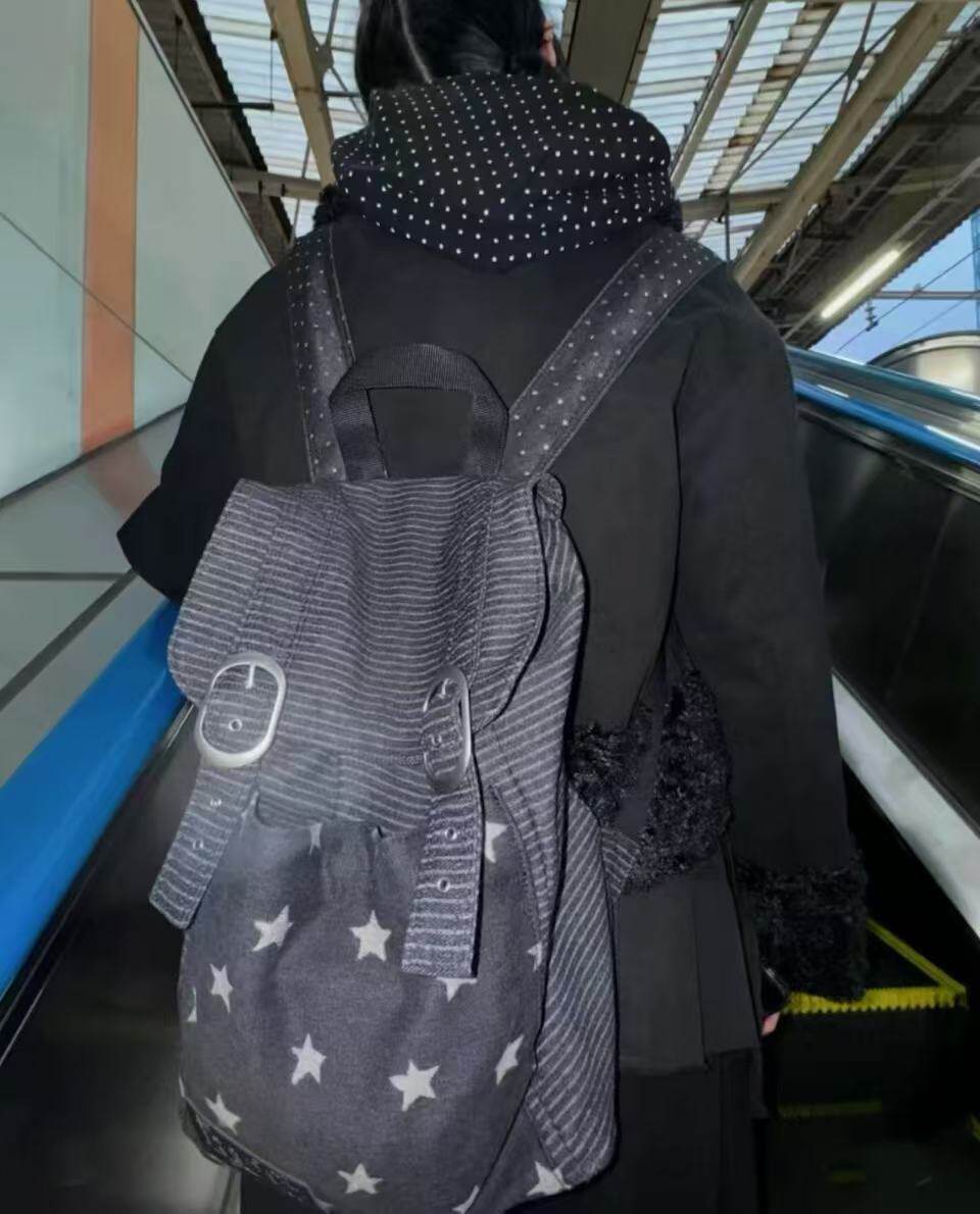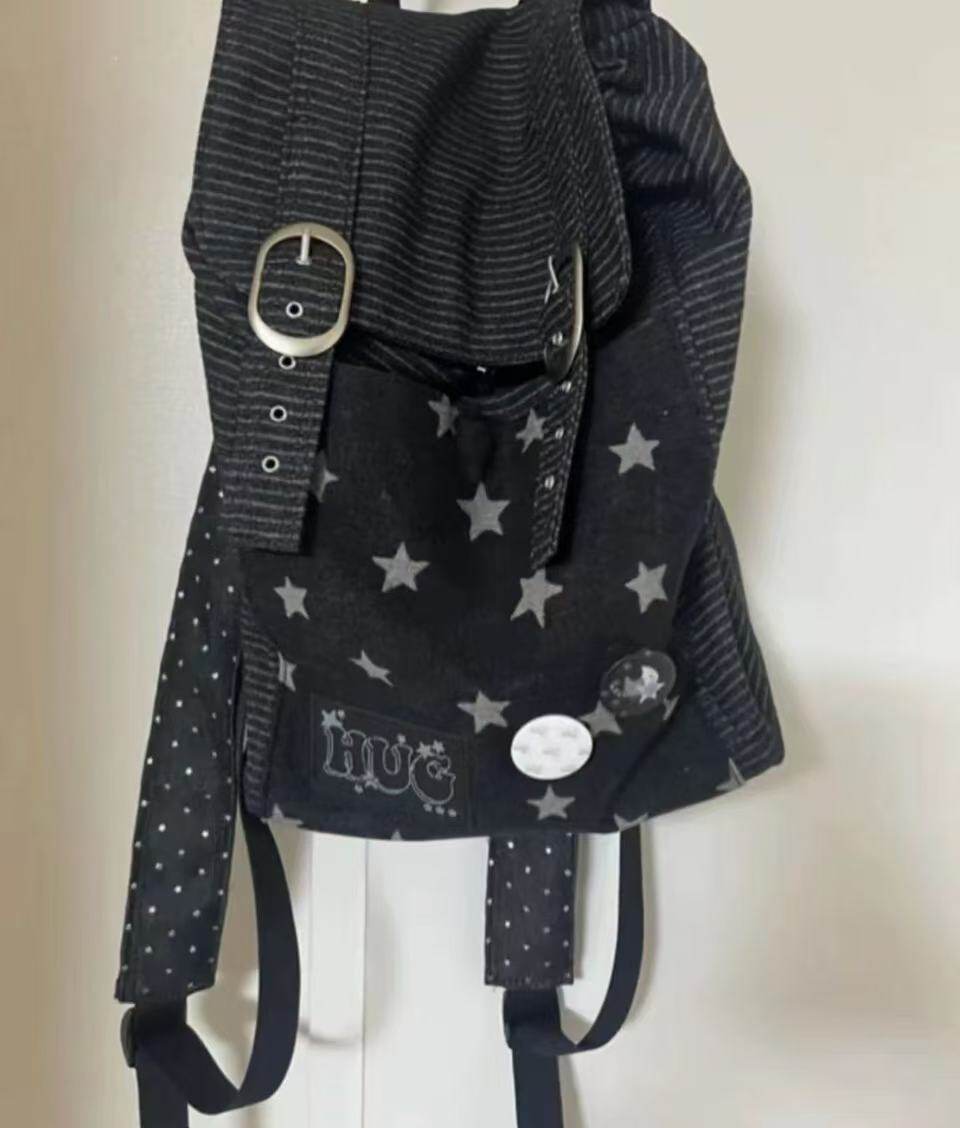 hugyourskin韓國小衆女包25春Y2K波點條紋星星牛仔雙肩包書包後後背包