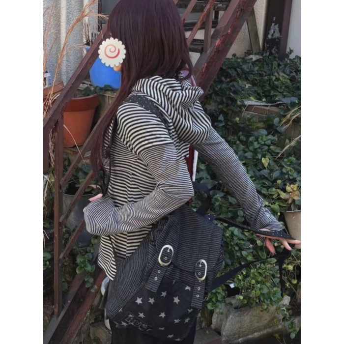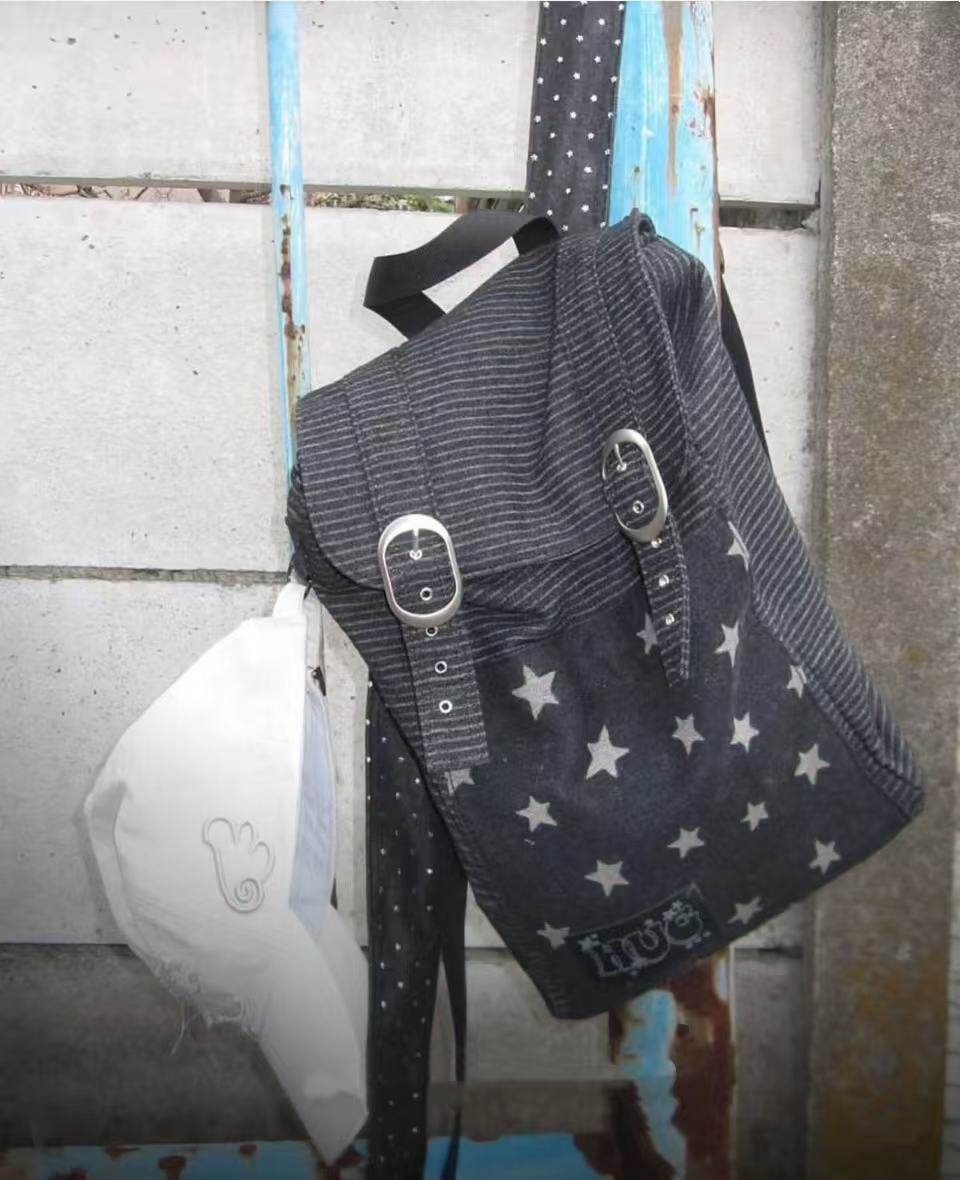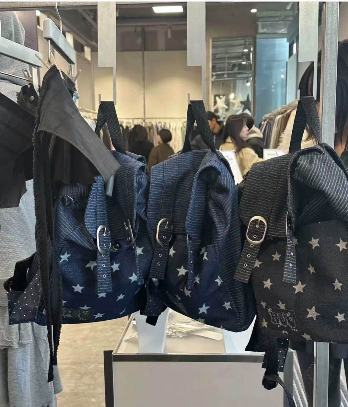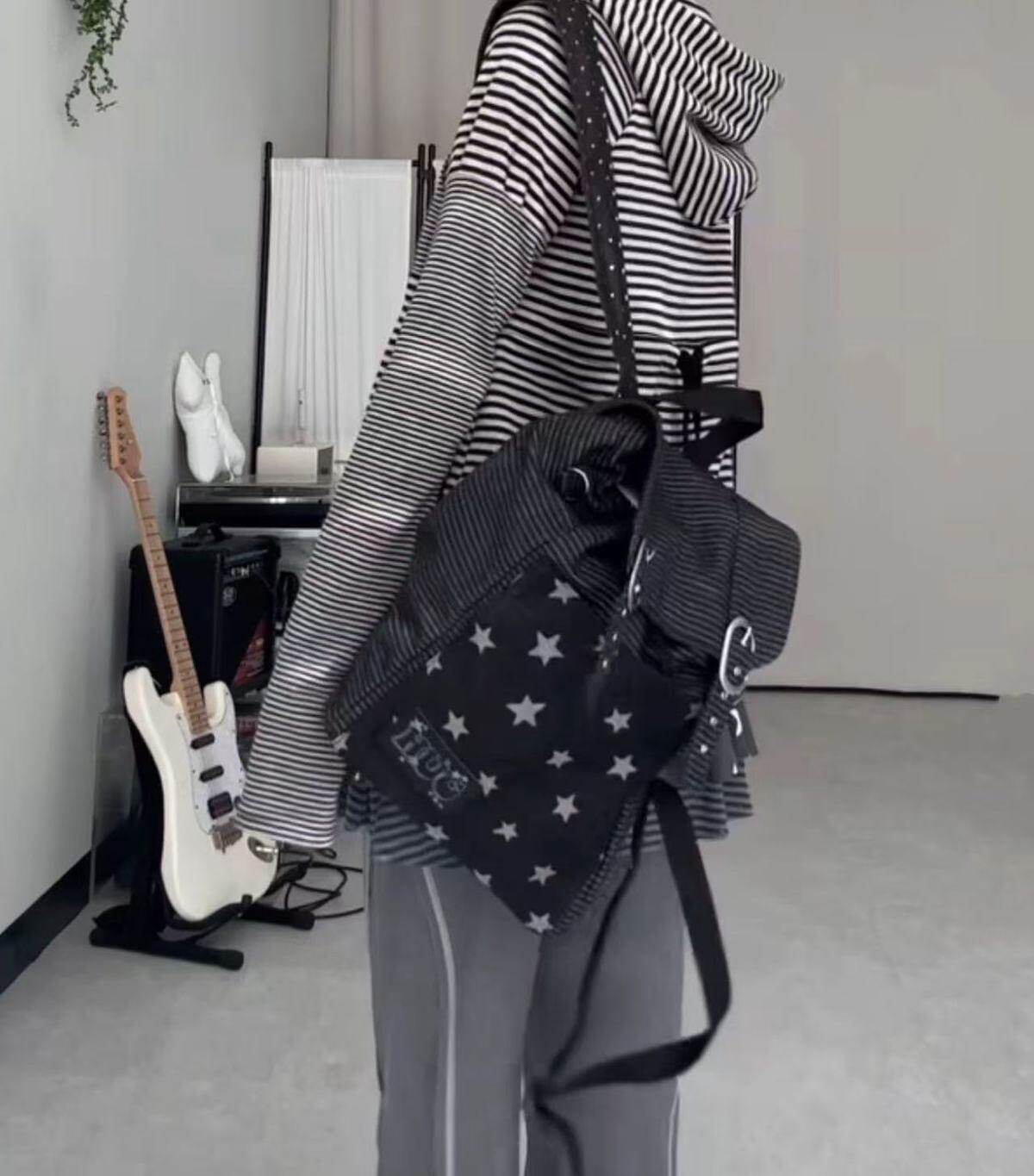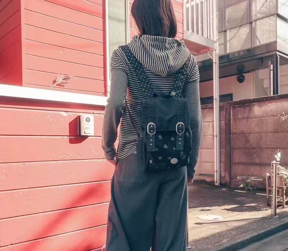 hugyourskin韓國小衆女包25春Y2K波點條紋星星牛仔雙肩包書包後後背包