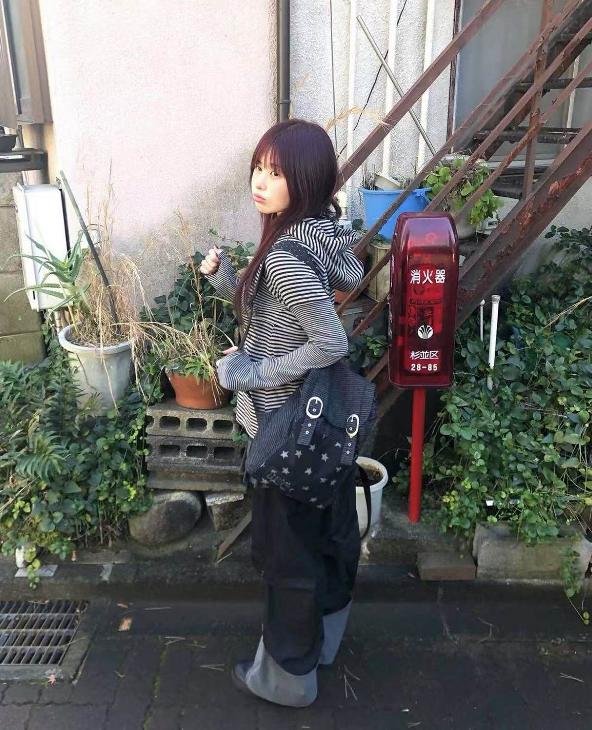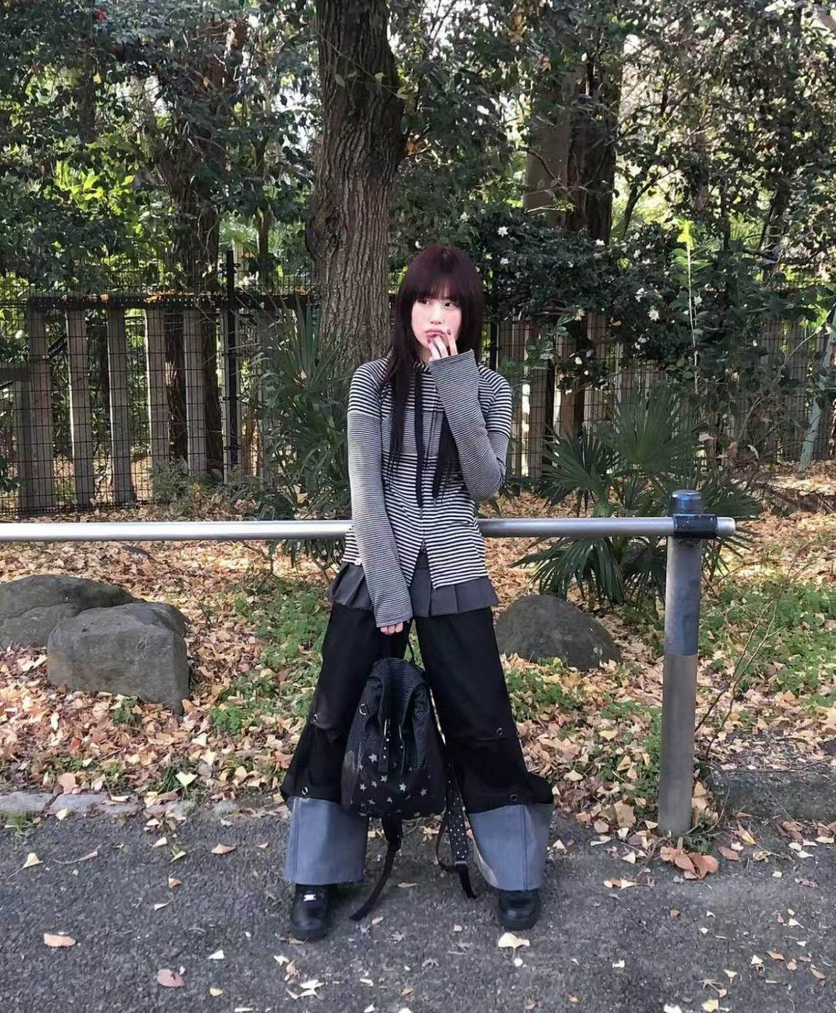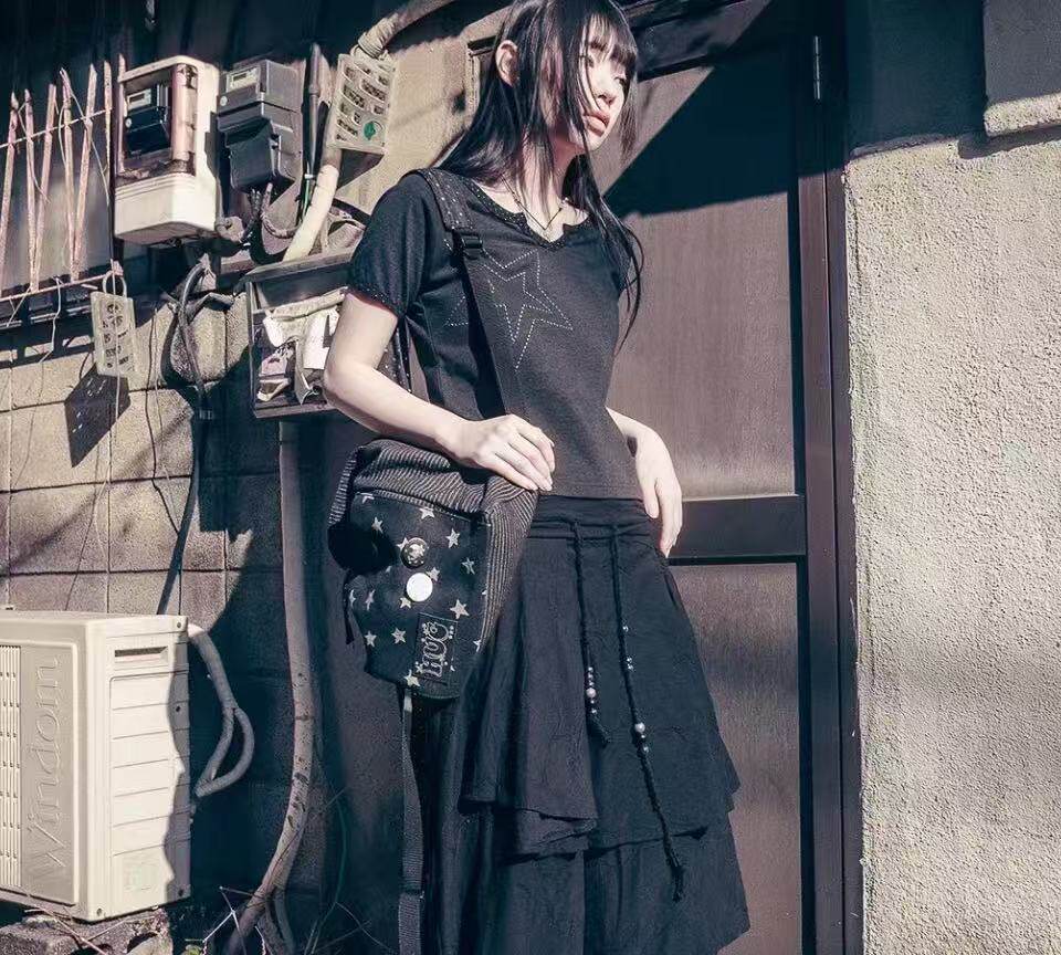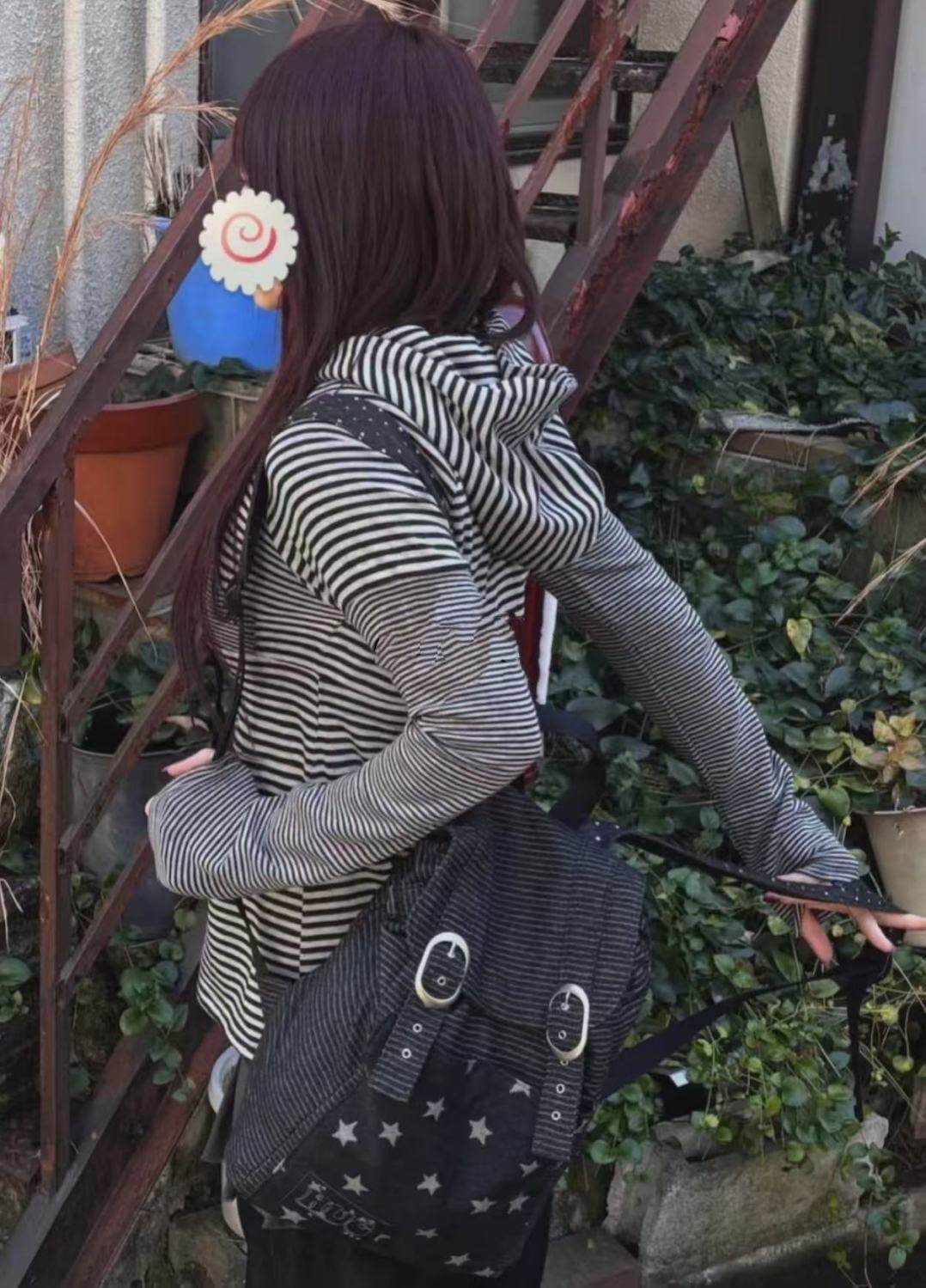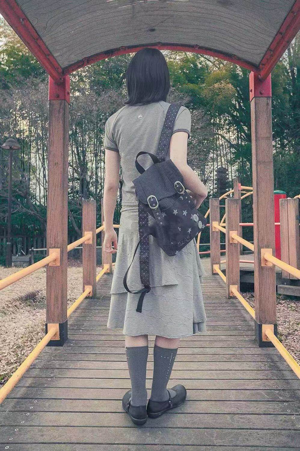 hugyourskin韓國小衆女包25春Y2K波點條紋星星牛仔雙肩包書包後後背包