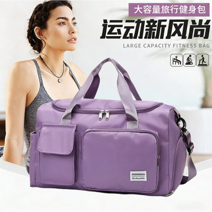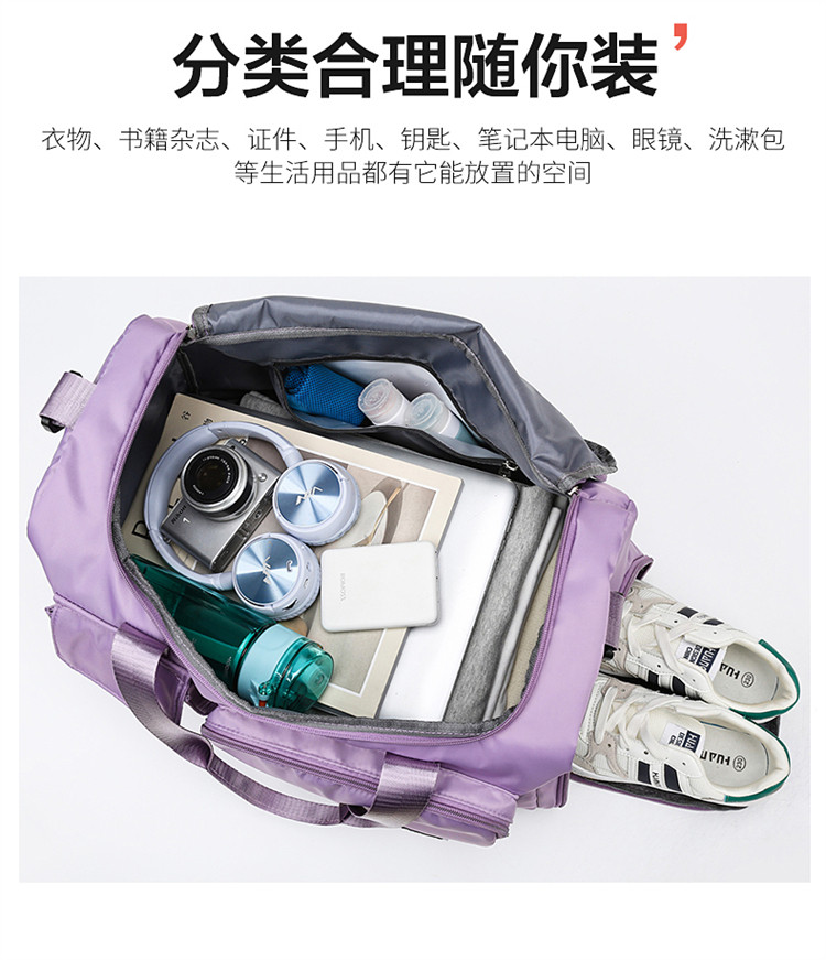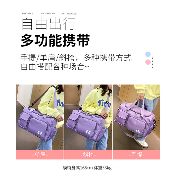 運動健身包女大容量乾濕分離防水斜後後背包輕便可掛拉桿短途旅行包