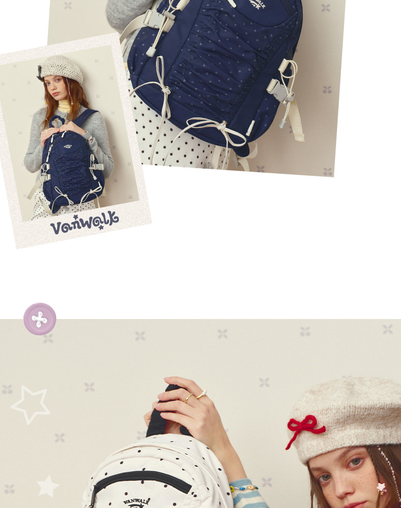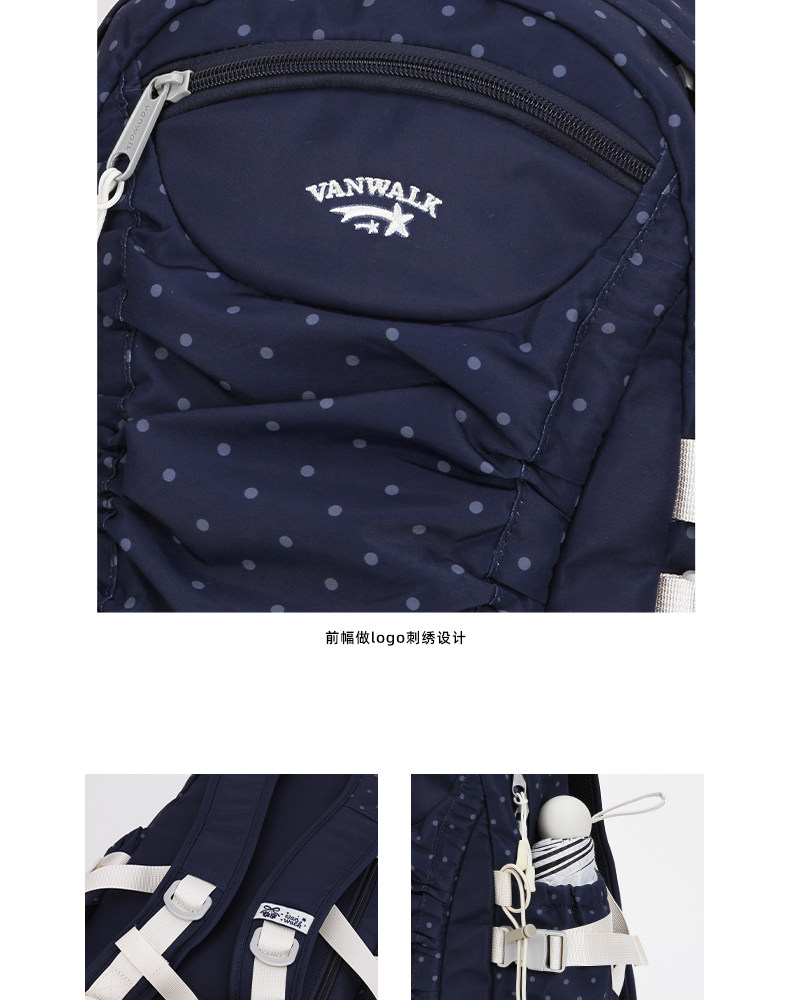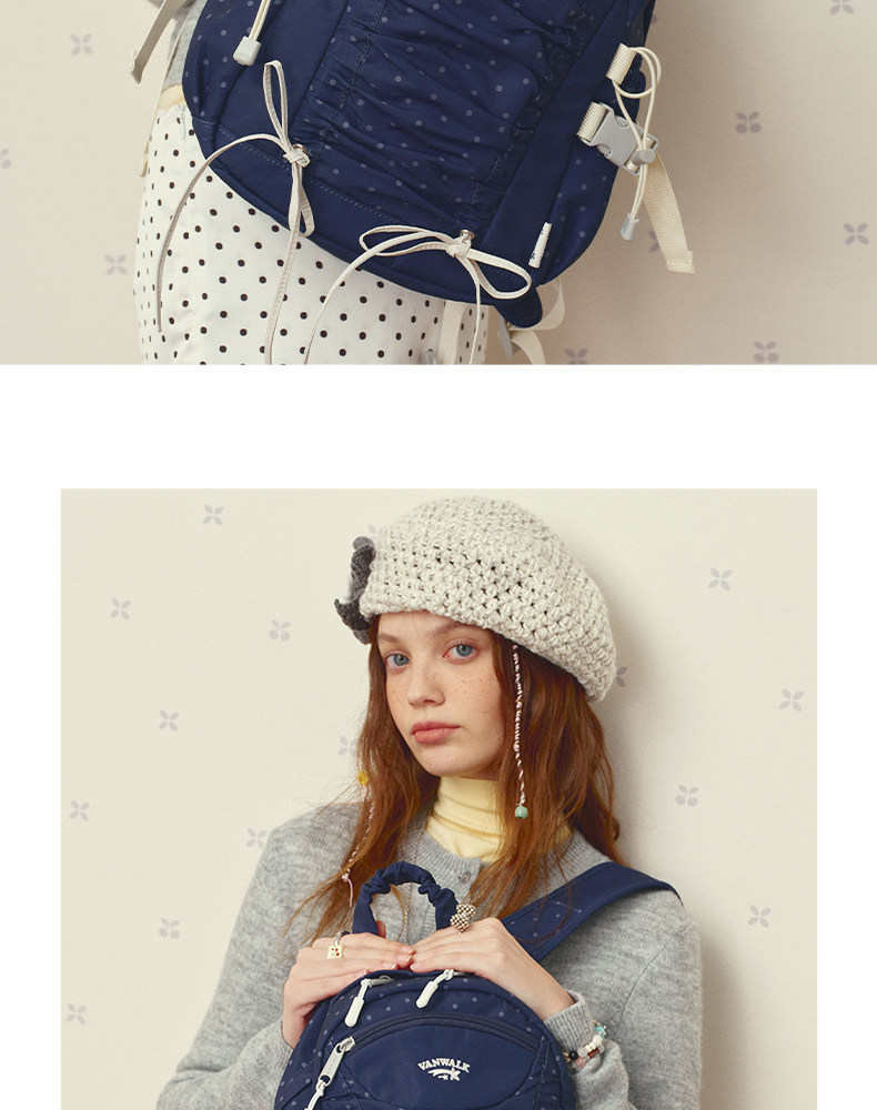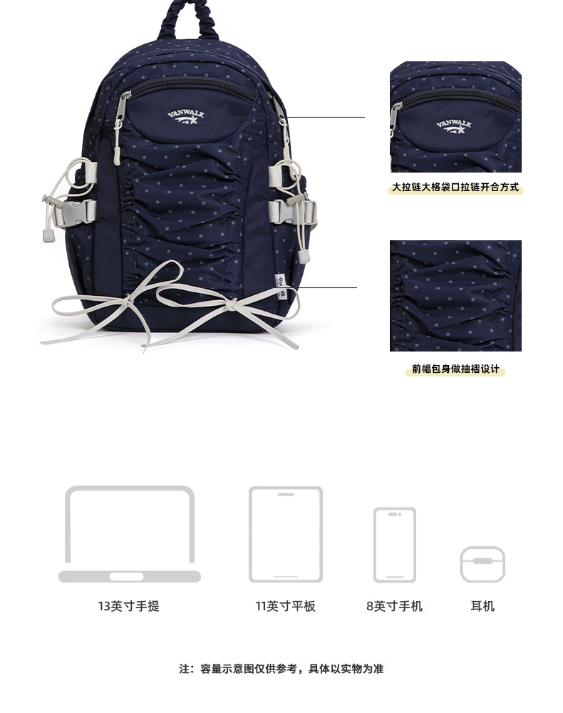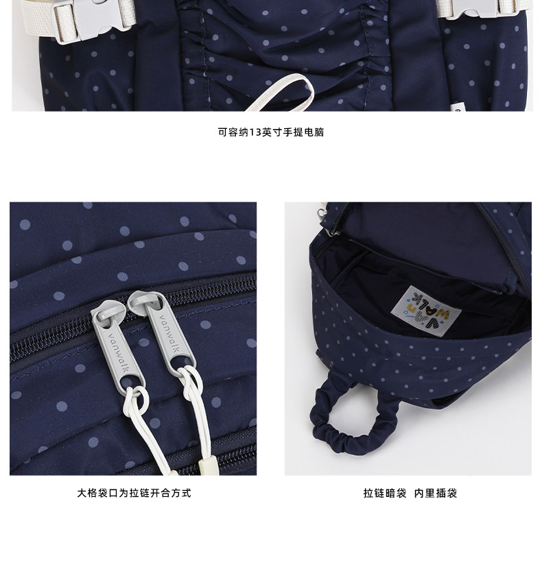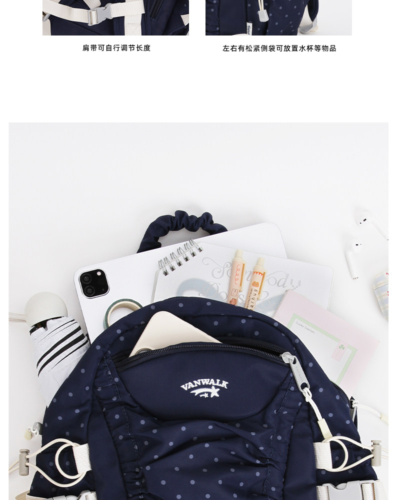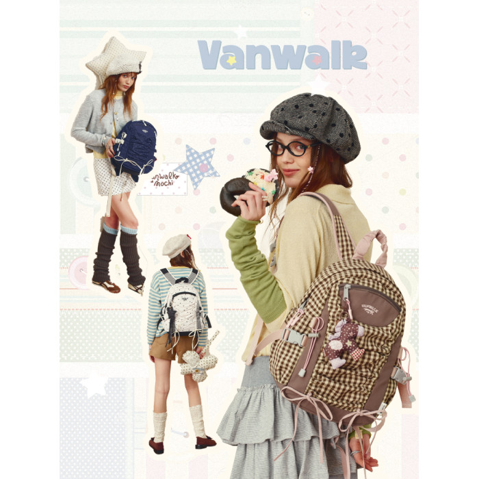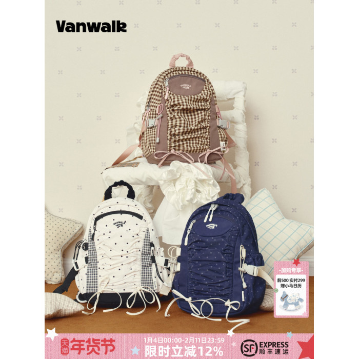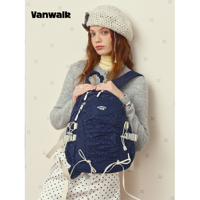 VANWALK糯米團 抽繩褶皺休閒雙肩包大容量女學生款通勤書包後後背包