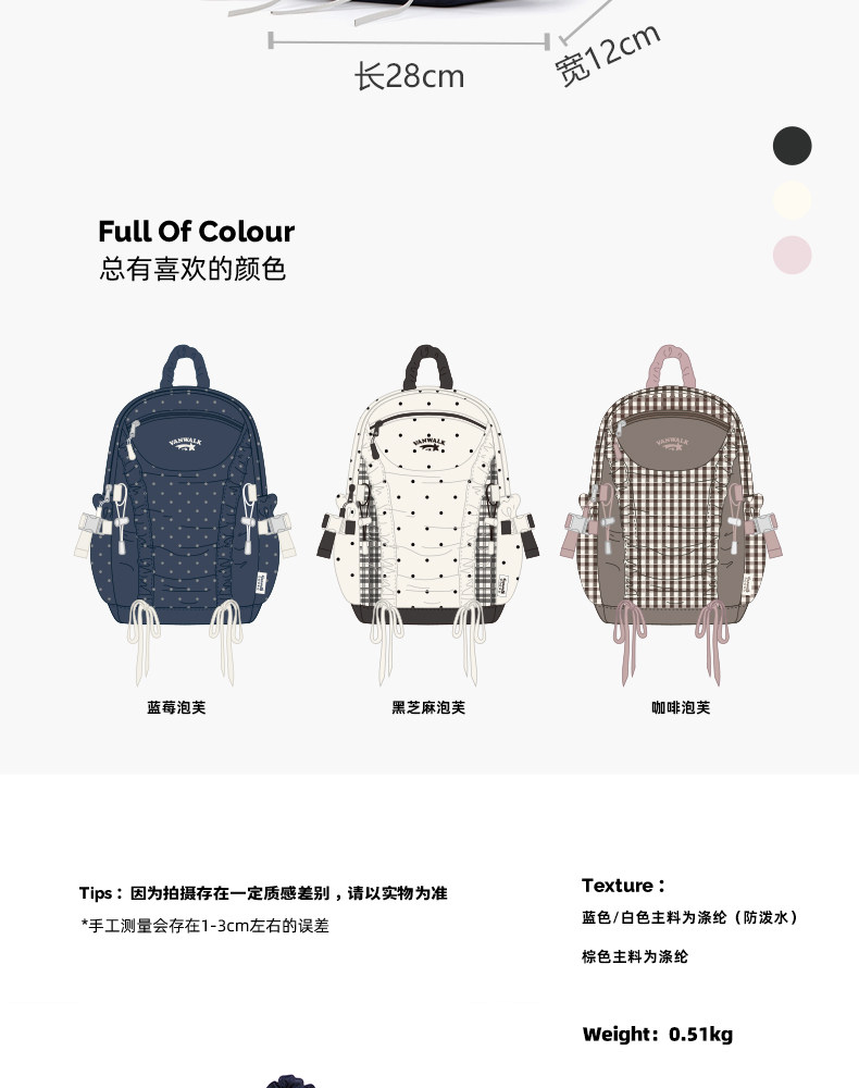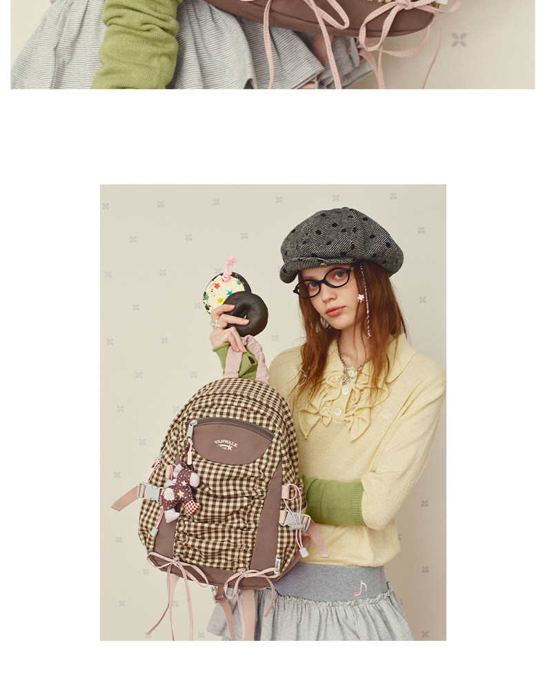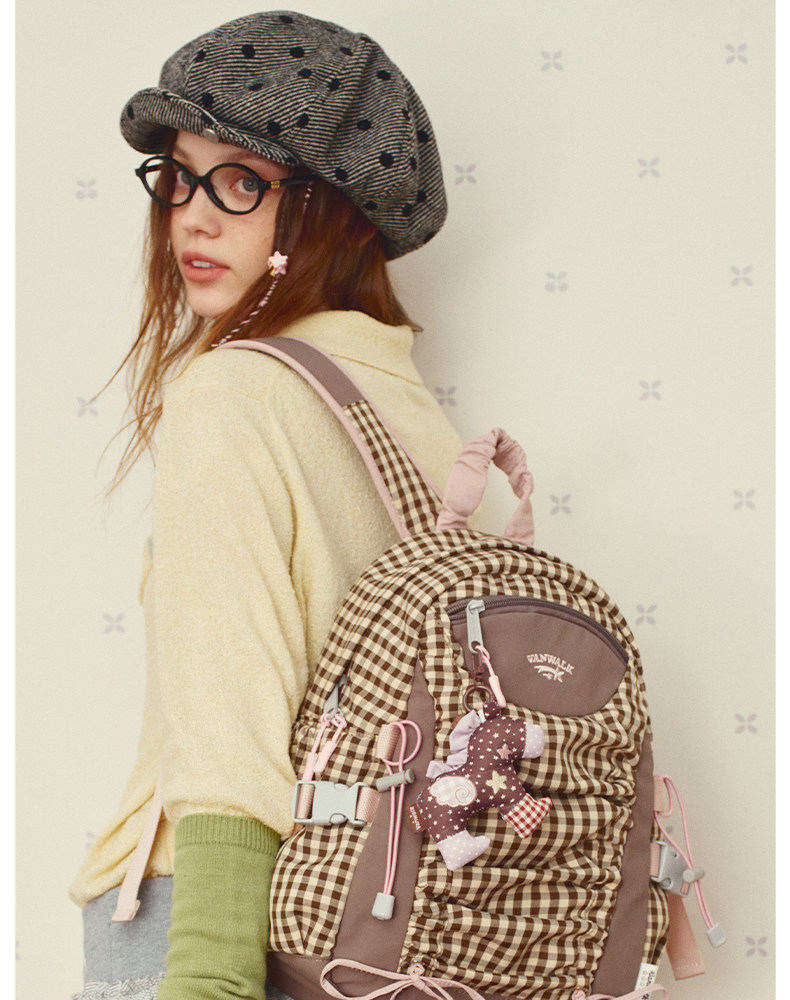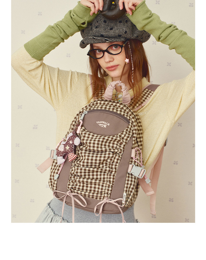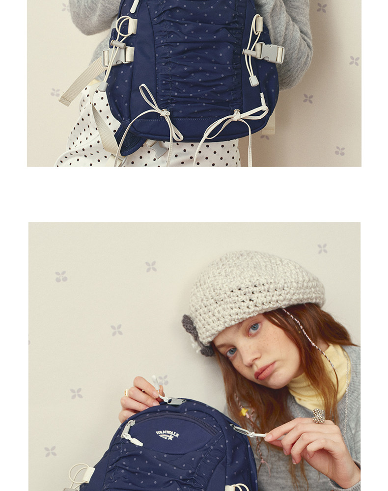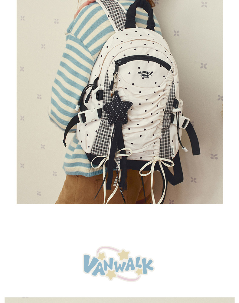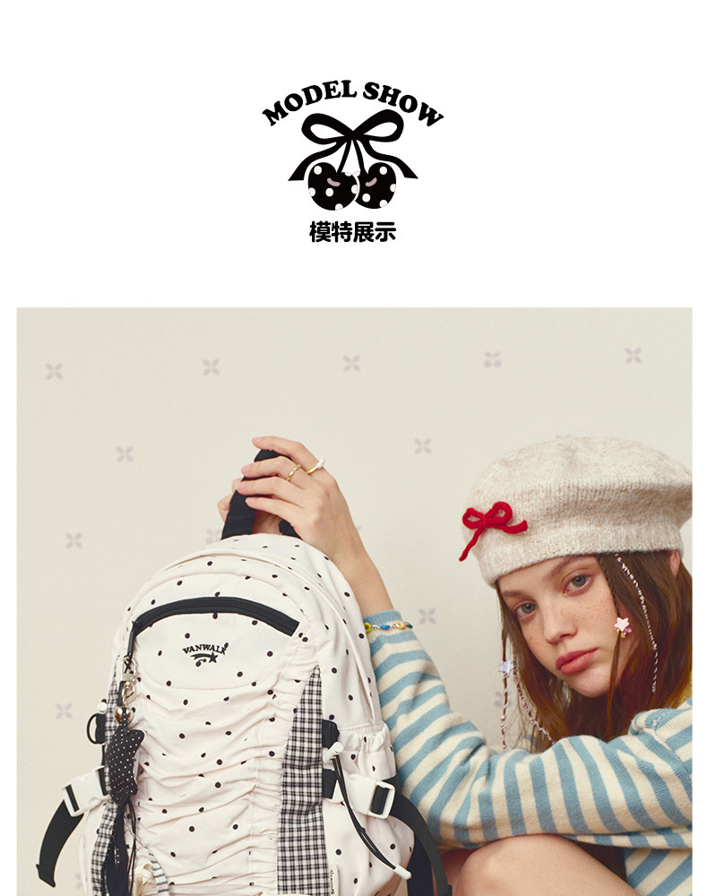 VANWALK糯米團 抽繩褶皺休閒雙肩包大容量女學生款通勤書包後後背包