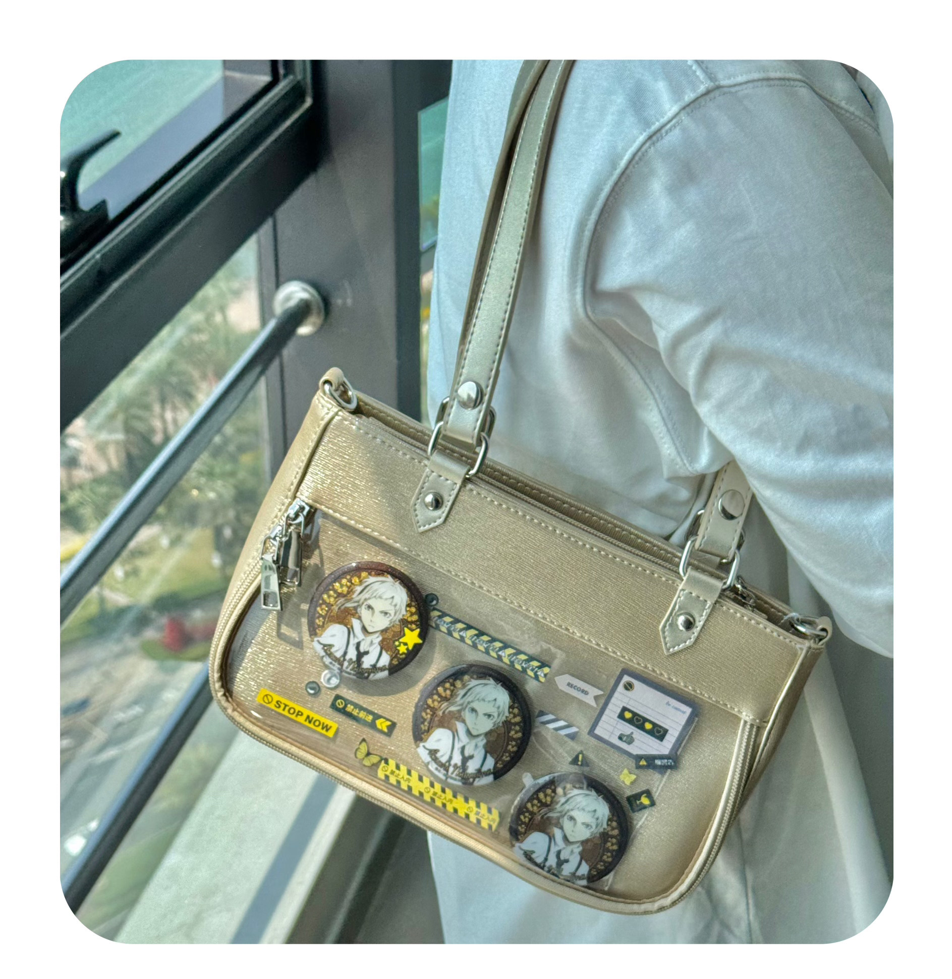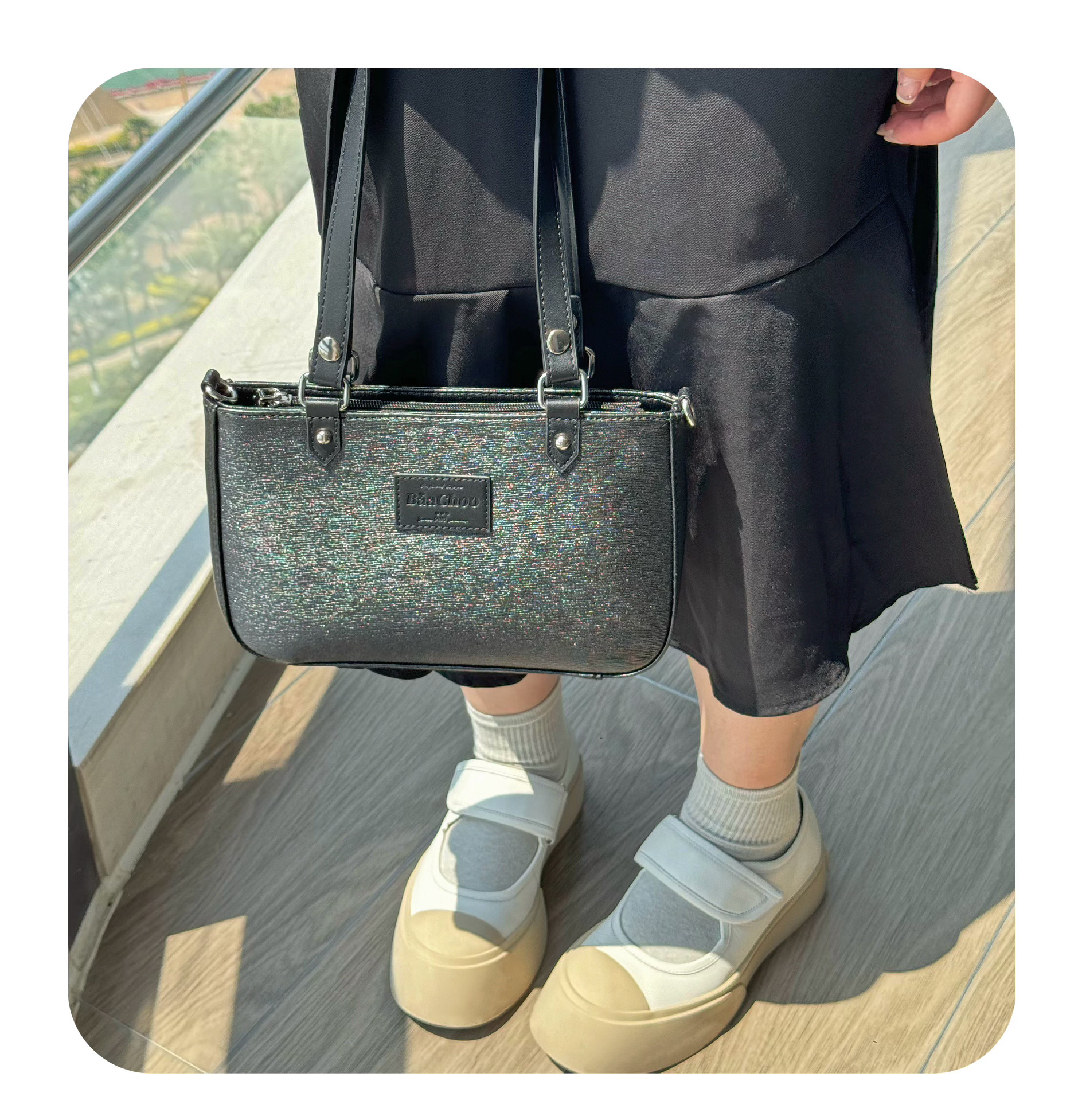 Baachoo原創小食量斜背單肩日常通勤閃閃pu皮質腋下痛包