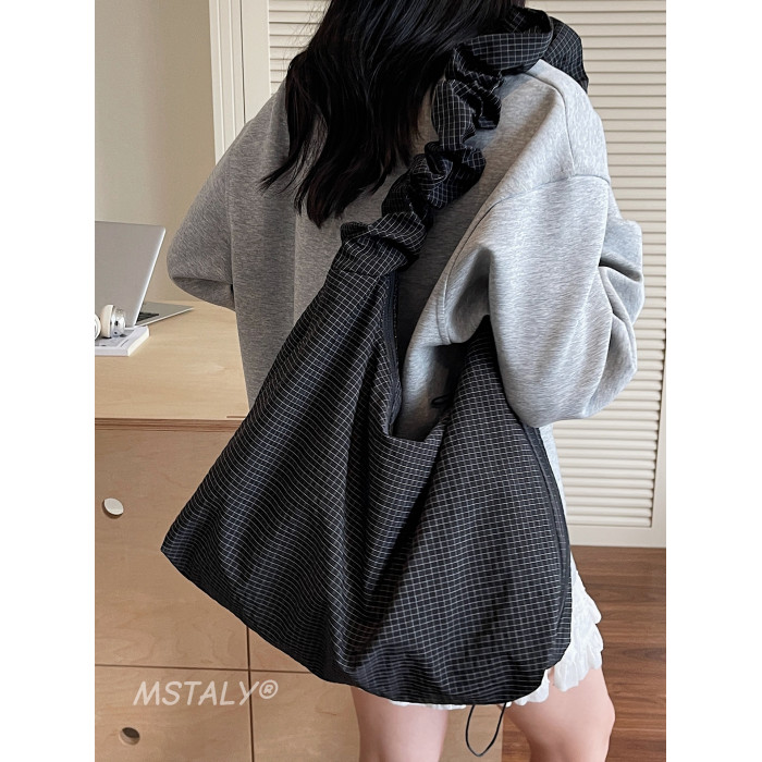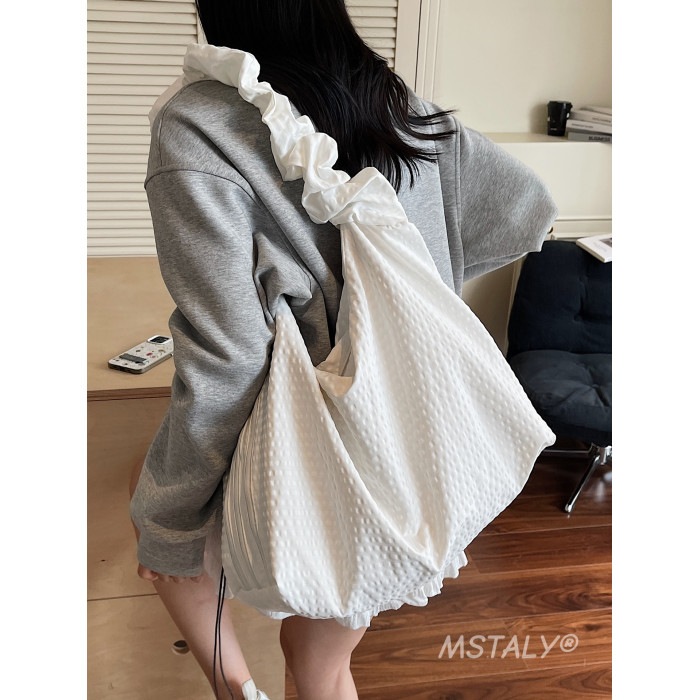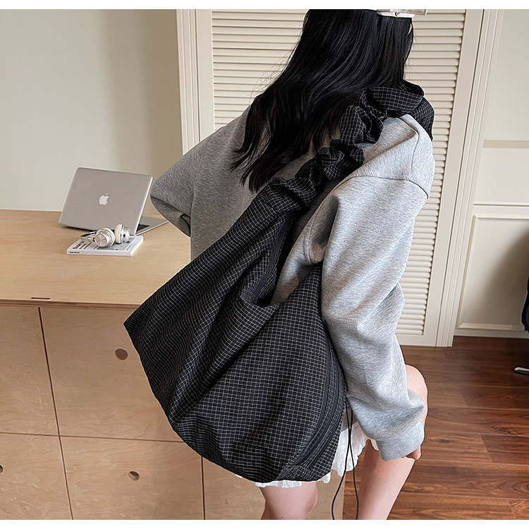 韓版ins時尚褶皺帆布包包女2026新款輕便托特包上課大容量斜後後背包