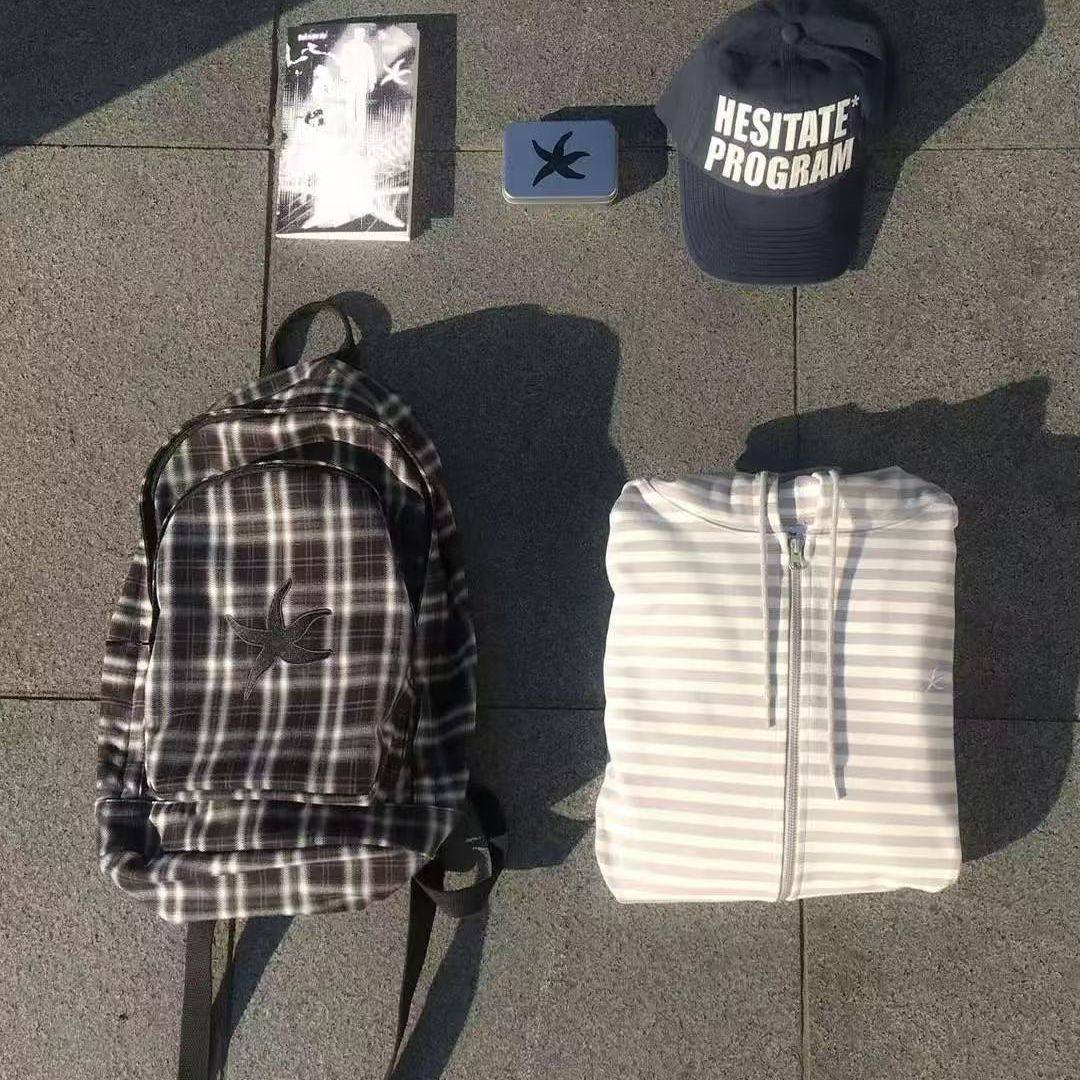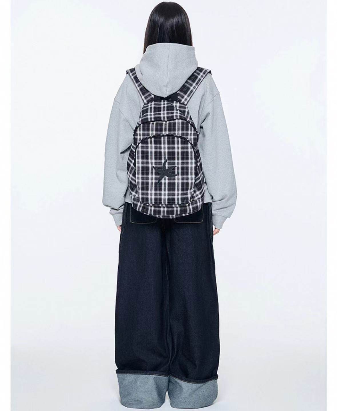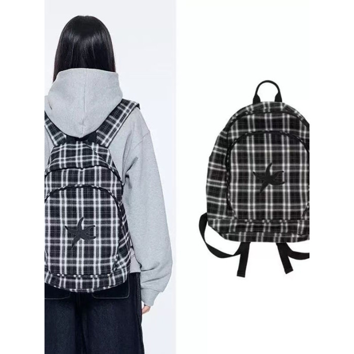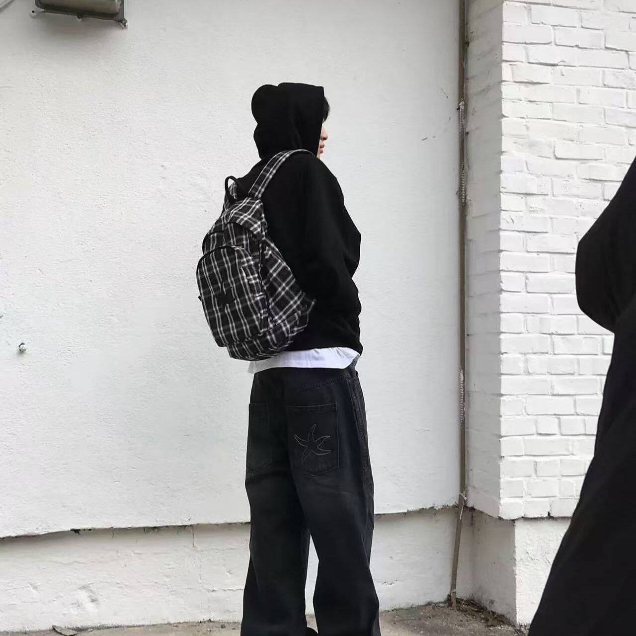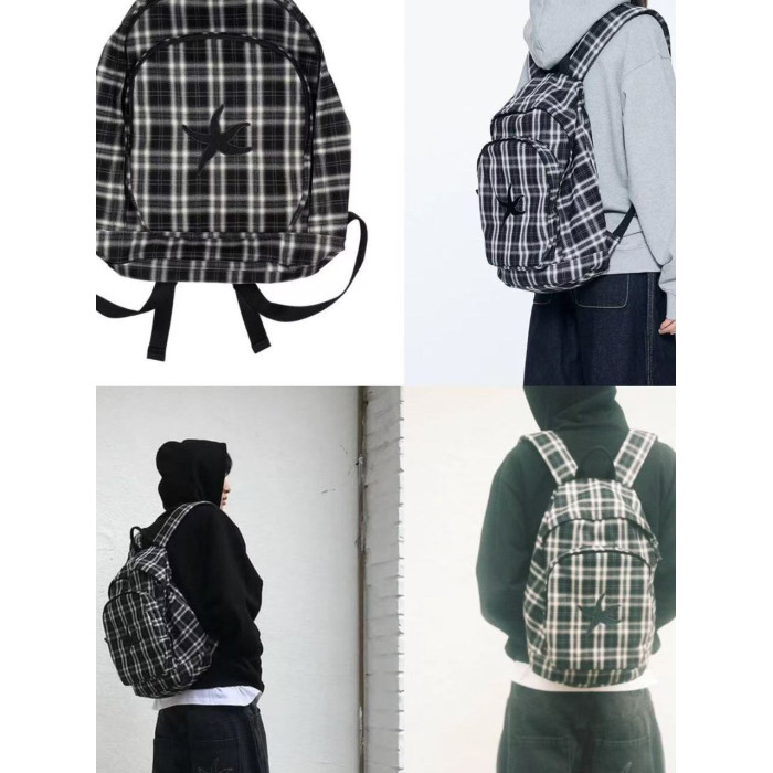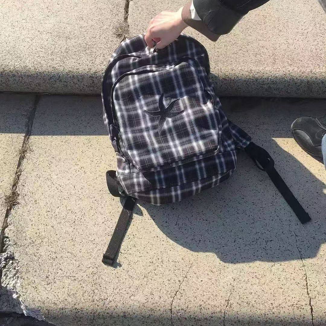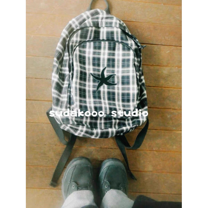 sudakooo韓系 復古格子海星大容量雙肩包後後背包