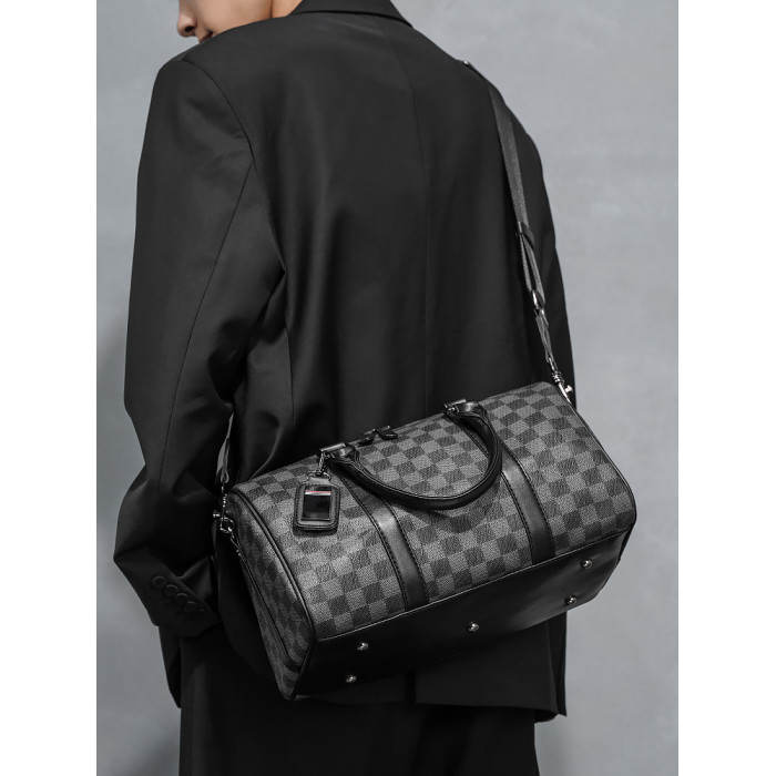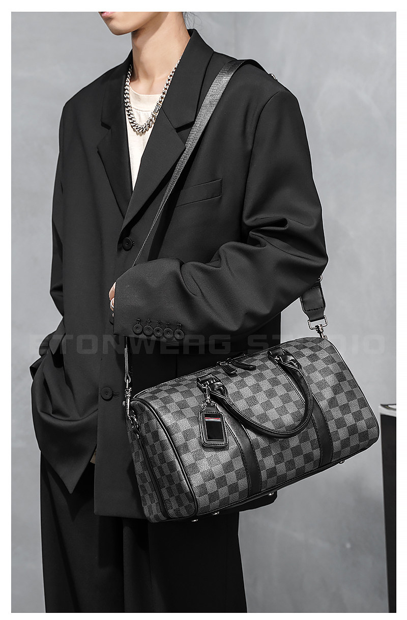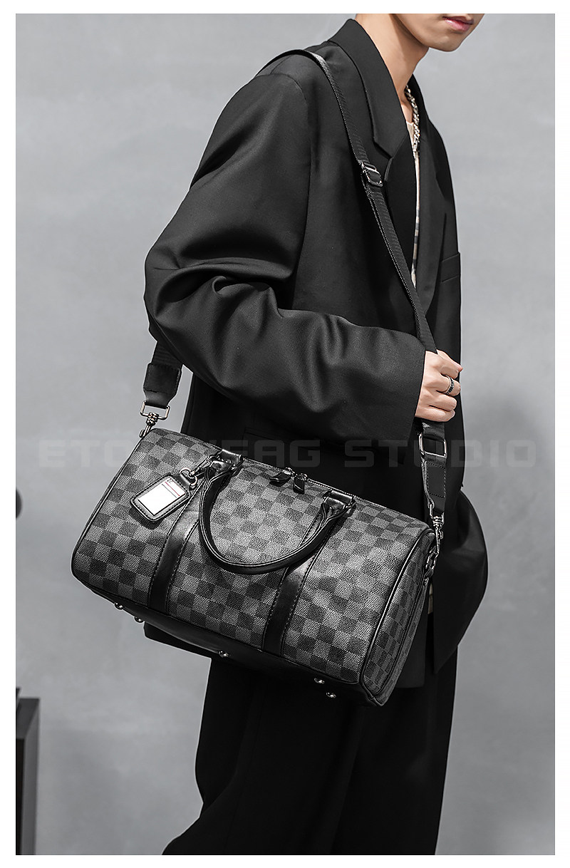 2026新款潮流男包 時尚潮男手提包 經典格紋單肩包斜後後背包托特包潮