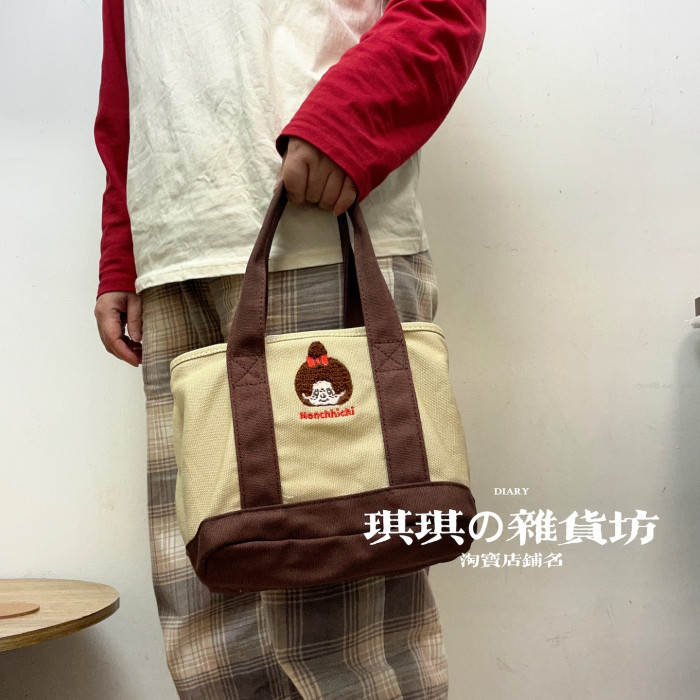日系可愛矇七七帆布手提包圖書館咖啡館多隔離分區卡通可攜式手拎包