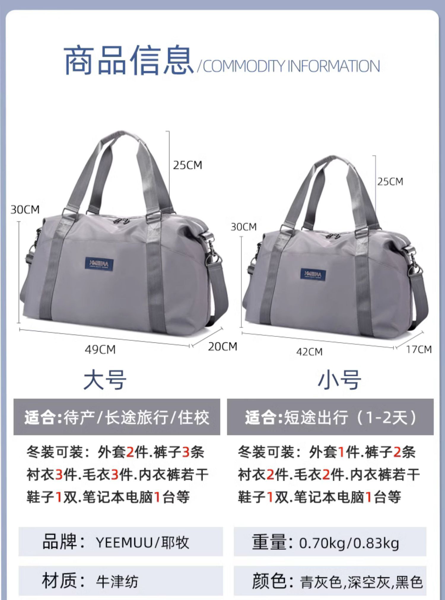 | 旅行袋類型 | 提包型 |