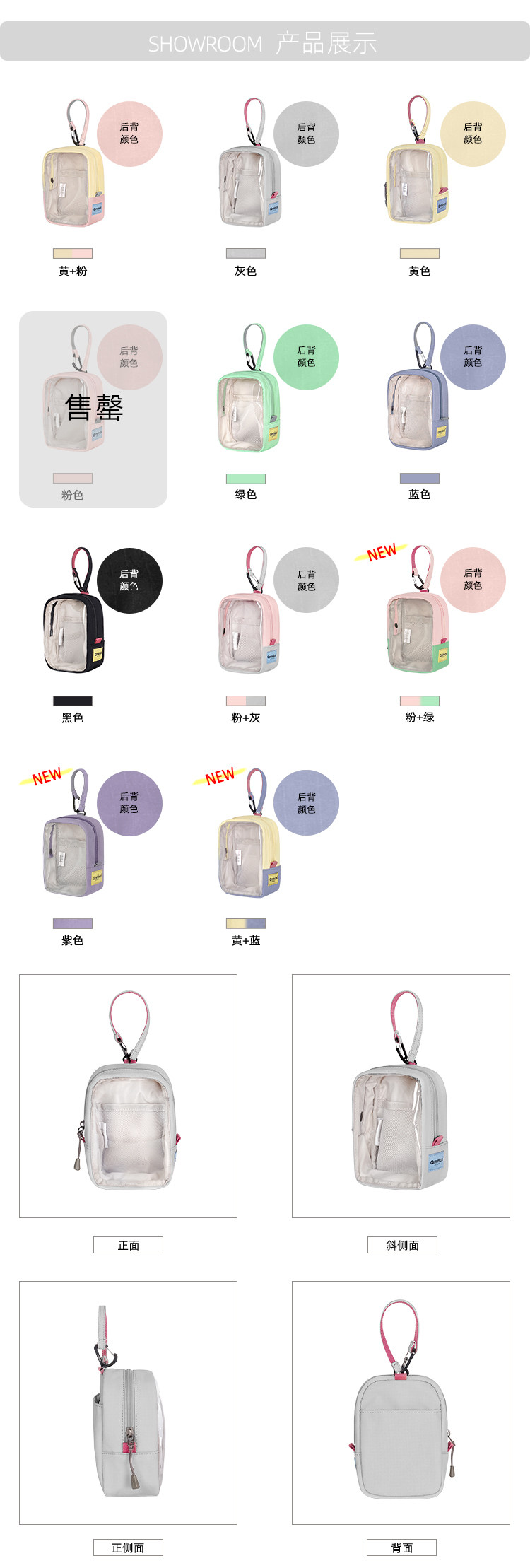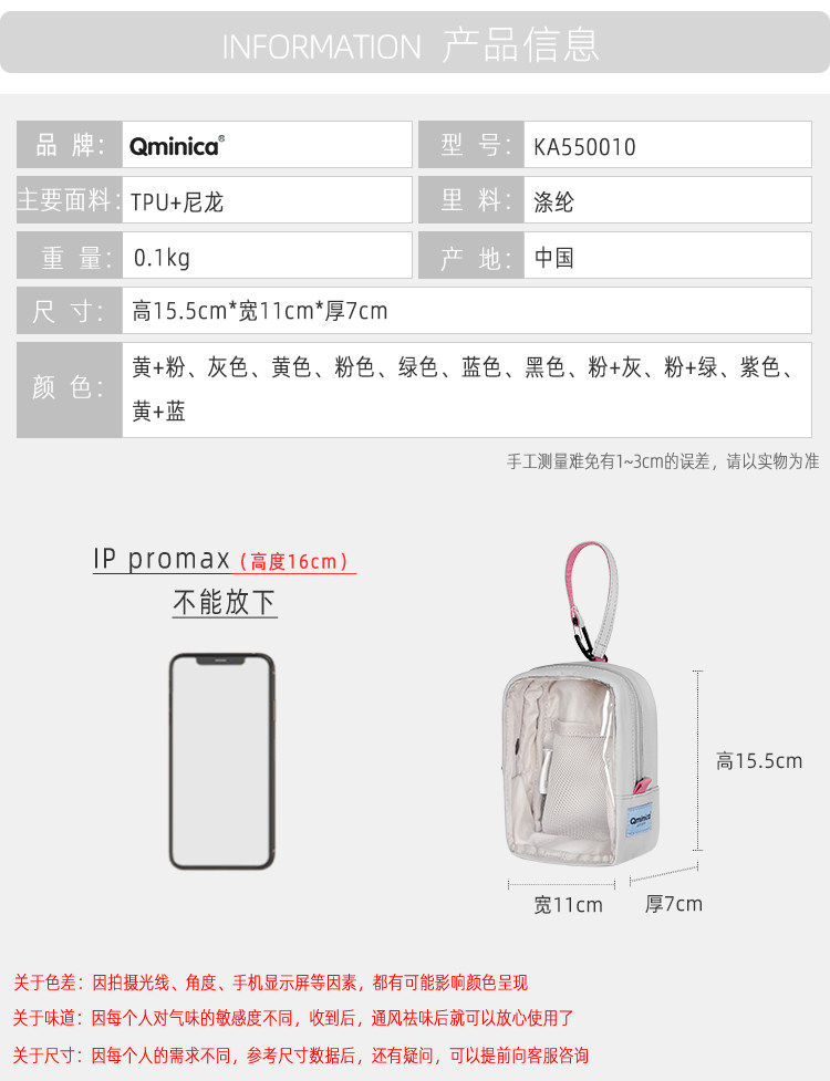 Qminica 多功能15.5cm痛包可攜式多用途零錢包收納耳機手機小掛包