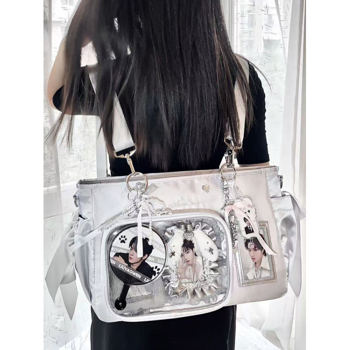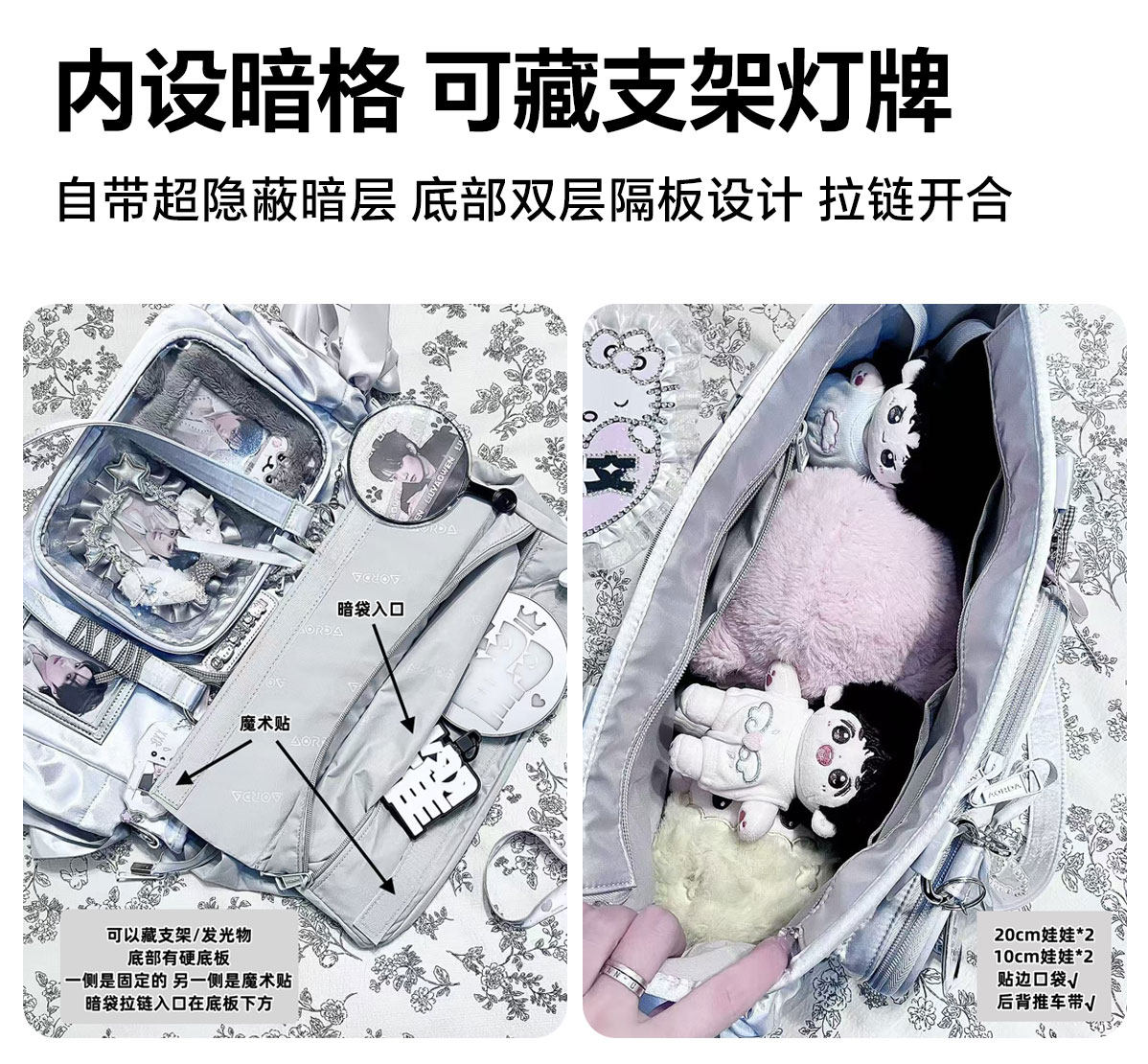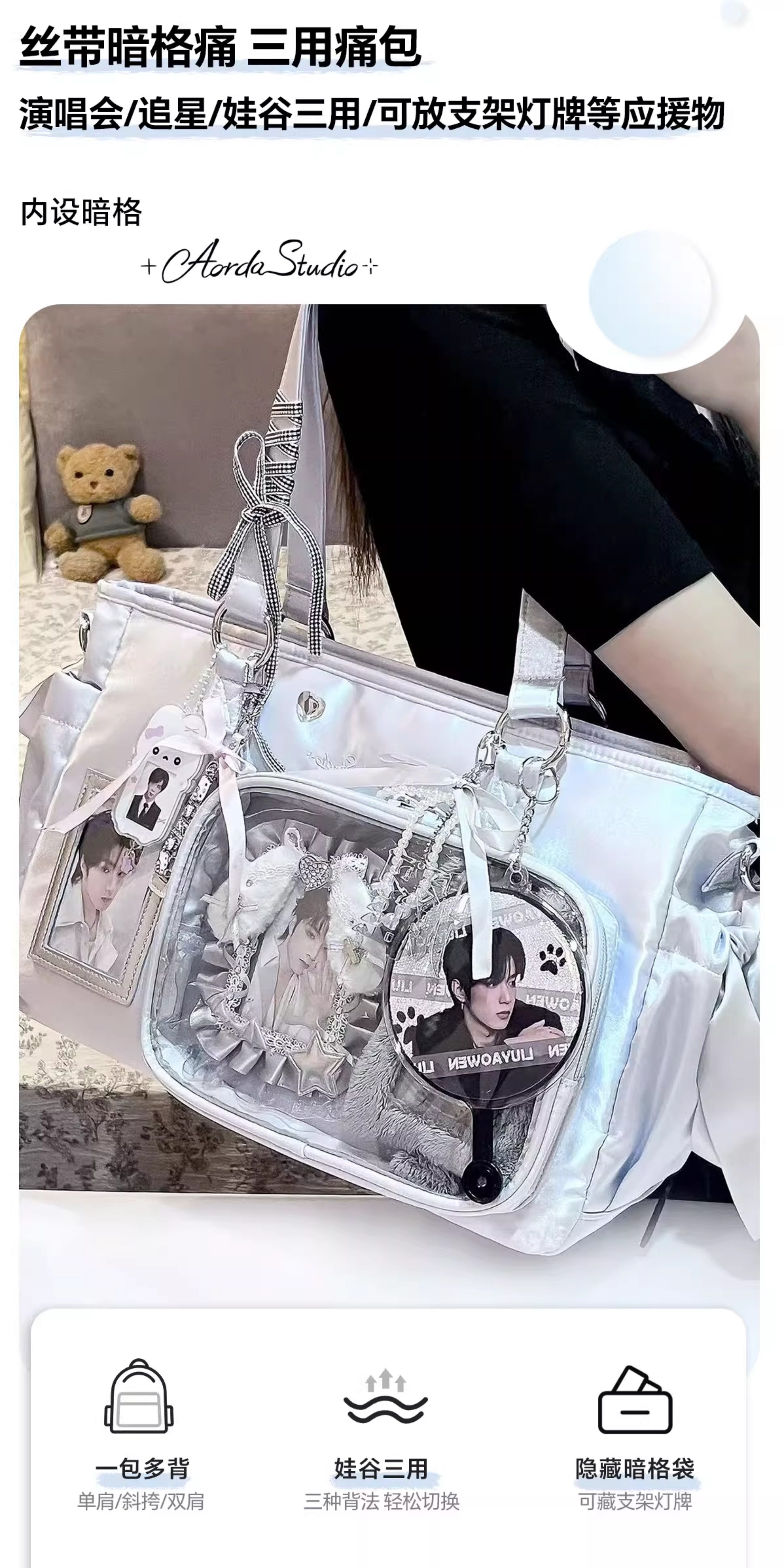 AORDA 絲帶痛包雙肩演唱會暗格包藏東西的包藏燈牌大容量斜背娃包