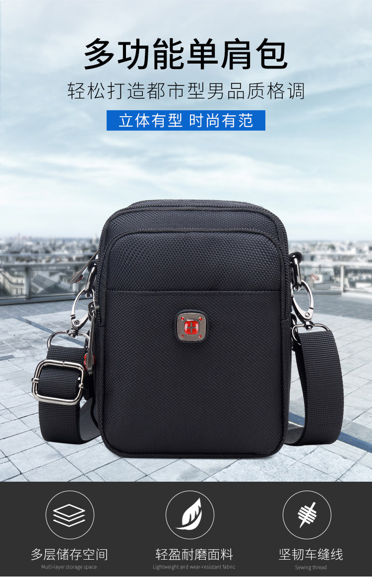 瑞士軍刀男士休閒手機包單肩包正品迷你斜背小方包牛津布皮帶腰包