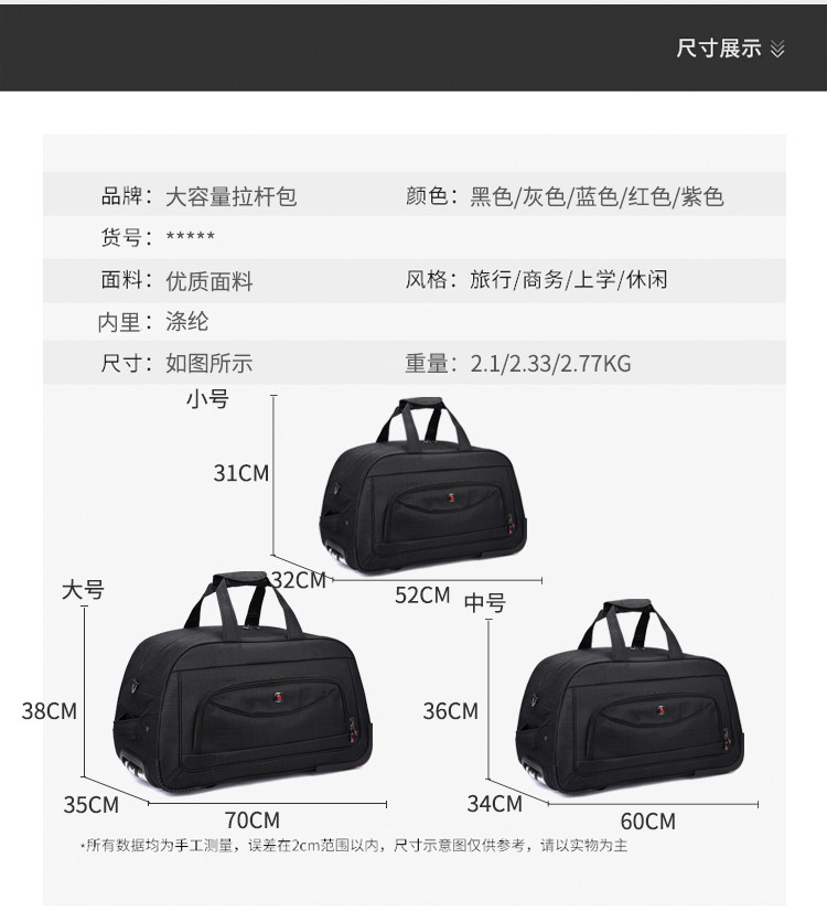 大容量可折曡拉桿包手提旅行包輪滑包男女登機箱包旅遊出差行李包