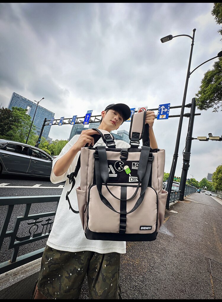 原創多功能機能雙肩包女個性潮酷大容量工裝單肩包通勤電腦郵差包